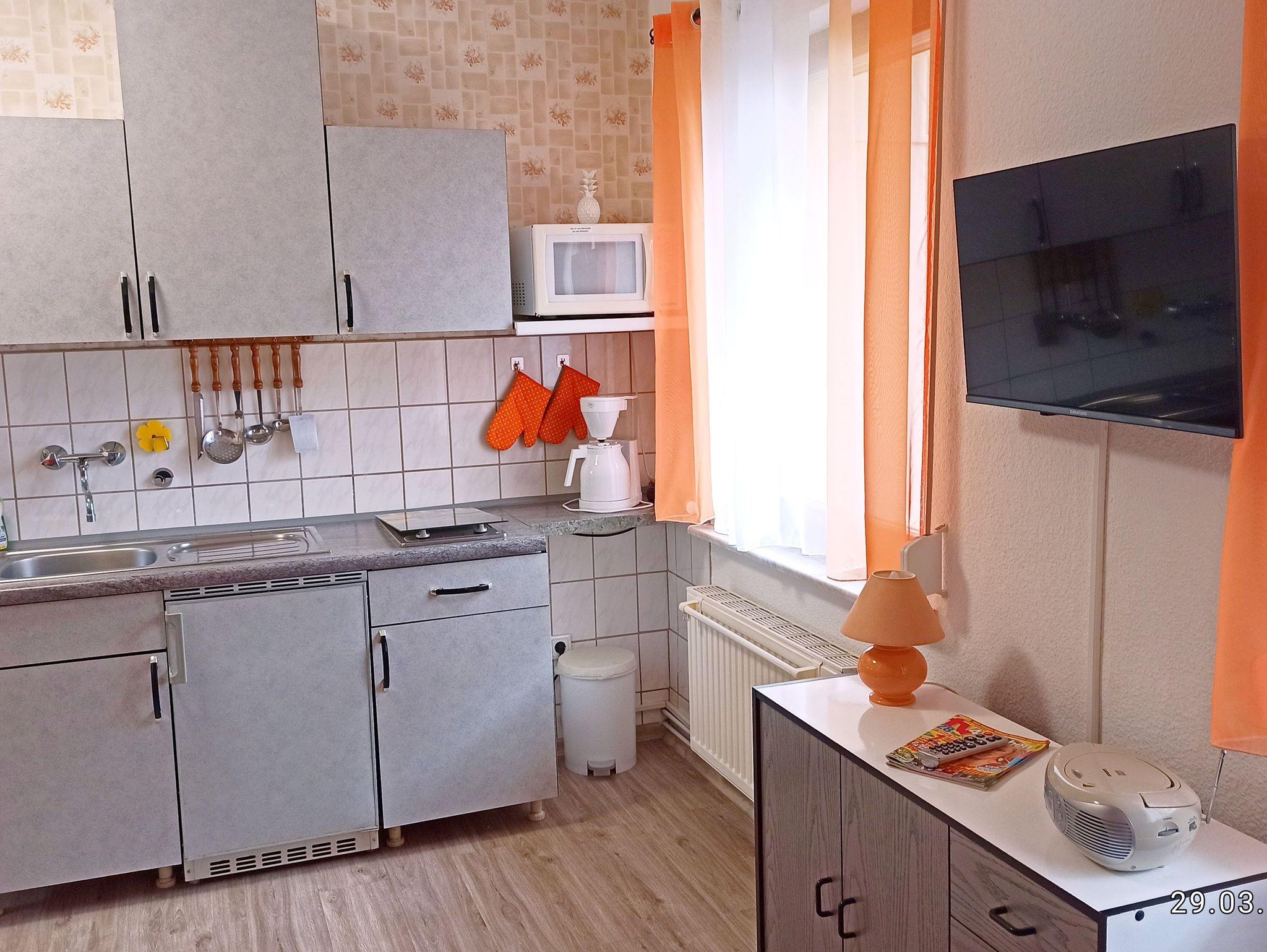 * Kaffeemaschine, Wasserkocher, Geschirr, Besteck, 2 E-Platten, TV, Flachbildschirm, Radio, CD uvm.