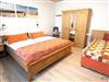 Im Eingang, vom unteren Gartenbereich zugänglich, befindet sich die voll ausgestattete Küche mit Esstisch und Stühlen und einer offenen Verbindung zum Wohnbereich. Der gemütliche Wohnbereich ist ausgestattet mit einer Sitzcouch, einem Sessel und Tisch, Sideboard sowie Flachbildschirm. Im Schlafzimmer, welches für maximal 3 Personen ausgelegt ist, haben Sie ein Doppelbett (180x200 ) sowie einem Schlafsofa, Leselampen über den Betten, Kleiderschrank & Save. Eine Dusche mit Absatz & WC verfügt über Tageslicht und auch ein Föhn ist vorhanden.. Internet-Zugang, Außenjalousien