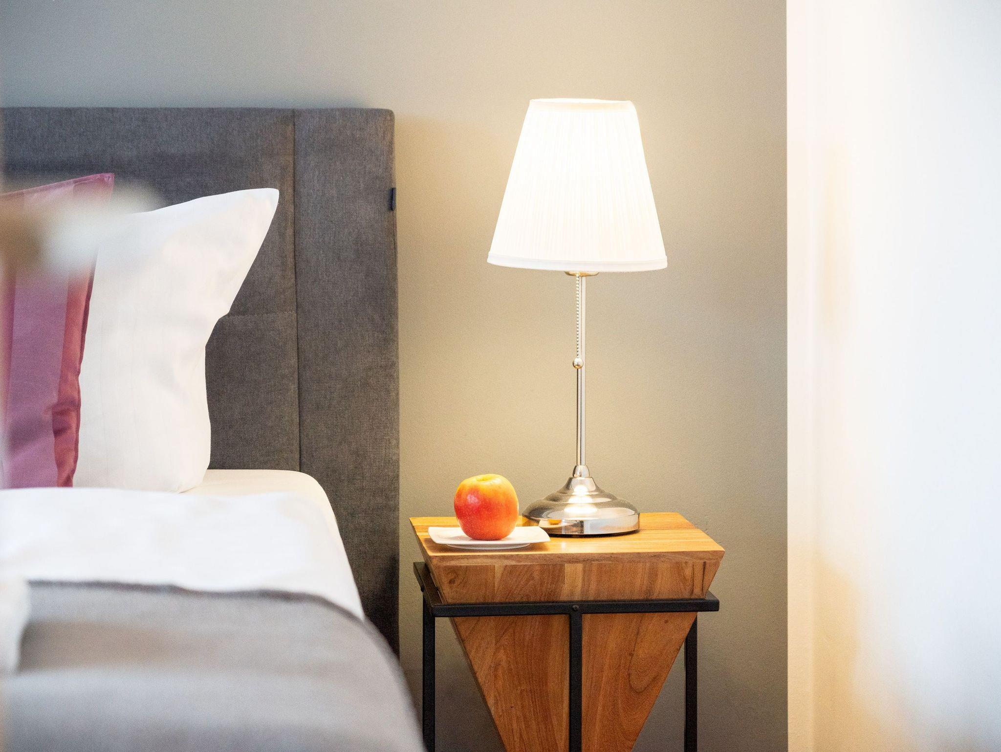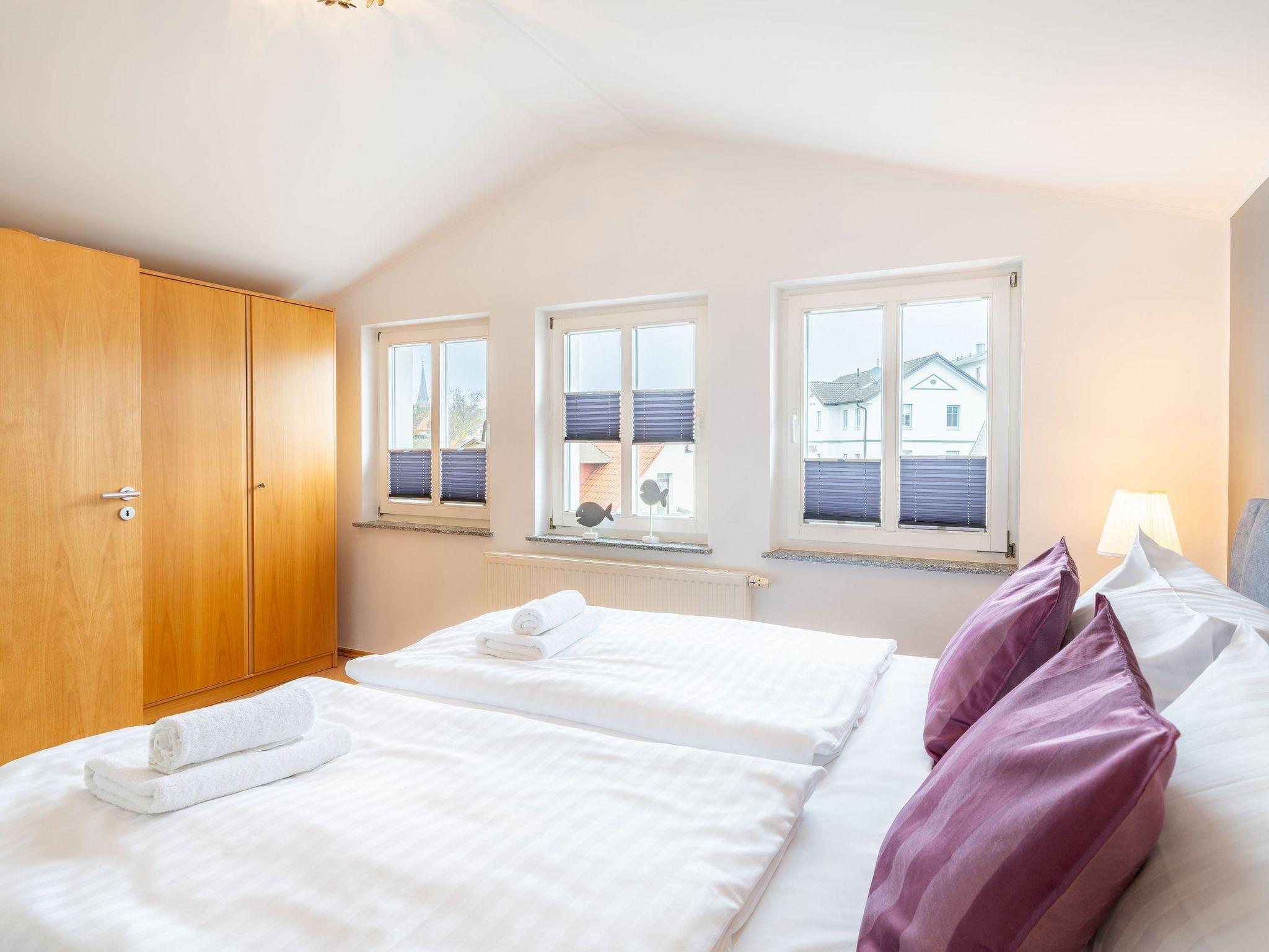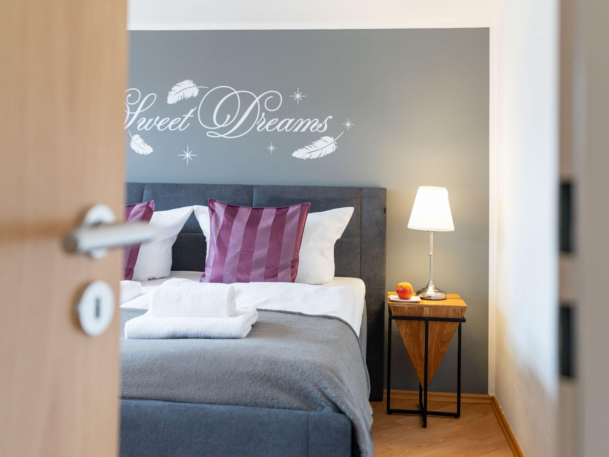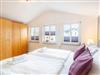 Das Schlafzimmer lädt mit einem bequemen Boxspringbett (180 × 200 cm, durchgehende Matratzen) zur Nachtruhe oder zum kleinen Mittagsschlaf ein. Für Familien mit Kleinkind ist eine Aufbettung bis 3 Jahre im Babyreisebett möglich, das Sie kostenfrei hinzubuchen können.