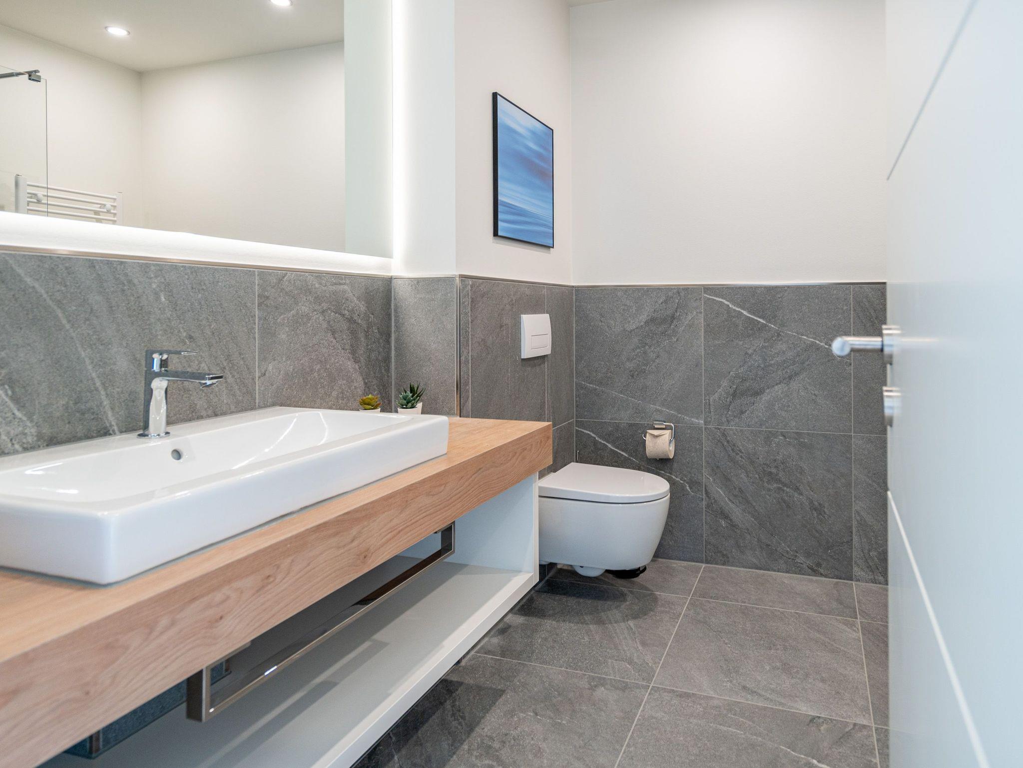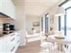 Die 2024 fertig gestellte Strandterrasse liegt direkt an der belebten Strandpromenade und bietet einen einzigartigen Ausblick auf die Grand Dame der historischen Seebrücken sowie die historische Konzertmuschel, einem beliebten Treffpunkt für Kunst und Kultur. Dahinter liegt die Ostsee ? ein Panorama, das zu den schönsten in den Kaiserbädern gehört. Es ist wie das Abtauchen in eine andere Zeit. In eine Zeit, in der man mit Stock, Sonnenschirm und Hut fürs „Sehen und gesehen werden“ über die Promenade schlenderte; aber auch in eine Zeit, in der ? damals wie heute ? Zeit einmal für eine kurze Weile keine Rolle spielt. Weil man angekommen ist im Loslassen, Entspannen und Genießen. Es ist dieser besondere Geruch nach Meeresluft und Freiheit, der in Erinnerung bleibt. Dazu die Bilder, die man mitnimmt. Von langen Strandspaziergängen, vom Lachen in fröhlich schäumenden Ostseewellen, von der Zeit in einem wunderschönen Urlaubsdomizil. Denn genau das ist die Strandterrasse mit ihren 56 modernen und exklusiven Ferienappartements direkt gegenüber der Ahlbecker Seebrücke. Die Ein-, Zwei- oder Dreizimmerwohnungen ? zwischen 40 und 70 Quadratmeter groß ? sind von einer Innenarchitektin gemeinsam mit unserem Erfahrungsschatz an Gästewünschen mit viel Liebe zum Detail und ganz individuell konzipiert worden. Entspannung und Wohlfühlen stehen an erster Stelle. Alles ist aufeinander abgestimmt und sorgt für eine gemütliche Atmosphäre. Wählen Sie zwischen einem Domizil in einem hellen, sandfarbenen Designkonzept oder einem Appartement mit anthrazitfarbenen Farbakzenten. Alle Appartements verfügen gleichermaßen über eine stilvolle und komfortable Einrichtung, die passgenau angefertigt worden ist, sowie über moderne Küchen und Bäder. Jedem Schlafzimmer ist ein eigenes Bad mit Dusche zugeordnet (außer App. B4.5). Die Appartements besitzen fast alle einen Balkon ? viele schauen sogar zur Ostsee hinaus. Die meisten Feriendomizile haben einen Elektrokamin und Infrarotsaunen. Im Erdgeschoss befindet sich ein separater Gemeinschaftsraum für Fahrräder. Außerdem besteht die Möglichkeit, im Gemeinschaftswaschraum 2 Waschmaschinen [&] Trockner zu nutzen. Ergänzt wird das Angebot durch eine Gemeinschaftssauna, die täglich von 11:00 bis 22:00 Uhr nutzbar ist. In der Tiefgarage (Einfahrtshöhe 2,03 Meter) steht für jede Wohnung 1 Pkw-Stellplatz zur Verfügung. Ist alles zur Zufriedenheit untergebracht? Dann kann der Urlaub ja beginnen. Und beim Blick vom Balkon über die Ostsee treffen sich zum Sonnenaufgang das Heute und das Damals. Gelassenheit legt sich beim Gang hinunter an den Strand auf die Seele. Jetzt darf die Zeit stehenbleiben.