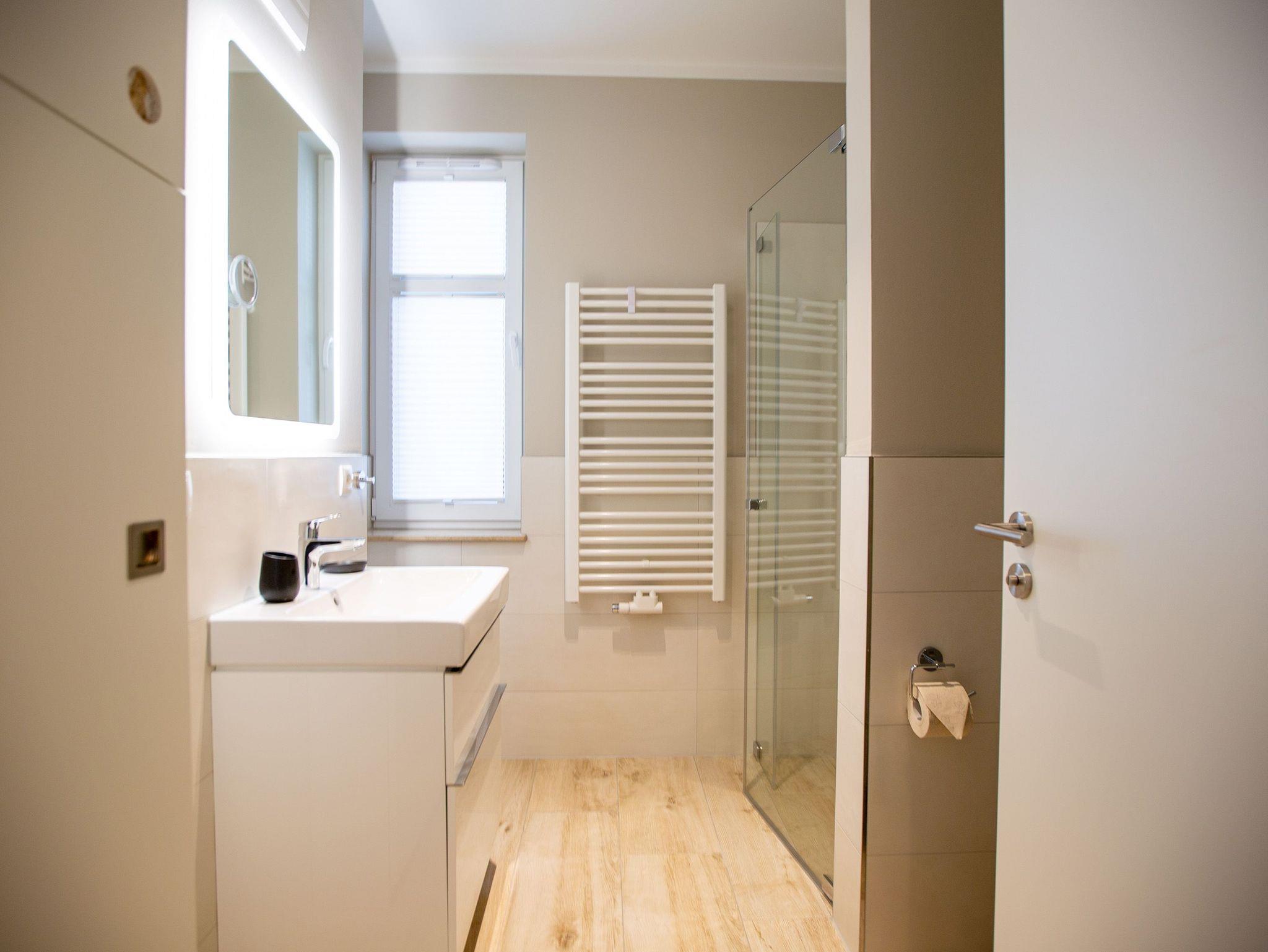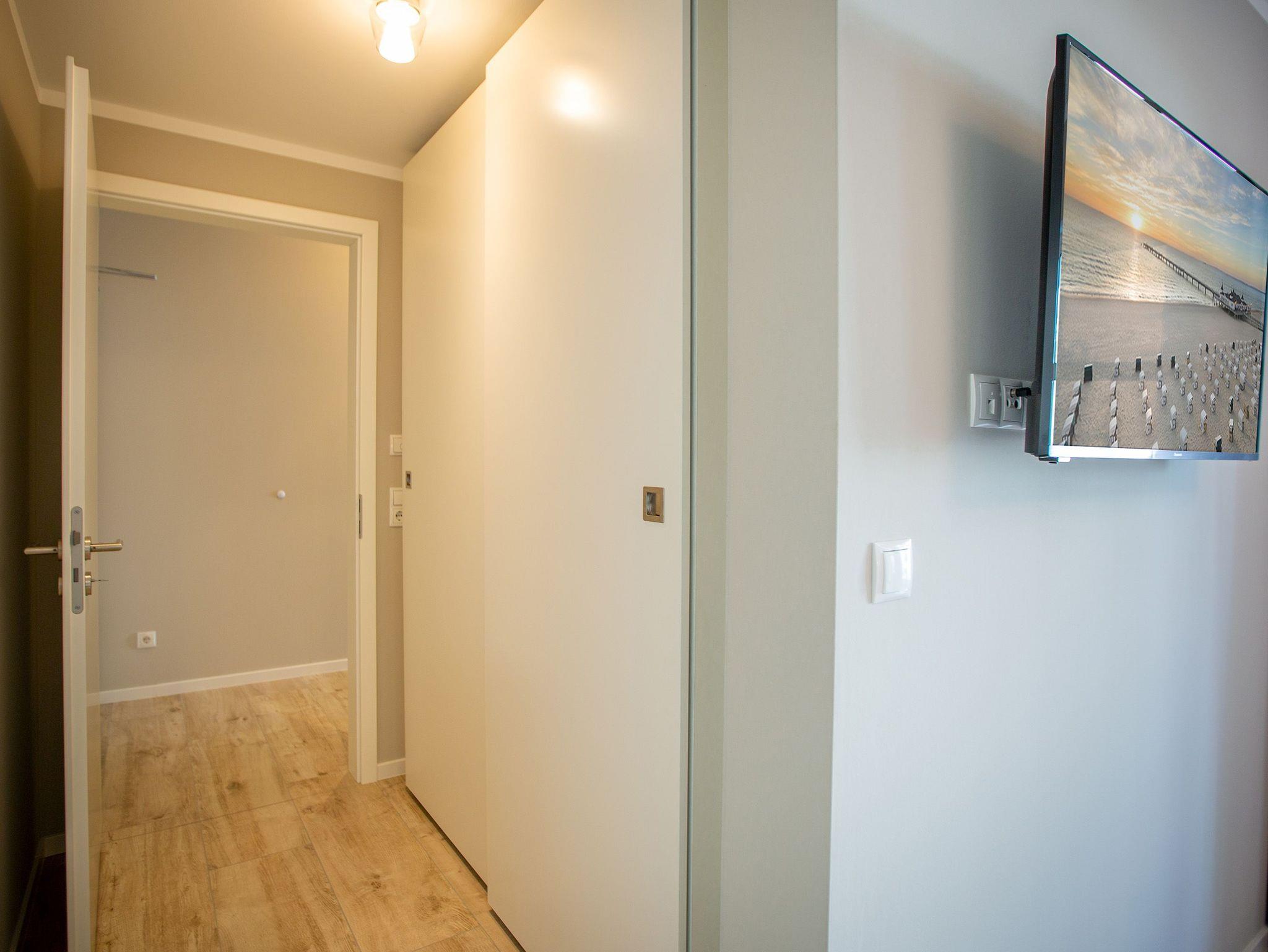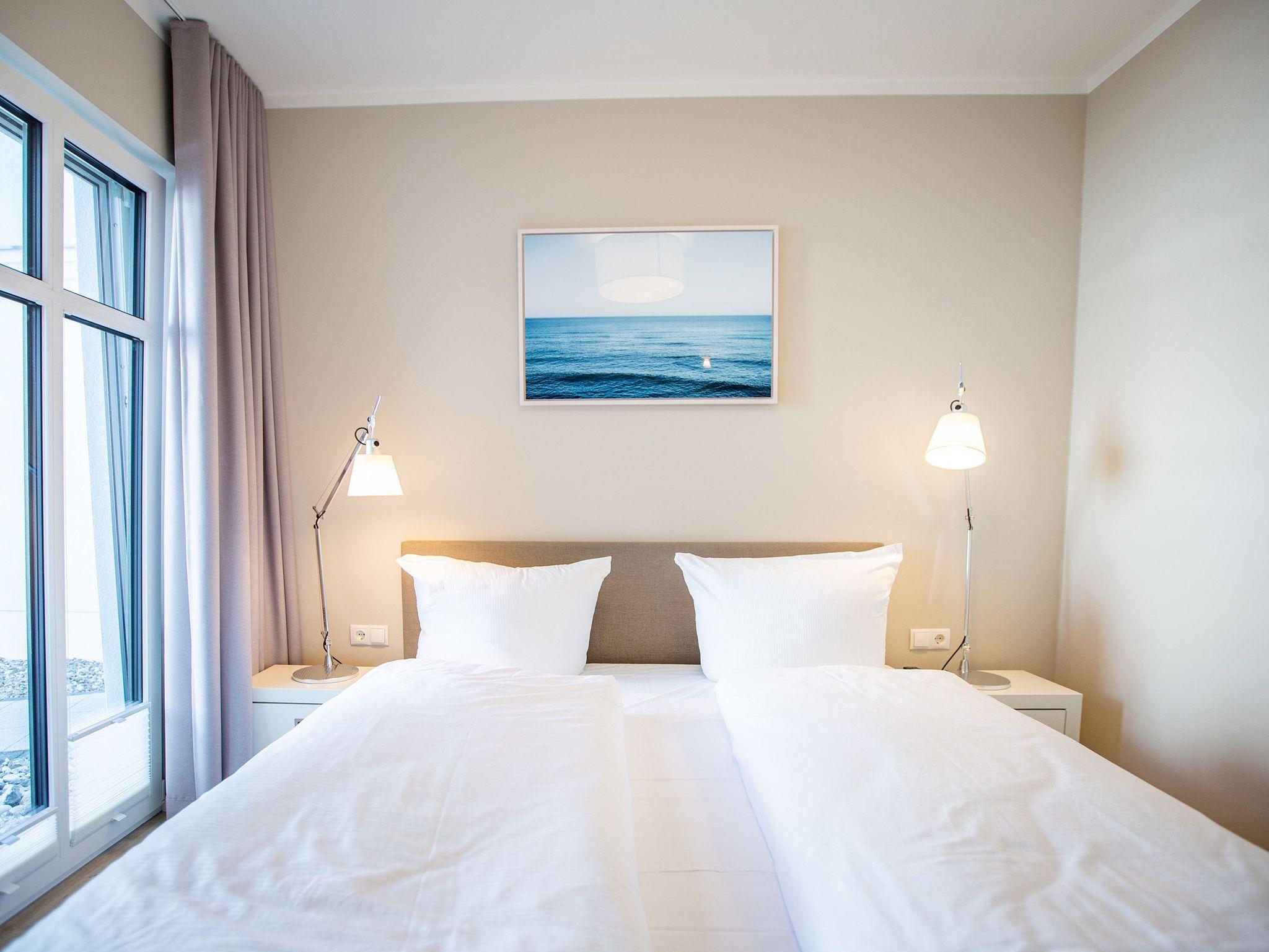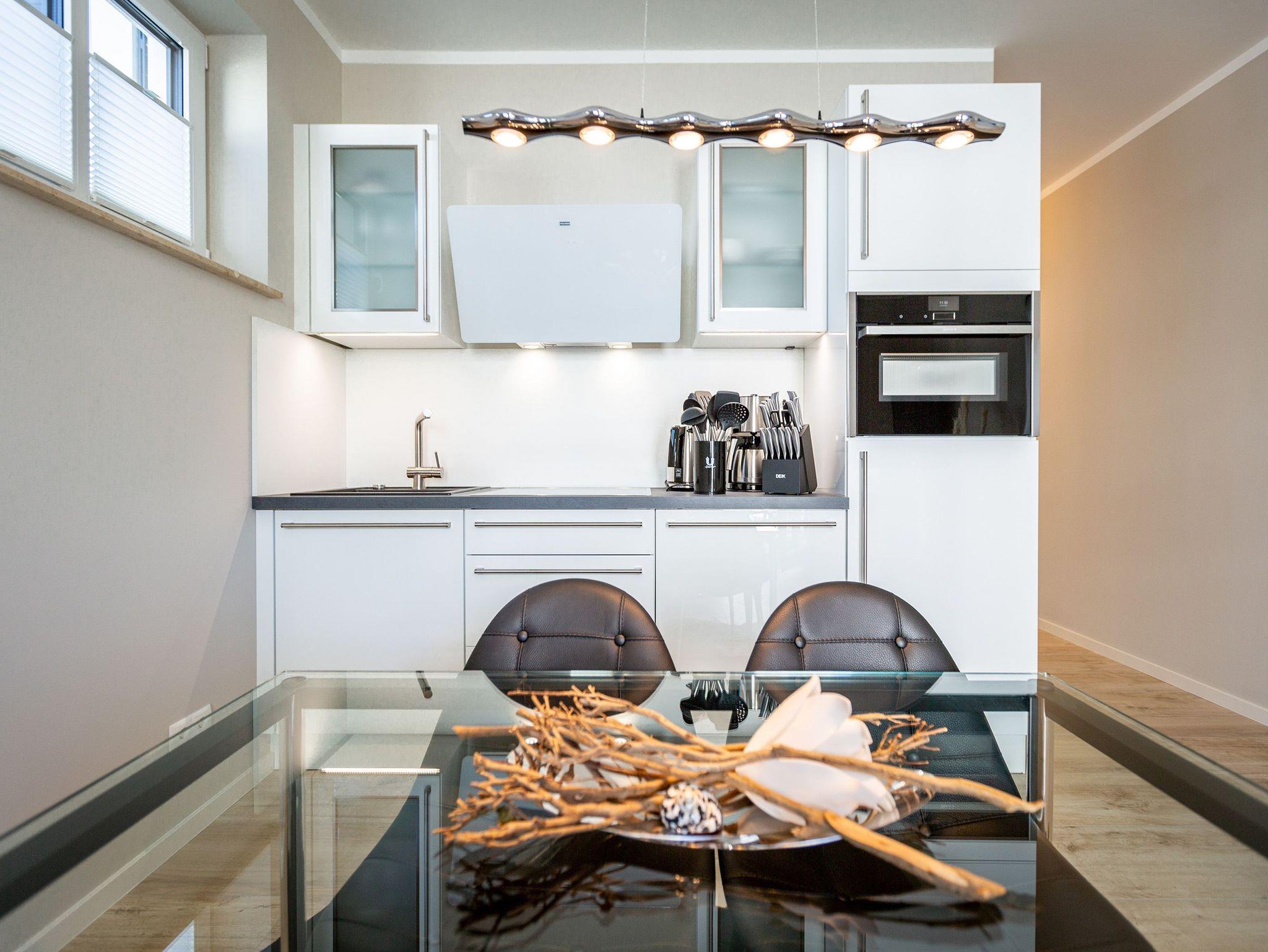 Mitten im Herzen von Ahlbeck sorgt dieses stylische Appartement für zwei Personen und ein Kleinkind (im Kinderreisebett) für viel Erholung und Entspannung. Das 46 Quadratmeter große Urlaubsparadies befindet sich im Erdgeschoss des Quartiers Frohsinn, hat eine kuschelig urige Terrasse und zwei Zimmer. Bringen Sie ihren geliebten Vierbeiner hier ruhig mit. Er oder sie ist herzlich willkommen. Das Innere des Appartements besticht mit schlichter Eleganz und ausgesuchten Design-Möbeln. Die Cassina-Reihe von Le Corbusier ist hier durchgehend vertreten. Selbst der berühmte LC1 mit Kuhfell fehlt nicht. Aber ganz gleich, ob Sofa oder bequemer Essplatz, Couchtisch oder die Kunst an der Wand ? das Appartement wurde mit viel Geschmack eingerichtet. Leder in Kombination mit Glas und Chrome verleihen Ihrem Wohlfühlreich ein besonderes Flair. Das Wohnzimmer verfügt zudem über einen Elektrokamin mit Fernbedienung und einen großen Flat-TV (50 Zoll) mit Blue-Ray-Player. Eine offene Küchenzeile ist mit allem Notwendigen ausgestattet. Die Küche enthält qualitativ hochwertige Geräte wie einen Induktionsherd, eine Mikrowelle, einen Geschirrspüler, eine Senseo Kaffeemaschine, gutes Kochgeschirr sowie ein edles Service. Das Wohnzimmer hat Zugang zur Terrasse (6 Quadratmeter), einer kleinen Rückzugsecke unter freiem Himmel mit Gartenmöbeln und Strandkorb. Das Schlafzimmer wartet mit einem komfortablen Boxspringdoppelbett (1,80 m x 2,00 m) auf. Der große Einbauschrank ist geräumig und bietet viel Ablagefläche. Das Bad ist mit Dusche und WC versehen. Das WLAN für Musik- und Internetgenuss ist kostenfrei. Handtücher und Bettwäsche sind inklusive und bereits vor Ort, wenn Sie anreisen. Im Keller befindet sich ein separater Fahrradraum. Ein Außenstellplatz gehört zur Ferienwohnung dazu.