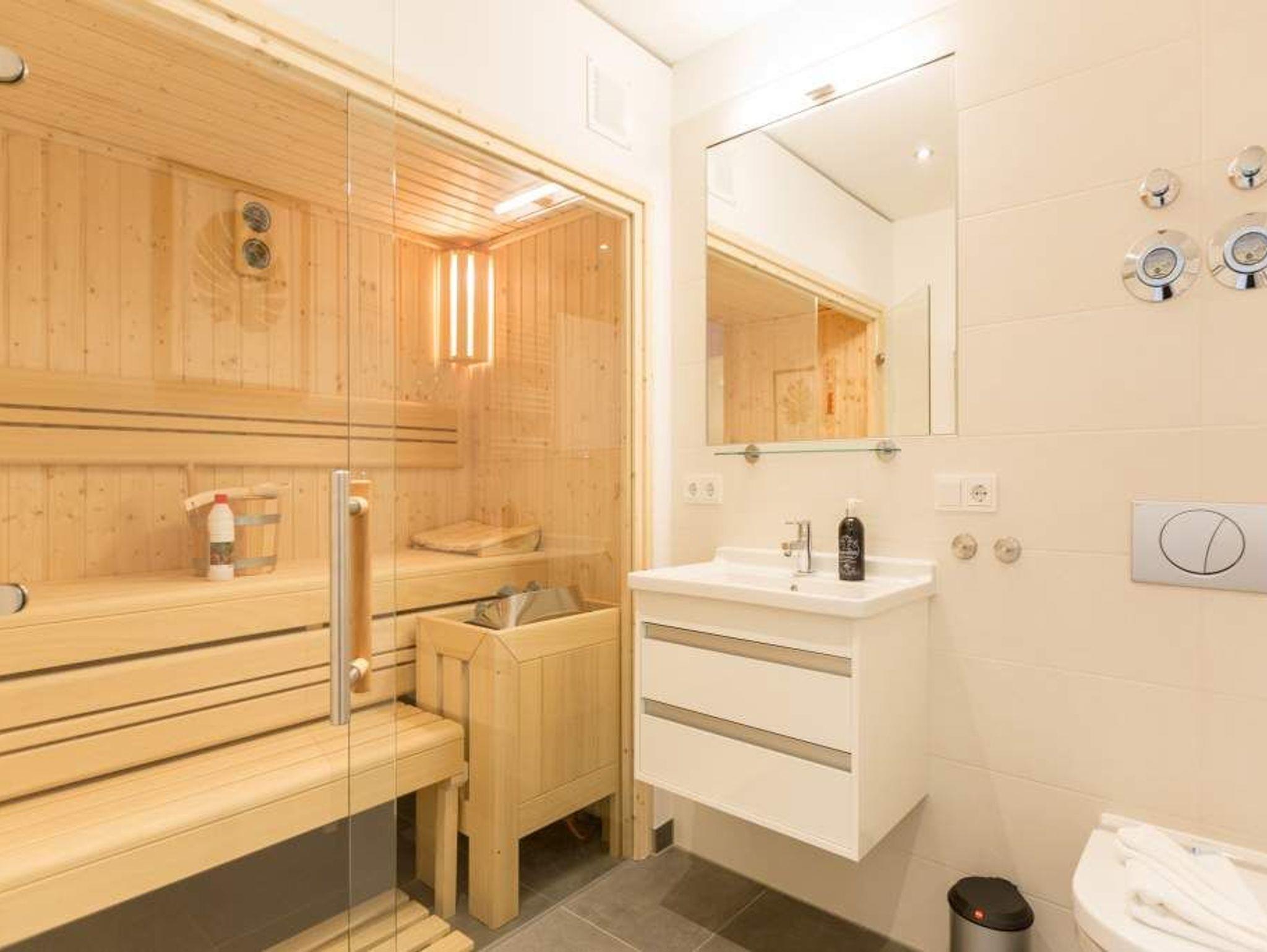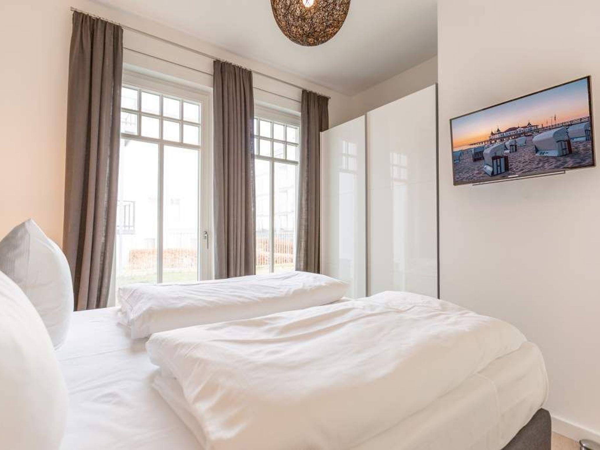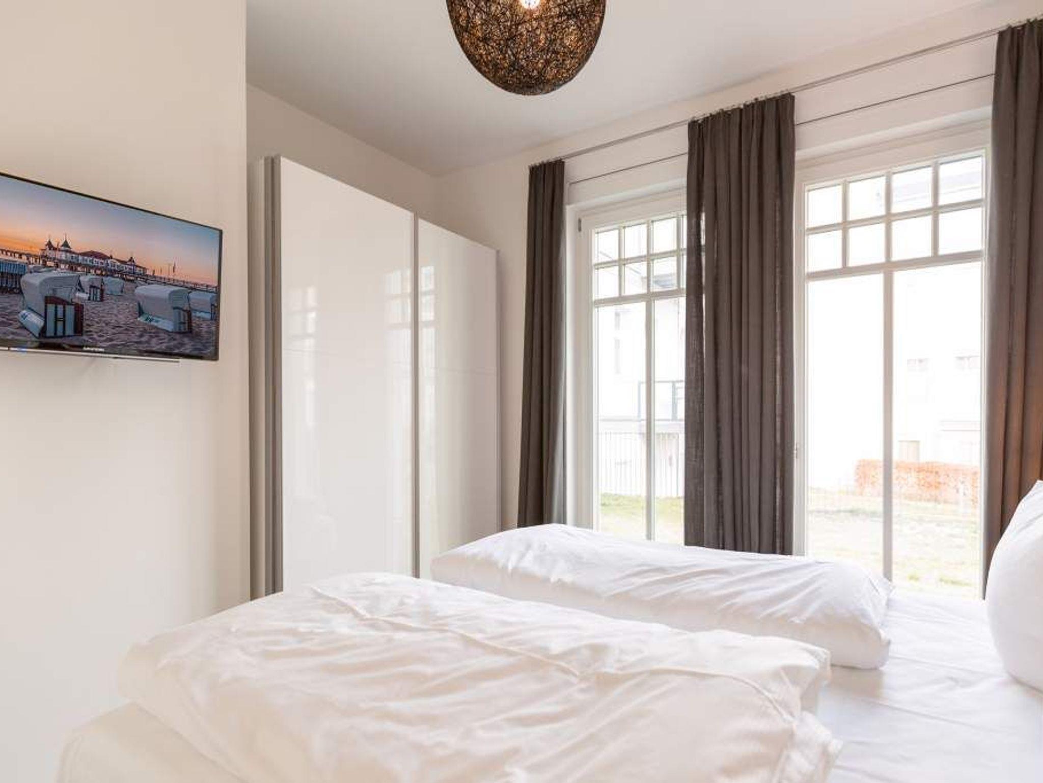 Lichtdurchflutet, modern und viel Platz zum Träumen und Entspannen ? In der Wohnung 3, im Erdgeschoss des Westendpalais, finden Ostseeliebhaber, auf 70 Quadratmetern ein kleines Urlaubsparadies vor. Hier ist nichts von der Stange. Der geräumige Wohlfühlreich für bis zu vier Personen, einem Kleinkind bis drei Jahre (im Kinderreisebett) und dem geliebten Haustier,[nbsp] ist der ideale Ort, gemeinsame Auszeitstunden zu verbringen und den Urlaub zu einem unvergesslich schönen Erlebnis zu machen ? Meeresrauschen inklusive. Denn wenn Sie die Fenster öffnen oder sich auf die sonnige Südterrasse hinaussetzen, dann können Sie die nahe Ostsee hören. Auf sanften Wellen trägt sie Ihre Träume davon, wenn Sie des Nachts eingekuschelt in einem der beiden Schlafzimmer im Boxspringdoppelbett (1,80 m x 2,00 m) schlafen. Zur Ausstattung der Schlafzimmer gehören auch ein Flat-TV und jeweils ein großer Schrank. Der Mittelpunkt dieses stylischen Appartements jedoch ist das große Wohn-Ess-Zimmer. Industrial Chic und modernes Design reichen sich die Hand. Die hohen, bodentiefen Fenster lassen viel Licht hinein. Die wunderbar gemütliche Atmosphäre mit Elektro-Kamin lädt geradezu zum Relaxen und Loslassen ein. Hektik und Stress sind beim Faulenzen auf der bequemen Eckcouch ganz schnell vergessen. Garantiert! Hier fehlt es an Nichts. Ein großer Flat-TV sorgt für Unterhaltung. Ein schöner, hölzerner Esstisch und die komfortablen Sessel daran machen die Mahlzeiten zu geselligen Runden. Die zum Wohnraum hin offene Küche ist voll ausgestattet. Hochwertige Markengeräte machen das Kochen zum Kinderspiel. Das Appartement besitzt ein Badezimmer und ein separates Gäste-WC. Im Bad wartet neben einer Regendusche, Waschtisch und WC eine kleine Wellness-Oase darauf, ihnen es Ihnen kuschelig zu machen. Eine Finnische Sauna steht hier zu Ihrer freien Verfügung. Zu der Wohnung gehört der Tiefgaragenstellplatz Nummer 4 ( ab Mitte Nov. 2025 mit Ladefunktion für E-Fahrzeuge (11kw)- nutzbar mit Kreditkarte). Bei Ihrer Anreise sind die Betten bezogen und Handtücher liegen bereit. Das WLAN ist kostenfrei.