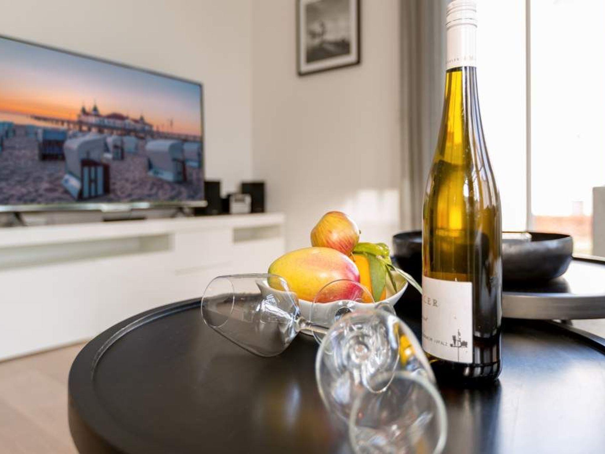 Nur einen Steinwurf von der Ostsee entfernt befindet sich das 2017 gebaute Westendpalais. Hier fängt der Urlaub schon beim Aufschließen der Wohnungstür an. Denn stilvoll und elegant eingerichtet lädt jedes der exklusiven Appartements zum ausgiebigen und erholsamen Entspannen ein. Für ein harmonisches und ausgleichendes Ambiente wurden nur hochwertige Materialien verwendet. Mit viel Liebe wurde jedes einzelne Appartement von Innendesignern konzipiert und eingerichtet. Hier heißt es ankommen und wohlfühlen. Denn Wohlfühlen stand bei den kreativen Inneneinrichtern an erster Stelle. Genießen Sie das Wohnen in einem stylischen und modernen Domizil, in dem alles, was Sie benötigen vorhanden ist und das Ihre Usedom-Auszeit mit den passenden „Vier Wände“ verschönert. Große Fenster lassen viel Licht in die Räume. Viele der Drei- oder Vier-Zimmer-Appartements sind mit einem Kamin, einem Balkon oder einer Terrasse und einer Sauna ausgestattet. Die offenen Küchen sind mit Markengeräten versehen und mit feinem ASA-Geschirr bestückt. Ein Fahrstuhl bringt Sie bis in die oberste Etage. In der zum Westendpalais gehörenden Tiefgarage ist für jede Wohnung ein Stellplatz reserviert.