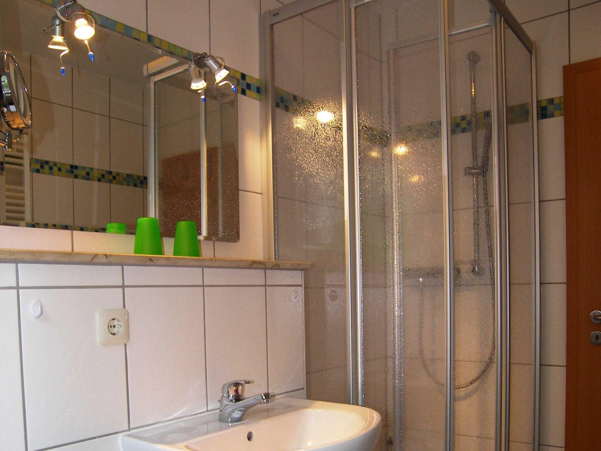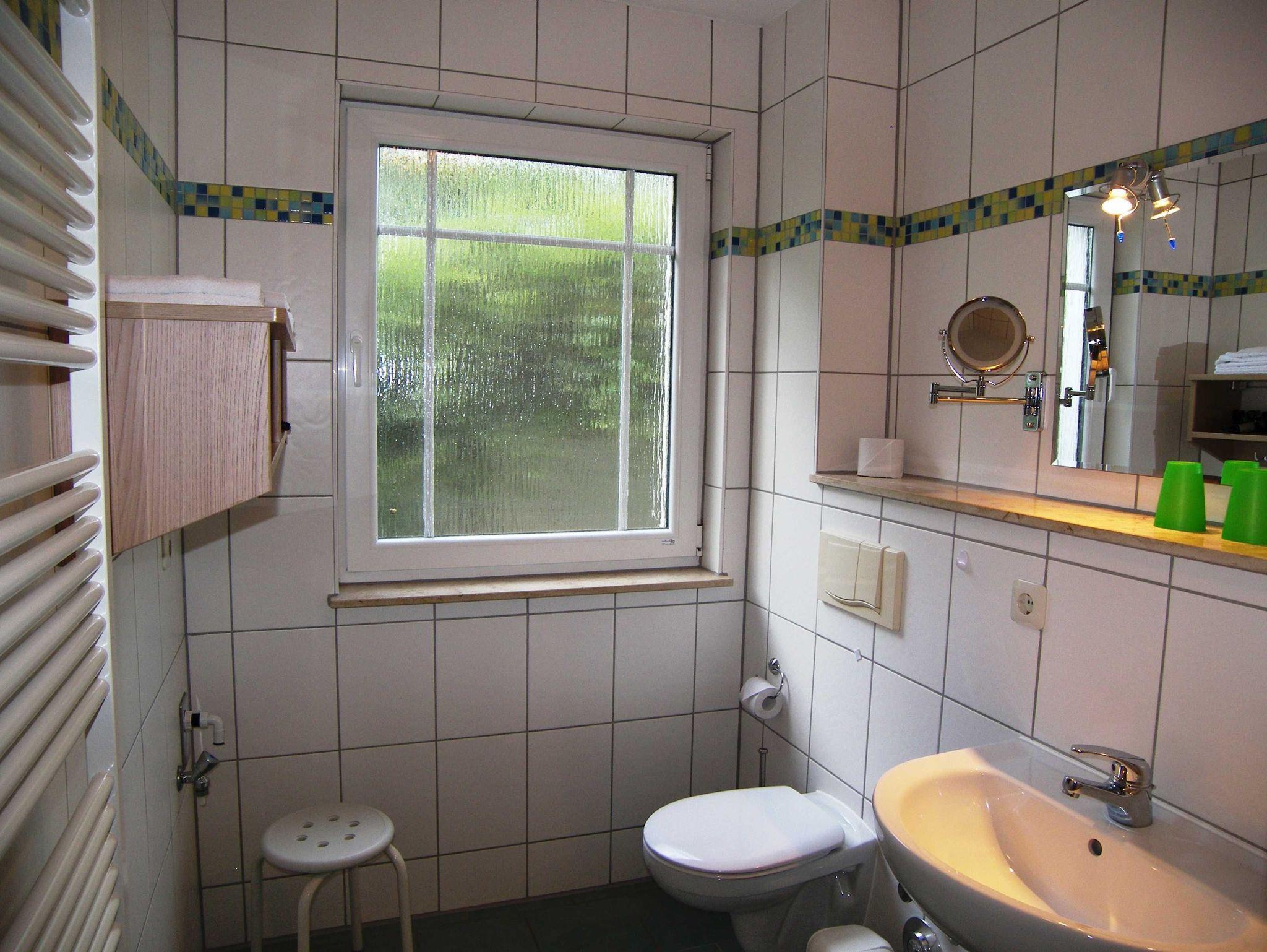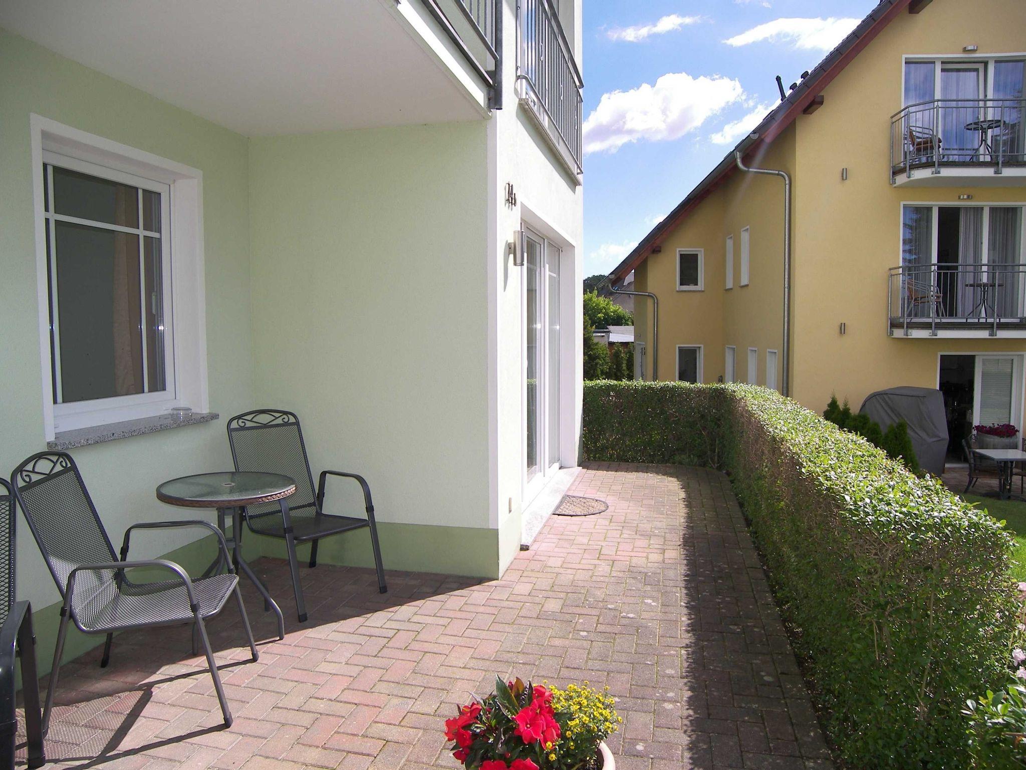 Die moderne 2-Raum NICHTRAUCHER-Ferienwohnung ist ca. 52 qm groß und befindet sich im Erdgeschoss eines Appartementhauses. Sie Wohnung verfügt über einen Schlafraum mit Doppelbett, Kleiderschrank und 2 Stühlen), einen kombinierten Wohn-u. Schlafraum mit einer Schlafcouch (1,60 x 2,00 m), Flachbild-TV, Radio mit CD-Player, Couchtisch & ein Sessel, Esstisch + 4 Stühle sowie einer Terrasse zur Südseite (morgens bis nachmittags Sonne). Die separate Küche ist ausgestattet mit einem Geschirrspüler, 4-Platten-Ceranherd, Backofen, Kühl-/Gefrierkombination, Kaffeemaschine, Toaster, Wasserkocher, Mikrowelle und Geschirr. Das Badezimmer verfügt über DU/WC sowie eine Fußbodenheizung und einen beleuchteten Kosmetikspiegel. Die gesamte Wohnung ist mit Fliesen und Laminat ausgestattet. Die Erstausstattung Bettwäsche und Handtücher ist inklusive. Auf Anfrage kann eine weitere Person auf dem Schlafsofa für 15 Euro pro Übernachtung zugebucht werden.