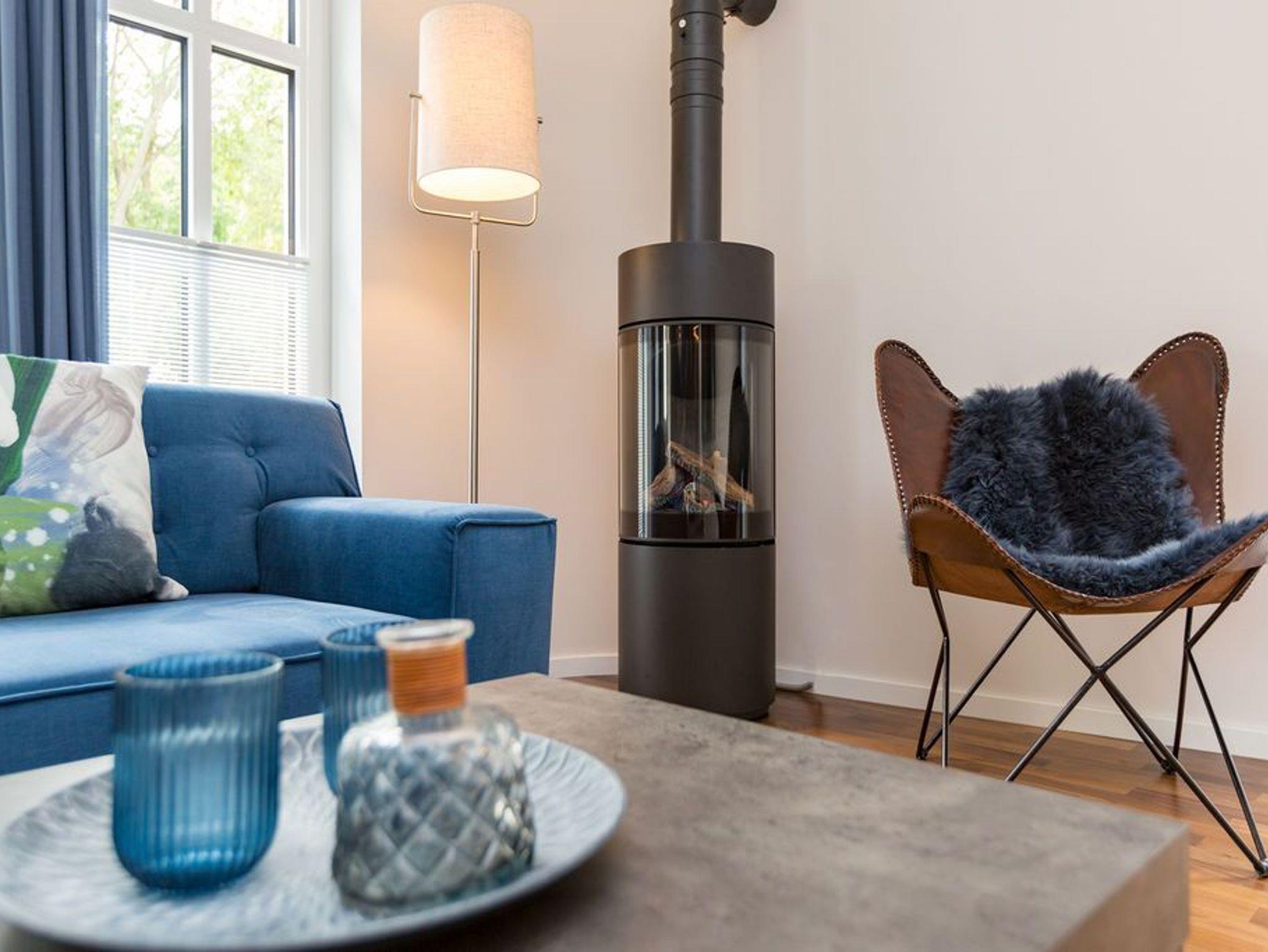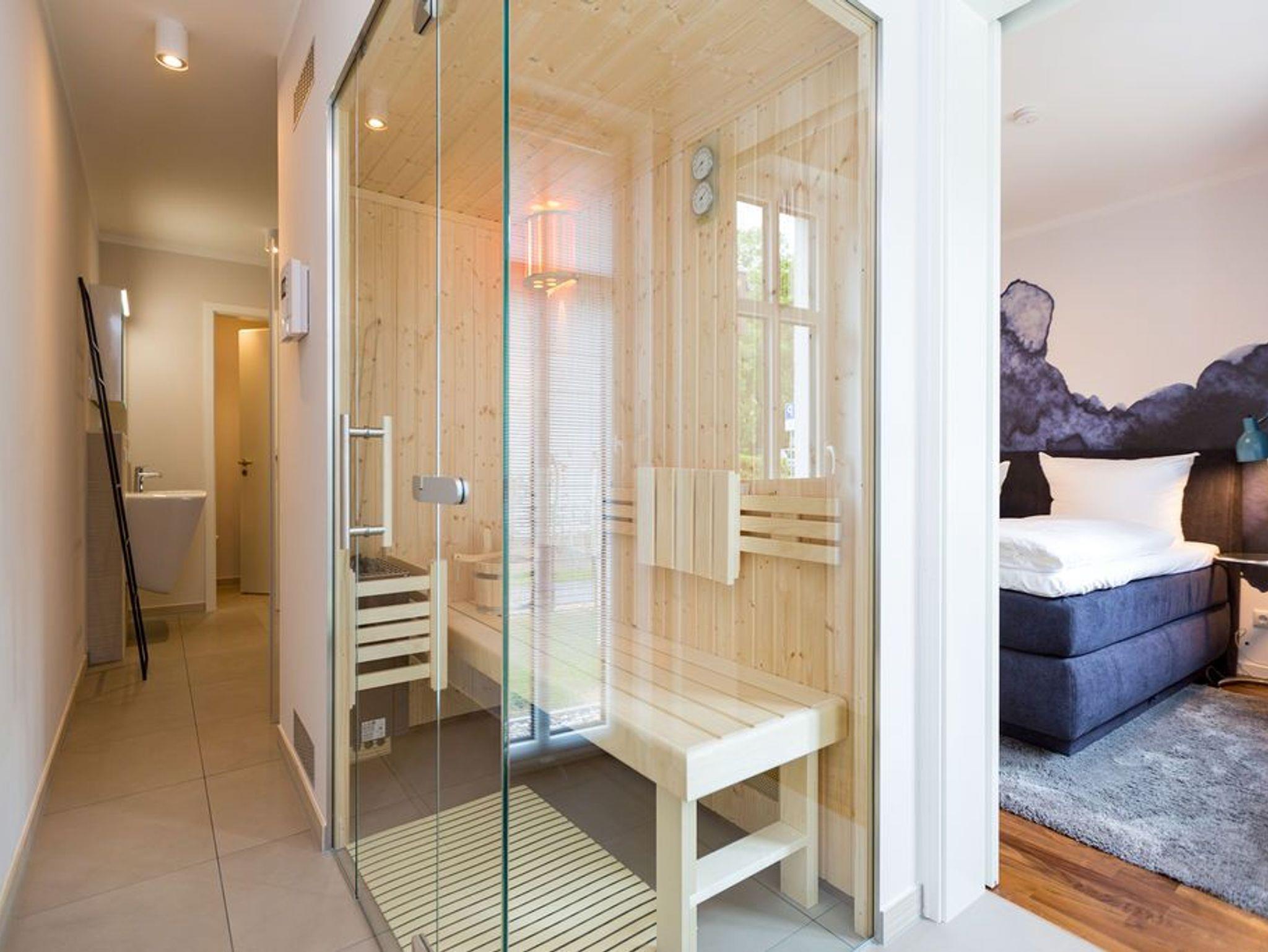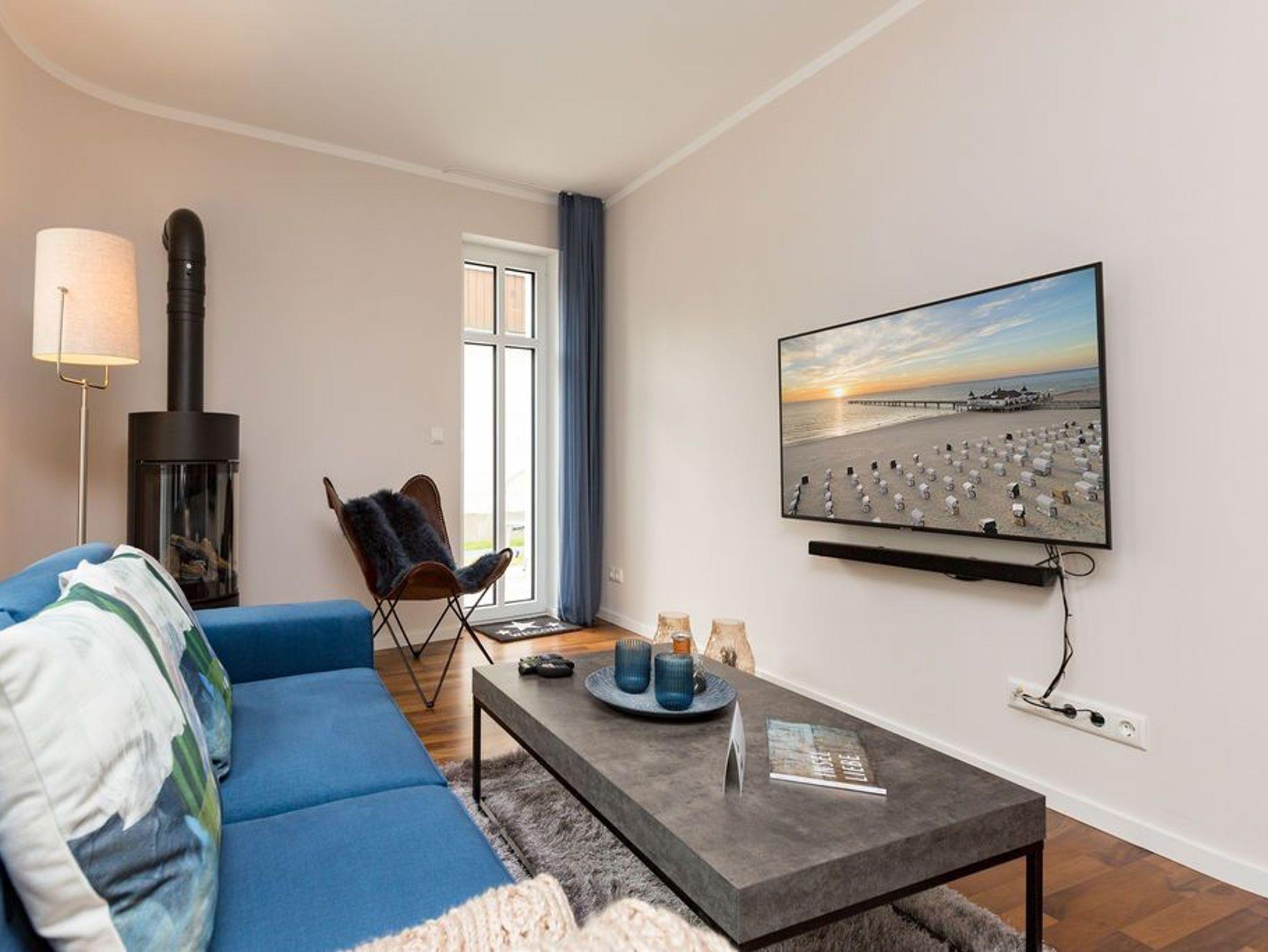 Extravagant, stilvoll, nordisch ? all das trifft auf das 65 Quadratmeter große Appartement im Erdgeschoss gleichermaßen zu. Platz ist hier für zwei Personen plus ein Kleinkind bis zwei Jahre (im Kinderreisebett) und einem geliebten Vierbeiner. Wer sich gern mit modernem Design umgibt und exklusive Wohntrends liebt, wird sich in diesem Ferienparadies rundum wohl fühlen. Ob außergewöhnliche Wandgestaltung oder Wohn-Accessoires, die dem Auge gefällig, harmonisch aufeinander abgestimmt sind; ob modernes Lichtdesign oder Hightech-Ausstattung vom Feinsten ? in dieser Zwei-Raum-Wohnung stimmt einfach alles. Behaglichkeit und Gemütlichkeit empfängt Sie im großen Wohn-Esszimmer mit Sitzgruppe und offener Küche. Ein Gas-Kamin sorgt für kuschelige Wärme und jede Menge Romantik. Doch keine Angst, auch wenn der Kamin einmal nicht an ist, bekommen Sie keine kalten Füße. Die Wohnung ist mit einer Fußbodenheizung ausgestattet. Ein großer Flat-TV mit Blue-Ray-Player sorgt für Unterhaltung. Zwei wunderbar große Terrassen (Richtung Süd-West und Richtung Süd-Ost, je 11 Quadratmeter groß) eignen sich ideal zum Sonnenbaden oder gemütlichen Zusammensitzen. Doch auch im Wohnzimmer gibt es zum Essen und Sitzen einen schönen Holzesstisch. Die offene Wohnküche ist mit hochwertigen Markengeräten wie einem Induktionsherd, Geschirrspüler, Kühlschrank mit Gefrierfach sowie edlem Geschirr voll ausgestattet. Im Schlafzimmer wartet ein bequemes Boxspringdoppelbett (1,80 m x 2,00 m) nur darauf, Ihnen wohliges Schlafvergnügen zu bereiten. Ein geräumiger Schrank bietet reichlich Platz zur Ablage. Im Schlafzimmer befindet sich ebenfalls ein Flat-TV (40 Zoll). Das Bad ist eine kleine Wellness-Oase. Denn in der dort integrierten Sauna können Sie nicht nur gehörig ins Schwitzen kommen, sondern auch herrlich entspannen. Dusche, Waschtisch und ein separates WC sind auf dem neuesten Stand. Handtücher liegen bei der Anreise bereit und auch die Betten sind bereits bezogen. Zu der Wohnung gehört in der Tiefgarage ein Stellplatz.