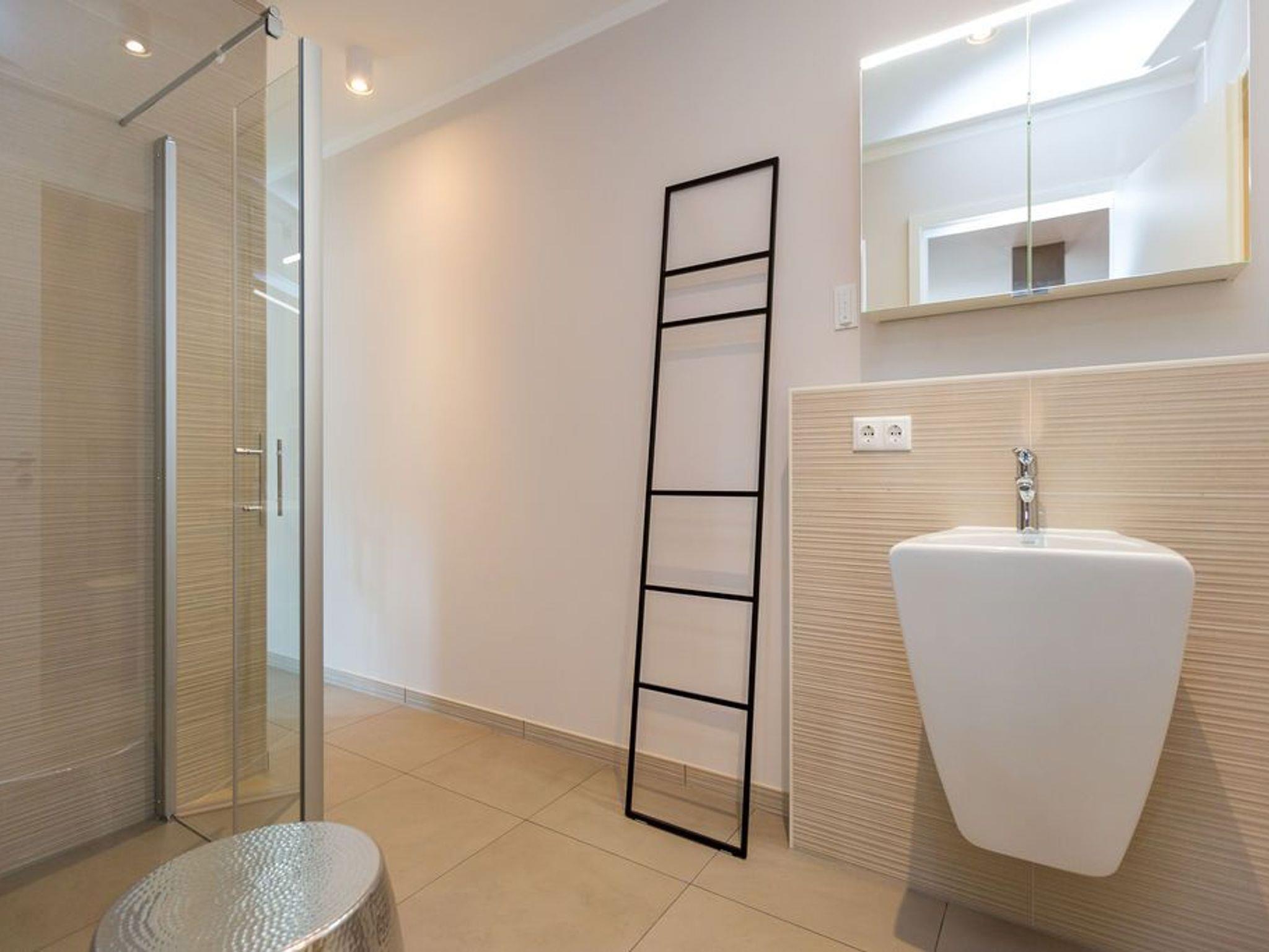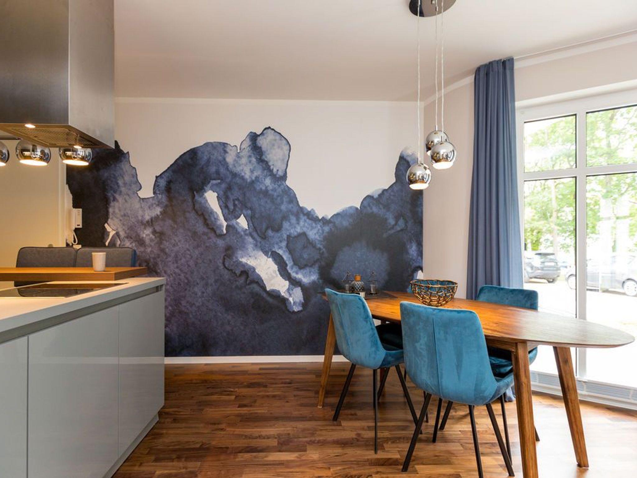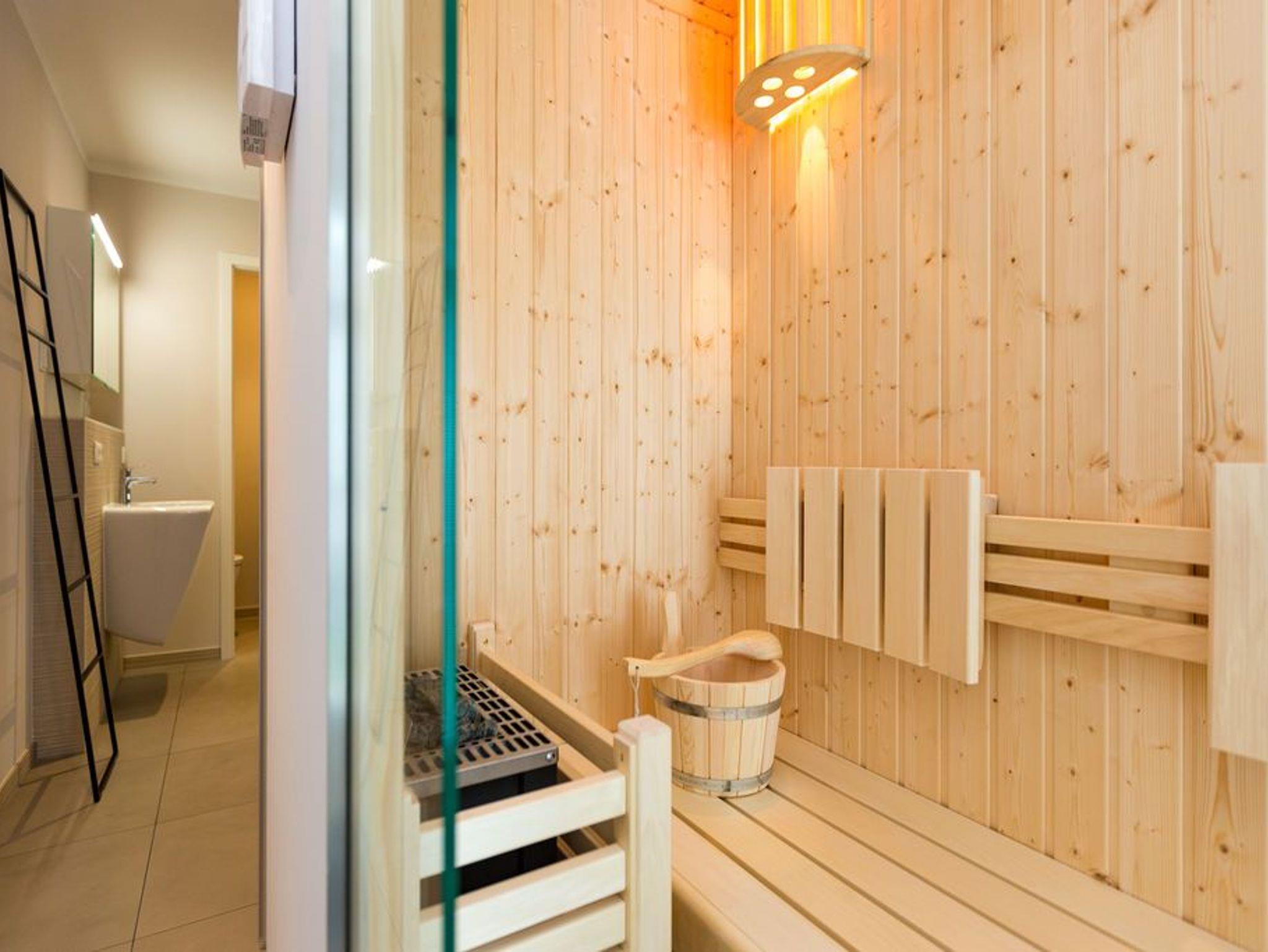 Extravagant, stilvoll, nordisch ? all das trifft auf das 65 Quadratmeter große Appartement im Erdgeschoss gleichermaßen zu. Platz ist hier für zwei Personen plus ein Kleinkind bis zwei Jahre (im Kinderreisebett) und einem geliebten Vierbeiner. Wer sich gern mit modernem Design umgibt und exklusive Wohntrends liebt, wird sich in diesem Ferienparadies rundum wohl fühlen. Ob außergewöhnliche Wandgestaltung oder Wohn-Accessoires, die dem Auge gefällig, harmonisch aufeinander abgestimmt sind; ob modernes Lichtdesign oder Hightech-Ausstattung vom Feinsten ? in dieser Zwei-Raum-Wohnung stimmt einfach alles. Behaglichkeit und Gemütlichkeit empfängt Sie im großen Wohn-Esszimmer mit Sitzgruppe und offener Küche. Ein Gas-Kamin sorgt für kuschelige Wärme und jede Menge Romantik. Doch keine Angst, auch wenn der Kamin einmal nicht an ist, bekommen Sie keine kalten Füße. Die Wohnung ist mit einer Fußbodenheizung ausgestattet. Ein großer Flat-TV mit Blue-Ray-Player sorgt für Unterhaltung. Zwei wunderbar große Terrassen (Richtung Süd-West und Richtung Süd-Ost, je 11 Quadratmeter groß) eignen sich ideal zum Sonnenbaden oder gemütlichen Zusammensitzen. Doch auch im Wohnzimmer gibt es zum Essen und Sitzen einen schönen Holzesstisch. Die offene Wohnküche ist mit hochwertigen Markengeräten wie einem Induktionsherd, Geschirrspüler, Kühlschrank mit Gefrierfach sowie edlem Geschirr voll ausgestattet. Im Schlafzimmer wartet ein bequemes Boxspringdoppelbett (1,80 m x 2,00 m) nur darauf, Ihnen wohliges Schlafvergnügen zu bereiten. Ein geräumiger Schrank bietet reichlich Platz zur Ablage. Im Schlafzimmer befindet sich ebenfalls ein Flat-TV (40 Zoll). Das Bad ist eine kleine Wellness-Oase. Denn in der dort integrierten Sauna können Sie nicht nur gehörig ins Schwitzen kommen, sondern auch herrlich entspannen. Dusche, Waschtisch und ein separates WC sind auf dem neuesten Stand. Handtücher liegen bei der Anreise bereit und auch die Betten sind bereits bezogen. Zu der Wohnung gehört in der Tiefgarage ein Stellplatz.