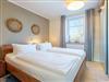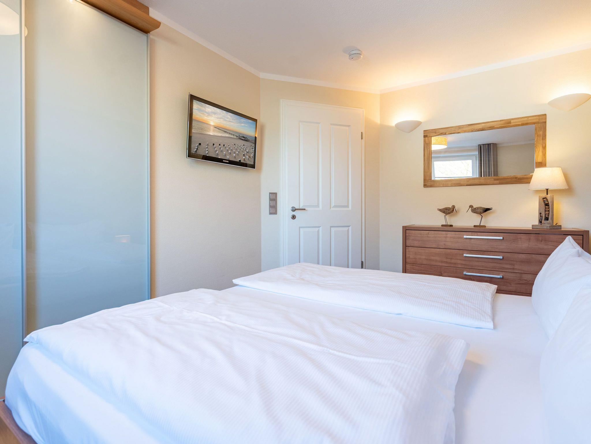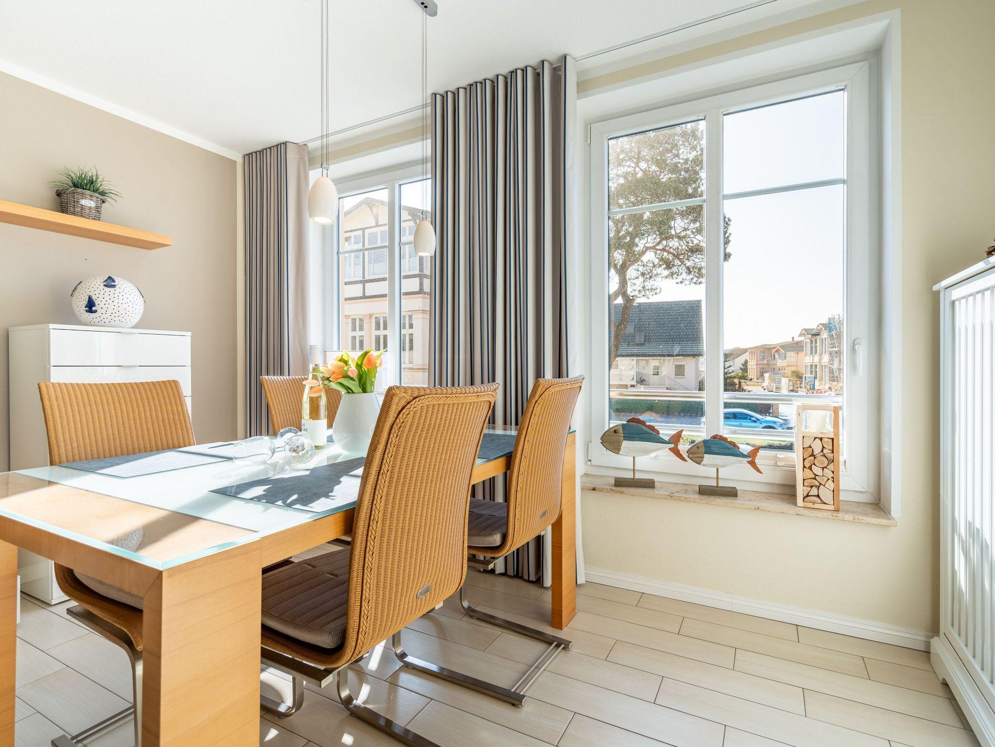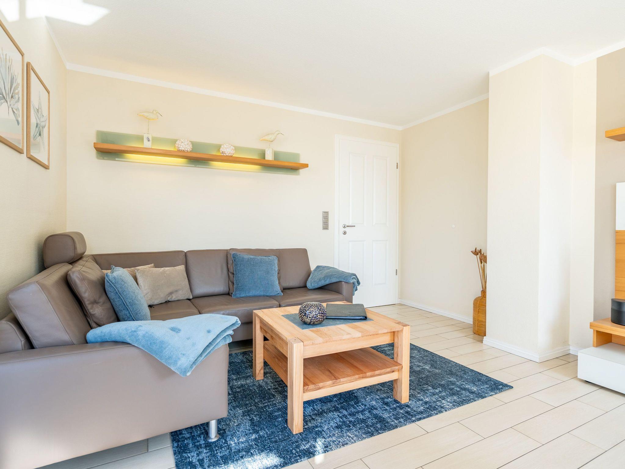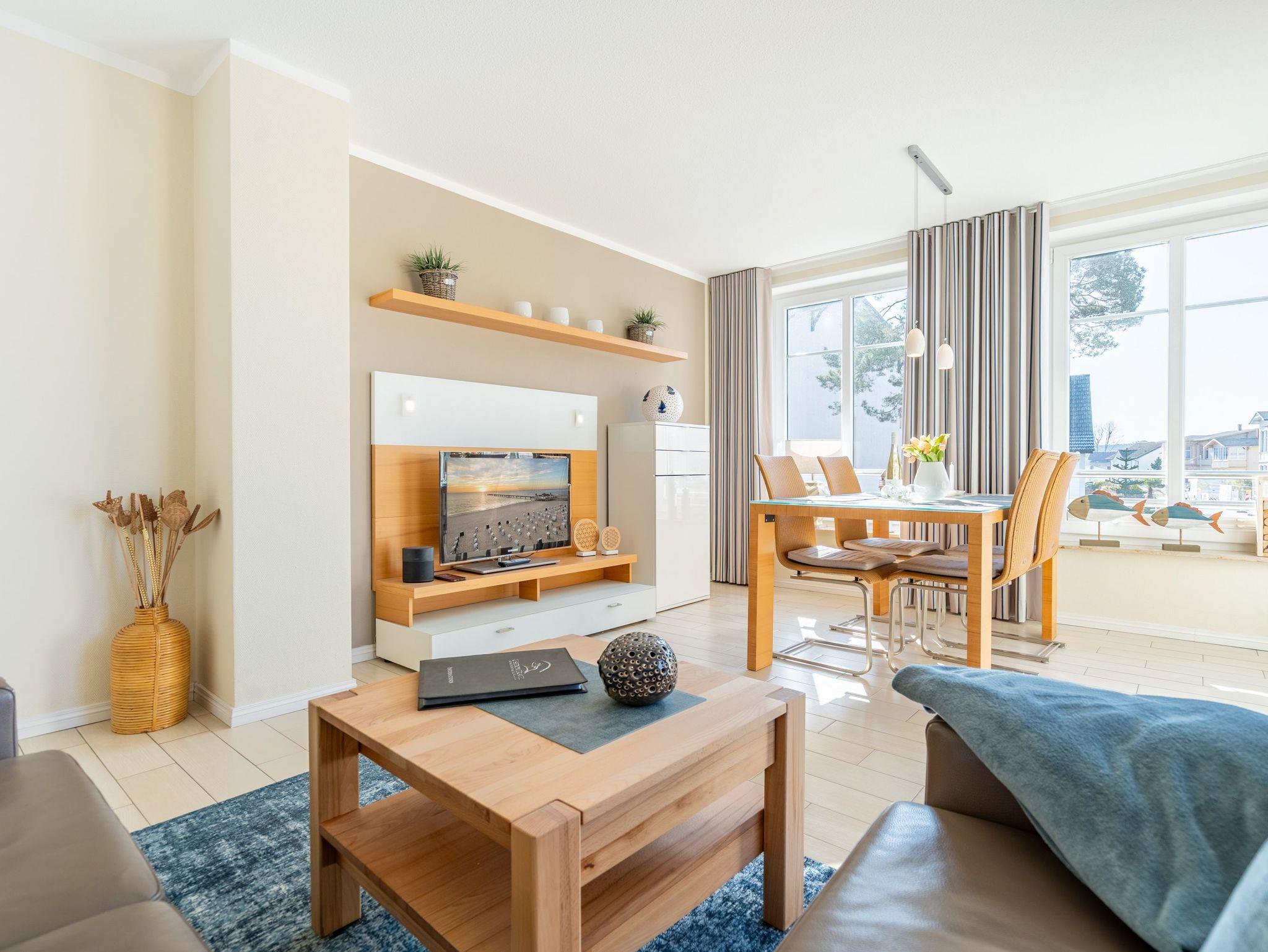 Modern. Lichtdurchflutet. Stilsicher ? so empfängt Sie die Ferienwohnung 5 im 1. Obergeschoss des neuen Hauses. Warme, an Strand und Meer erinnernde Farben, ausgesuchte Materialien und stilvolle Dekorationen verleihen dem komplett mit hellen italienischen Fliesen ausgelegten Appartement Finesse und Leichtigkeit. Der Wohnbereich ist mit einer bequemen Ledercouch und technischen Feinheiten (Flat-TV, Bose Sound Speaker 300 und Küchenradio) ausgestattet, von hier aus haben Sie Zugang zum sonnigen Südbalkon. Vom schönen Essplatz am Fenster genießen Sie den Ausblick auf die renovierten Villen in der Vinetastraße. Eine offene, komplett ausgestattete Küche mit Granitarbeitsplatte, ein gemütliches Schlafzimmer mit Doppelbett (1,80 m x 2 m) und Flat-TV sowie ein großzügiges Duschbad mit Fenster ergänzen die Wohnung und bieten Platz für 2 Personen. Als kleines Sommer-Highlight stellen wir Ihnen in den warmen Monaten (je nach Witterung) einen Strandkorb am Strand zur Verfügung ? genießen Sie die Auszeit! Das WLAN-Netz ist kostenfrei nutzbar. Zur Wohnung gehört außerdem der Tiefgaragenstellplatz Nr. 5 ? bequem, sicher und direkt am Haus. Ankommen, abschalten, Urlaub genießen.