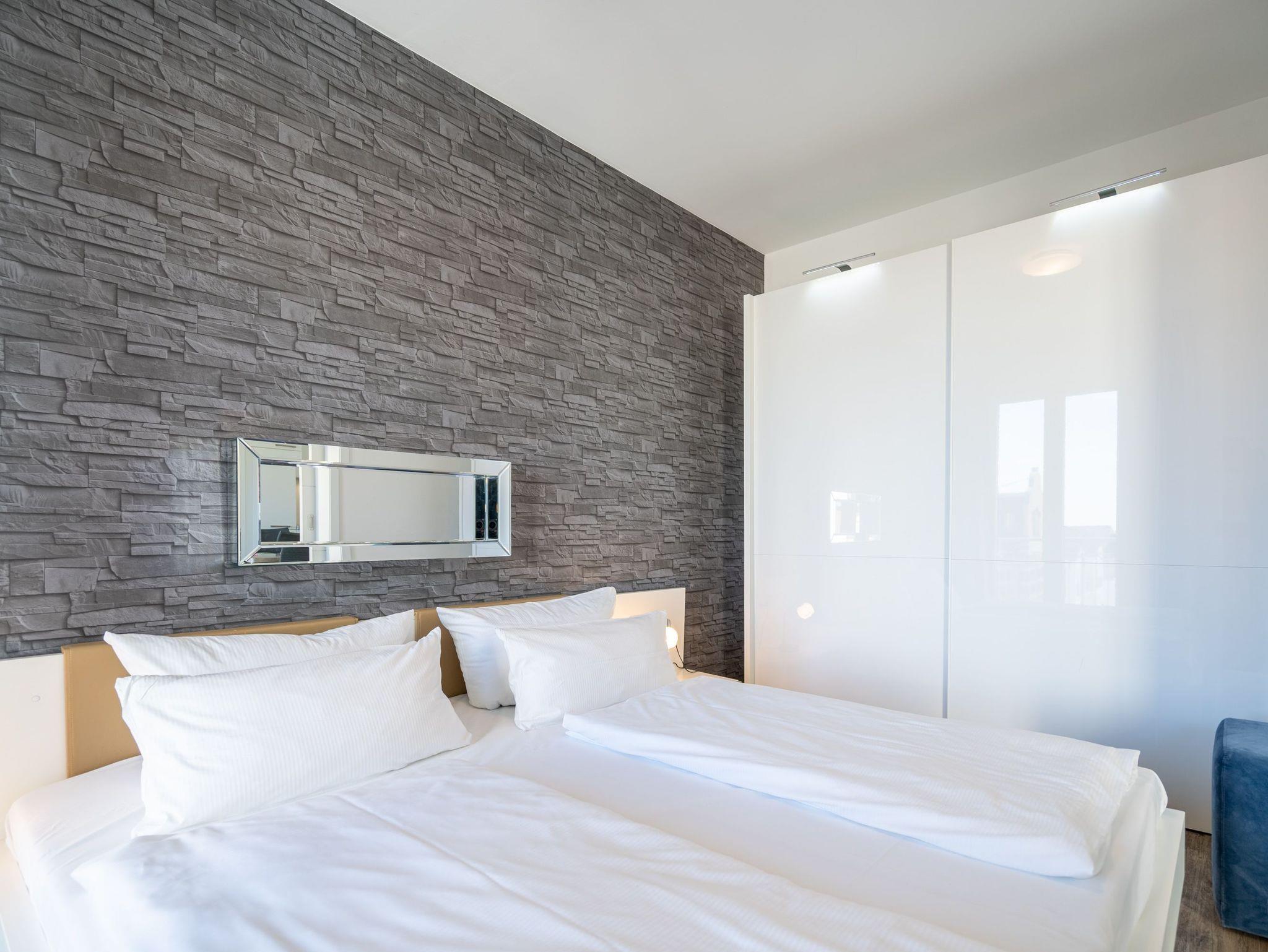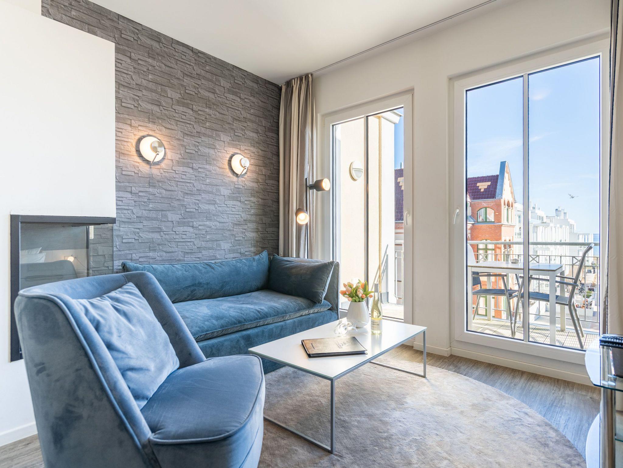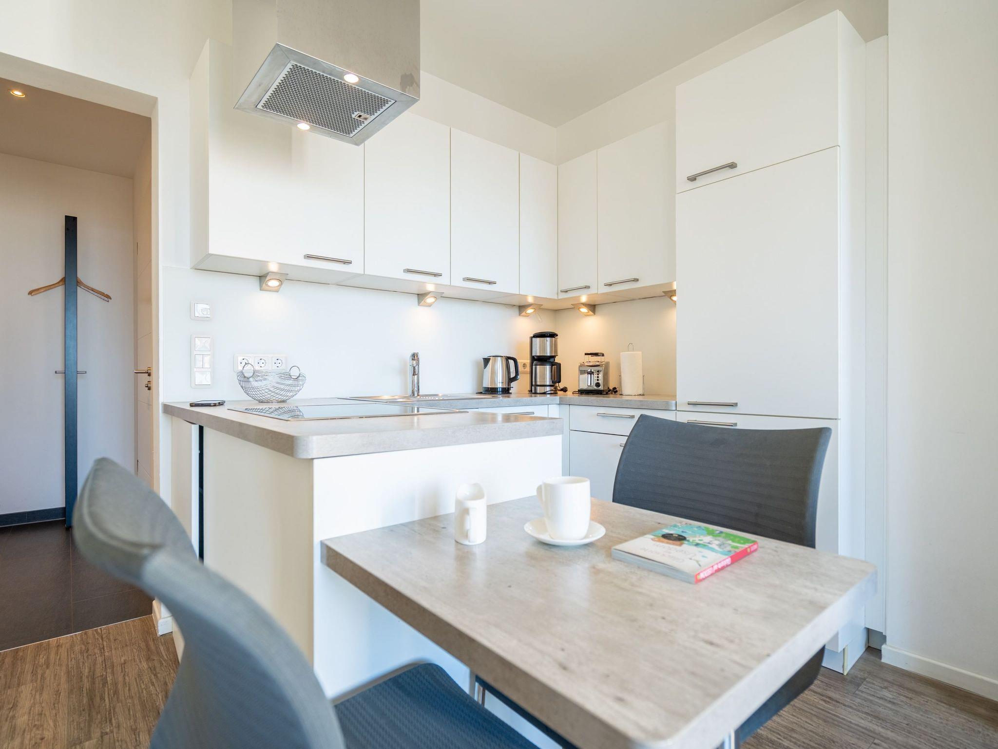 Im 2. Obergeschoss des Vorderhauses empfängt Sie die Ferienwohnung 16. Modern, exklusiv, stylisch, aber dennoch gemütlich mit Kuschelsofa und Gaskamin, der per Fernbedienung ganz einfach zu benutzen ist. Das 2-Raum-Appartement ist für 2 Personen und ein Kleinkind (bis 3 Jahre im Kinderreisebett) eingerichtet. Der Wohnbereich mit Flat-TV wird durch die offene, komplett ausgestattete Küche ergänzt. Der Schlafbereich mit bequemem Doppelbett ist durch eine Schiebetür getrennt. Von hier hat man (wie auch aus dem Wohnbereich) Zugang auf den schönen Balkon, der zur Meerseite ausgerichtet ist. Über die Bäume an der Promenade und die Goethestraße hinweg, kann man sogar die Ostsee sehen. Ein besonderes Highlight ist die wohnungseigene Sauna, die gegen eine Gebühr von 2,00 EUR / Stunde zu nutzen ist. Gleich daneben liegt das Bad mit Echtglasdusche und WC. Auf Wunsch stellen wir für unsere kleinen Gäste ein Kinderreisebett (ohne zusätzliche Matratze [&] Bettzeug) und einen Kinderhochstuhl ( gegen einen Aufpreis) zur Verfügung. Für Ihren Komfort sind die Betten bei der Anreise bezogen und Handtücher liegen bereit. Ein PKW-Stellplatz steht in der Tiefgarage am Haus zur Verfügung.