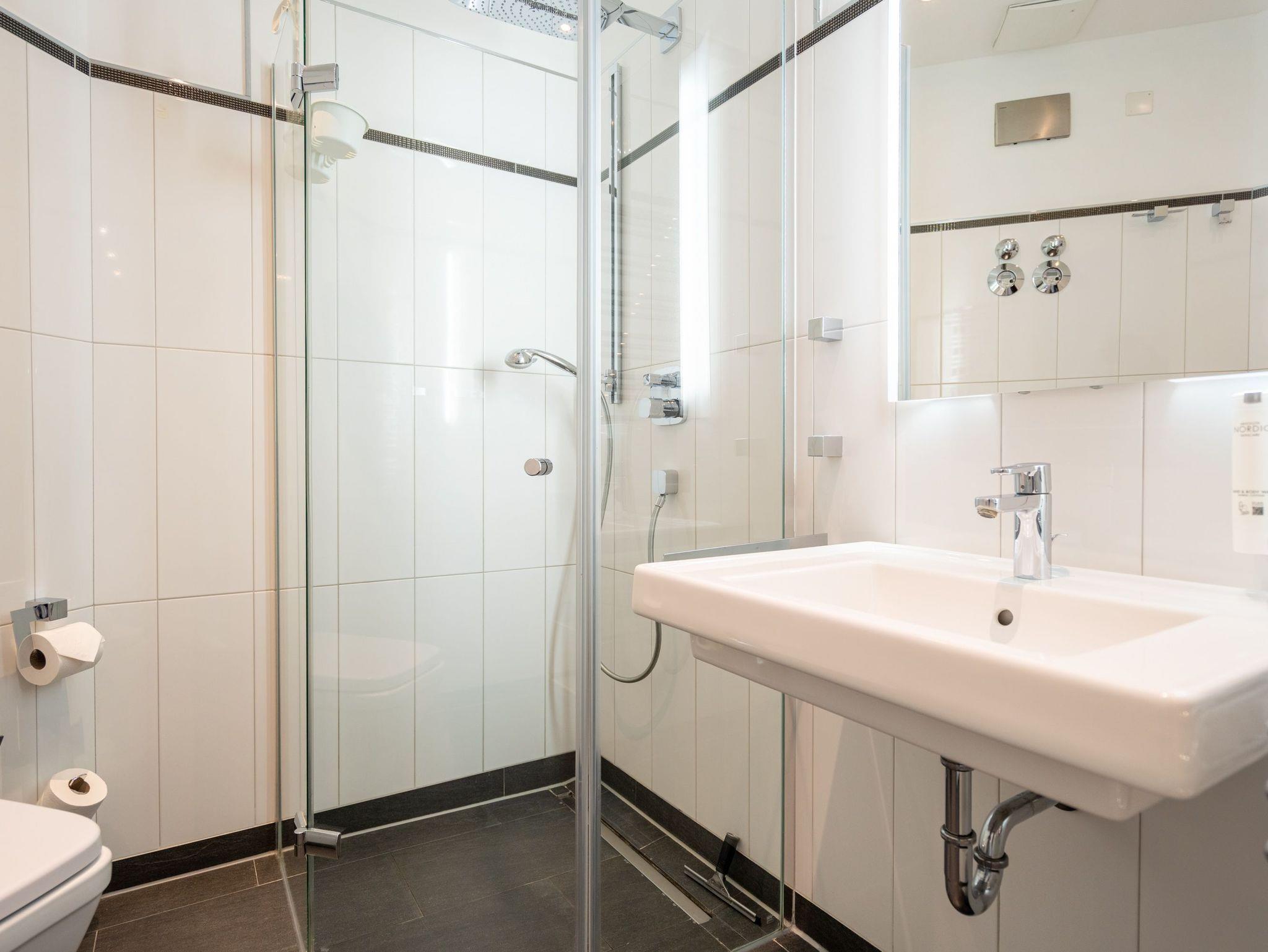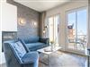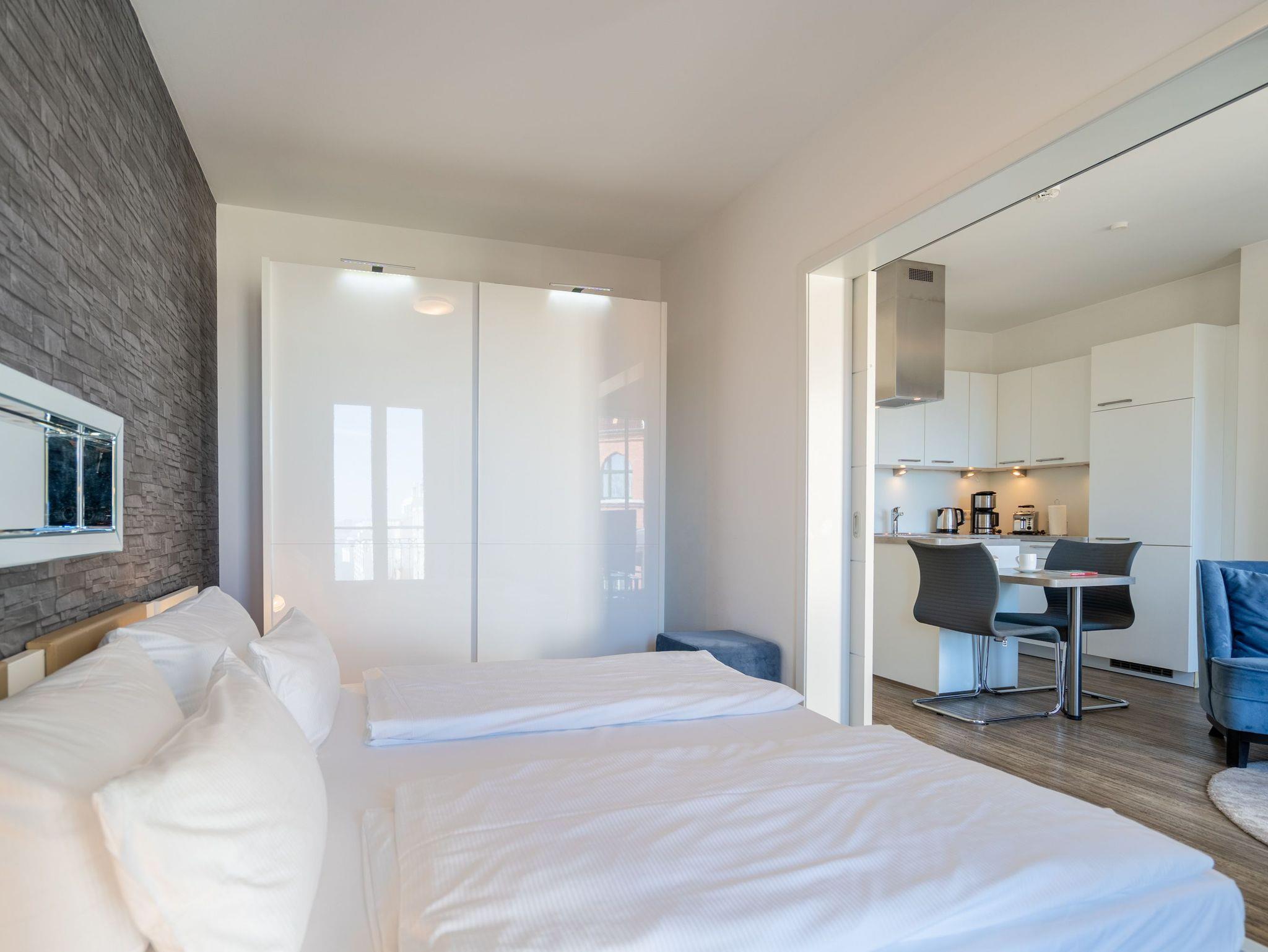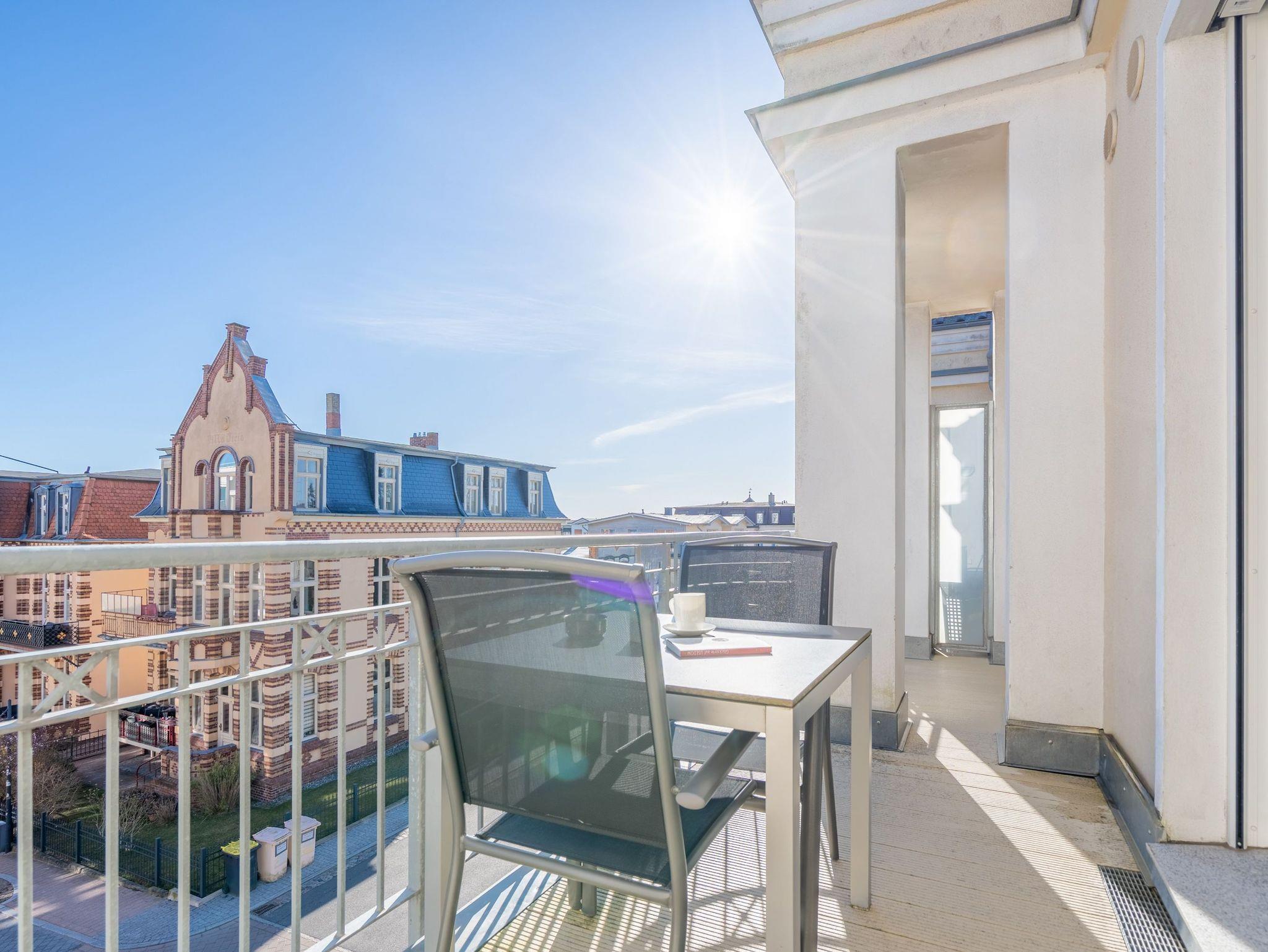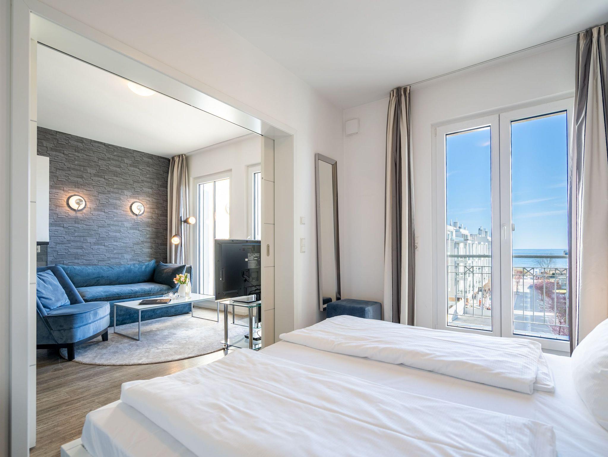 Im 2. Obergeschoss des Vorderhauses empfängt Sie die Ferienwohnung 16. Modern, exklusiv, stylisch, aber dennoch gemütlich mit Kuschelsofa und Gaskamin, der per Fernbedienung ganz einfach zu benutzen ist. Das 2-Raum-Appartement ist für 2 Personen und ein Kleinkind (bis 3 Jahre im Kinderreisebett) eingerichtet. Der Wohnbereich mit Flat-TV wird durch die offene, komplett ausgestattete Küche ergänzt. Der Schlafbereich mit bequemem Doppelbett ist durch eine Schiebetür getrennt. Von hier hat man (wie auch aus dem Wohnbereich) Zugang auf den schönen Balkon, der zur Meerseite ausgerichtet ist. Über die Bäume an der Promenade und die Goethestraße hinweg, kann man sogar die Ostsee sehen. Ein besonderes Highlight ist die wohnungseigene Sauna, die gegen eine Gebühr von 2,00 EUR / Stunde zu nutzen ist. Gleich daneben liegt das Bad mit Echtglasdusche und WC. Auf Wunsch stellen wir für unsere kleinen Gäste ein Kinderreisebett (ohne zusätzliche Matratze [&] Bettzeug) und einen Kinderhochstuhl ( gegen einen Aufpreis) zur Verfügung. Für Ihren Komfort sind die Betten bei der Anreise bezogen und Handtücher liegen bereit. Ein PKW-Stellplatz steht in der Tiefgarage am Haus zur Verfügung.