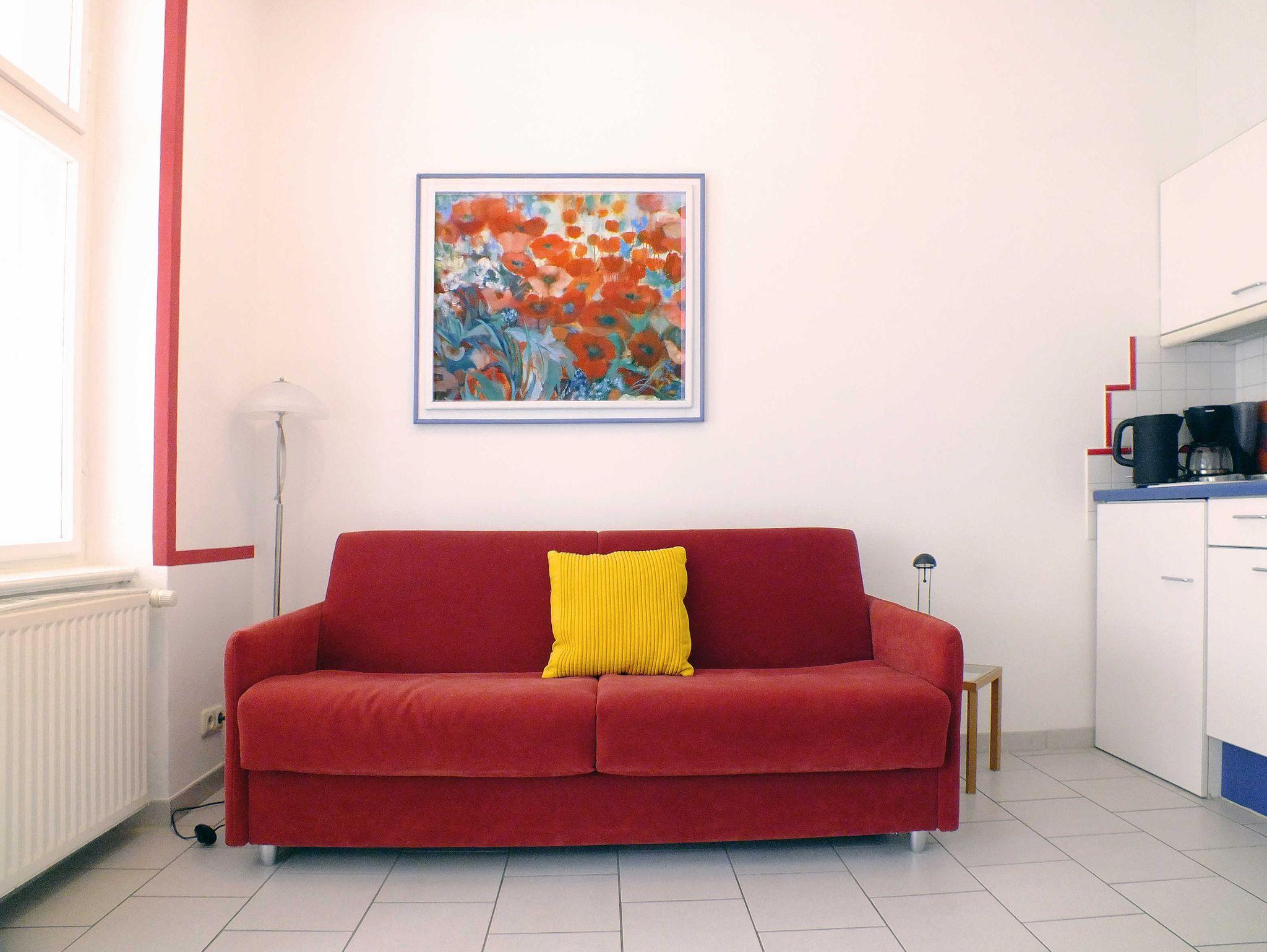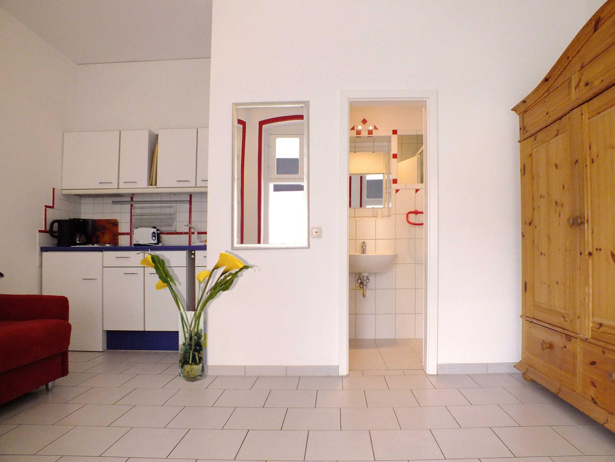 Bitte beachten Sie, dass alle Wohnungen Nichtraucher-Wohnungen sind. Das Rauchen ist ausschließlich außerhalb des Hauses möglich. Auf der Hofseite befinden sich eine Gemeinschaftsterrasse mit Tischen und Liegestühlen sowie eine kleine Grünfläche mit einer Schaukel und Sandkasten für die kleinen Gäste. Auf Anfrage sind Kinderbett und Kinderhochstuhl, in eingeschränkter Anzahl, kostenlos vorhanden.