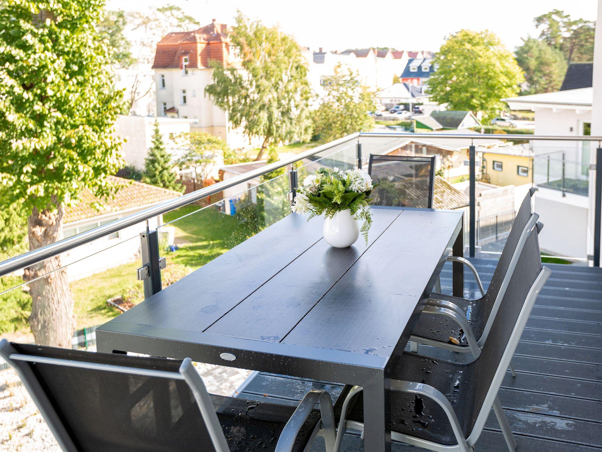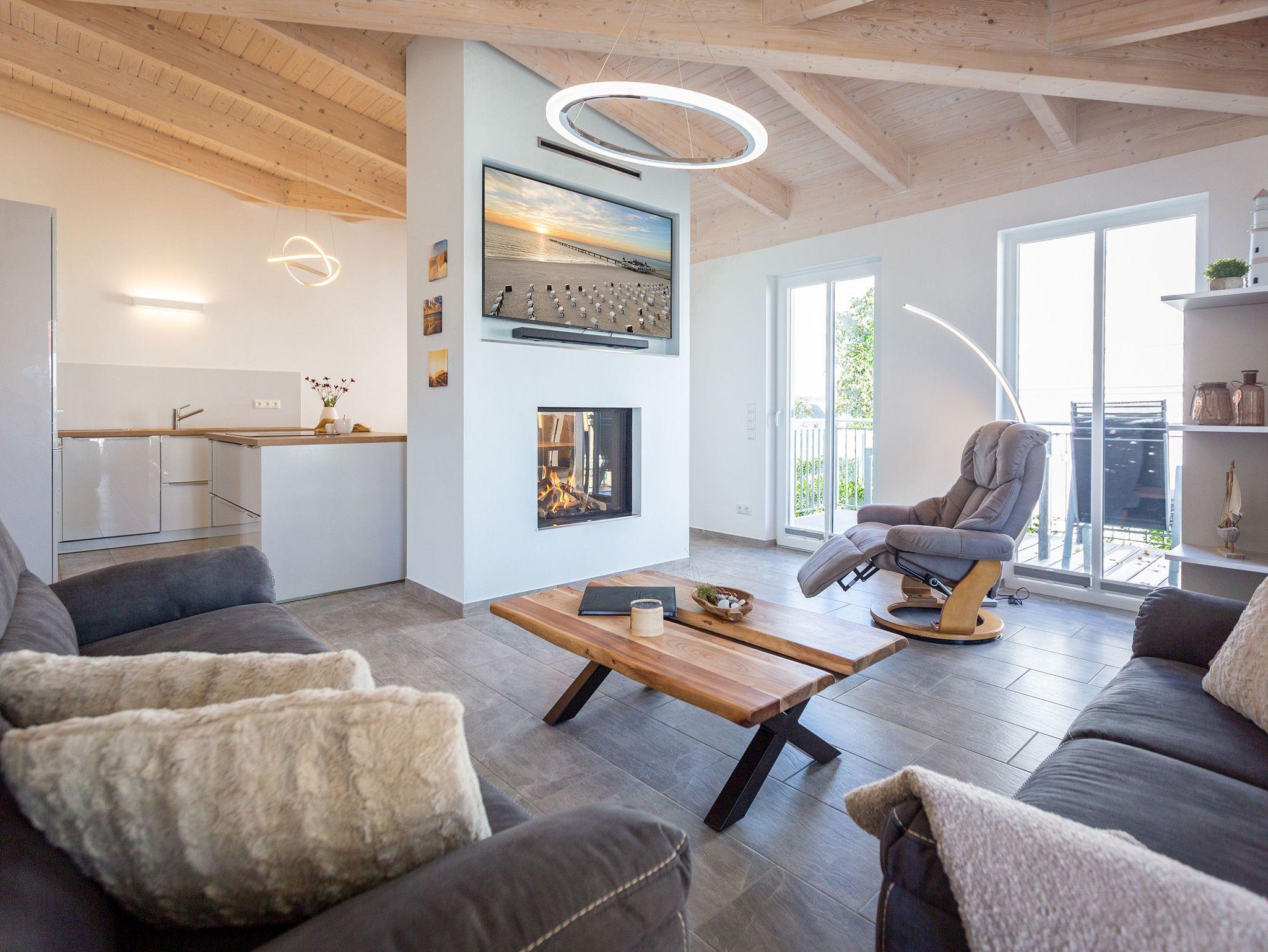 Sie haben schon immer von Meerblick in Ihrem Urlaub geträumt? Dieses schöne 3-Zimmer-Appartement (85qm) im Dachgeschoss (1. OG) für bis zu 4 Personen erlaubt Ihnen gleich von mehreren Seiten den Blick auf die einzigartige Weite der Ostsee. Lassen Sie Ihre Augen in die Ferne schweifen (Entfernung zur Ostsee 150m) und genießen Sie von Ihrem Nord-Balkon im Wohnzimmer oder Ihrem West-Balkon in beiden Schlafzimmern den seitlichen Blick auf das Meer. Hier erleben Sie, nach einer Nacht in einem der beiden komfortablen Boxspringbetten (1,80m x 2,00m), den perfekten Start in den Tag. Oder Sie genießen Ihren Urlaub ganz gemütlich in der appartementeigenen Finnischen Sauna im Masterbad. Für die anschließende Abkühlung sorgt die eingebaute Regendusche. Ein Waschtisch mit LED-Beleuchtung sowie ein beheizter Badezimmerspiegel gehören ebenso zum gehobenen Standard dieser Ferienwohnung wie ein zweites Bad mit Regendusche, Waschbecken und Toilette. Die mit viel Liebe zum Detail eingerichteten Appartementzimmer und die sichtbare Holzbalkendecke machen diese Urlaubsunterkunft zu einem einzigartigen Aufenthaltsort für Ihren Ostseeurlaub. Der offen gestaltete Wohn-Essbereich wird durch einen Gaskamin getrennt, der seine wohlige Wärme zur bequemen Sofalandschaft, in die Küche und den in Essbereich versprüht. Ein großzügiger Flat-TV zum Wohnzimmer und ein separater Flat-TV zum Küchenbereich mit Soundsystem sorgen auch an Regentagen für entsprechende Unterhaltung. Keine Wünsche lässt die voll ausgestattete Küche mit Marken-Elektrogeräten (Ceranfeld, Backofen, Mikrowelle, Spülmaschine, Kühlschrank, Gefrierschrank, Kleinküchengeräte) beim Zubereiten Ihrer Speisen offen. Genießen Sie die Vorzüge des in den Herd integrierten Dunstabzugs und der modernen Touchbedienung. Kostenfreies W-Lan und ein Stellplatz in der hauseigenen Tiefgarage runden Ihren perfekten Urlaub auf der Insel Usedom ab.