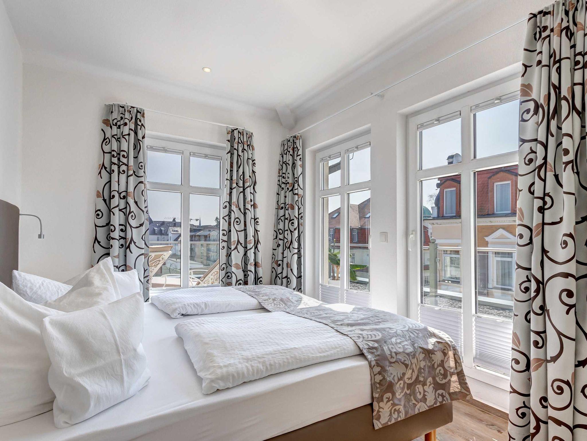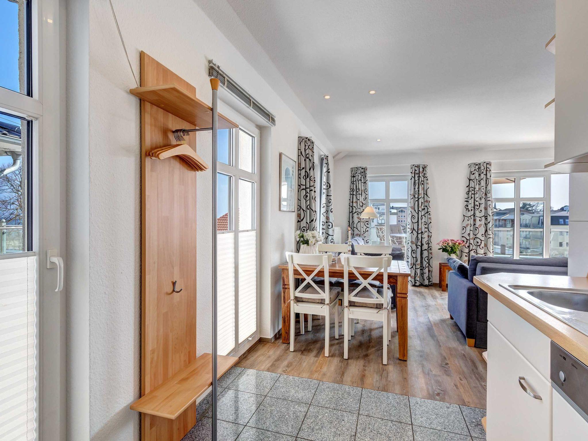 Schickes geräumiges 3-Zimmer-Appartement mit moderner hochwertiger Ausstattung. Zwei separate Schlafzimmer, Wohnzimmer mit Küchenbereich und Essplatz, Duschbad, 45 qm Dachterrasse über Eck nach Osten und Süden mit Sonne von morgens bis abends und herrlichem Seeblick. Die Wohnung verfügt über einen Tiefgaragen-Pkw-Stellplatz. In der Garage können auch Fahrräder und ähnliches untergestellt werden. Von der Villa Aquamarina sind es zum Ortszentrum und der Seebrücke ca. 3 Minuten zu Fuß. Zum Strand sind es 50 m. Die Wohnungen der Villa Aquamarina verfügen alle über passwortgeschütztes WLAN (gerätegebunden, Euro 1,50 pro Tag und pro Gerät).