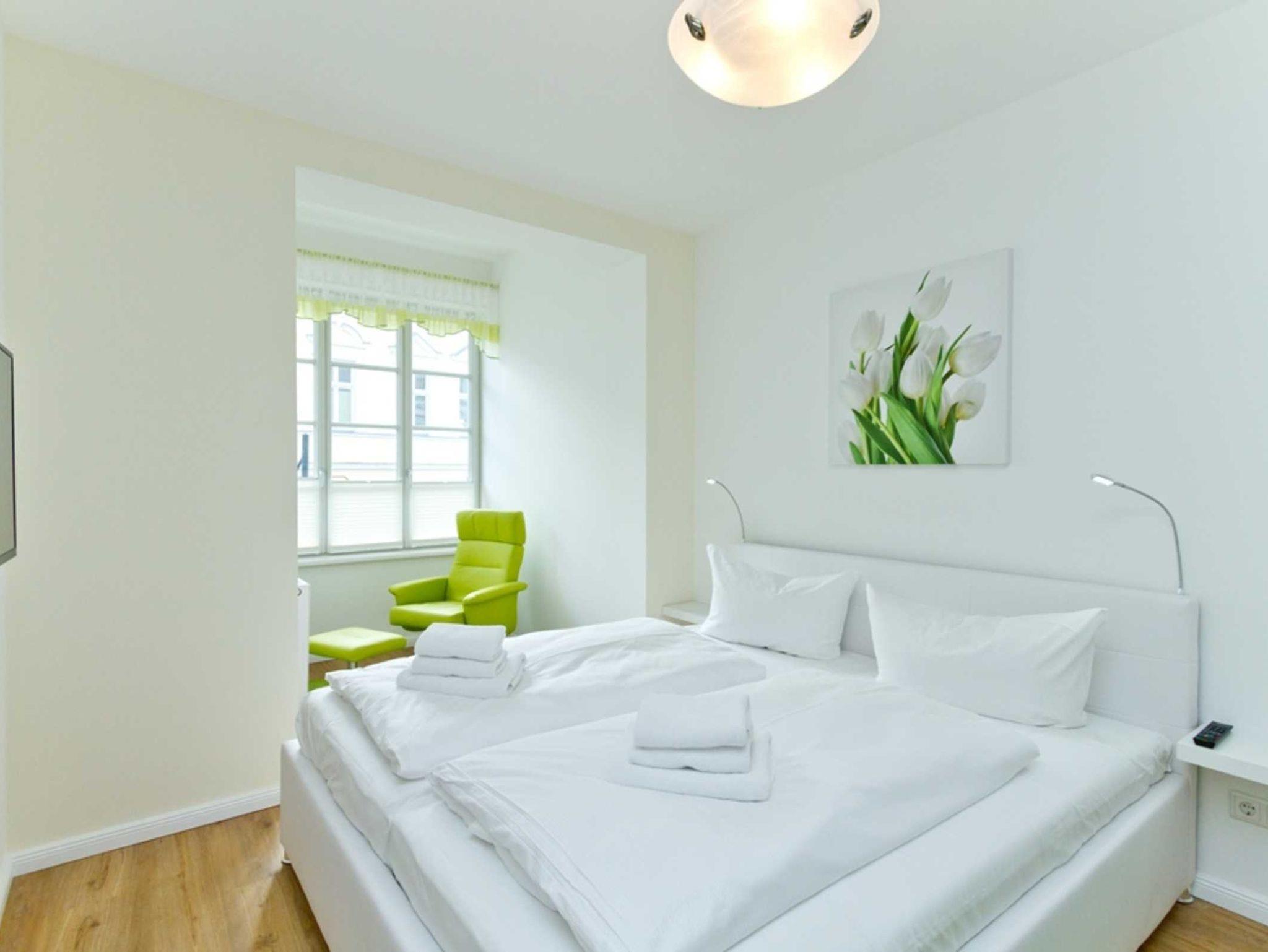 Die 2 geräumigen Schlafzimmer sind jeweils mit einem romantischen Eisenbett (180 cm x 200 cm) ausgestattet und bieten genügend Ablagemöglichkeiten für Ihre Urlaubsgarderobe. Durch die jeweils angrenzenden offenen Loggien entstehen gern genutzte Rückzugsmöglichkeiten mit Blick über die Dächer Ahlbecks. Hier lesen Sie ein schönes Buch oder verfassen die Urlaubsgrüße an die Lieben zu Hause. Zudem bieten die Schlafräume genügend Platz um jeweils ein Kinderreisebett aufzustellen.