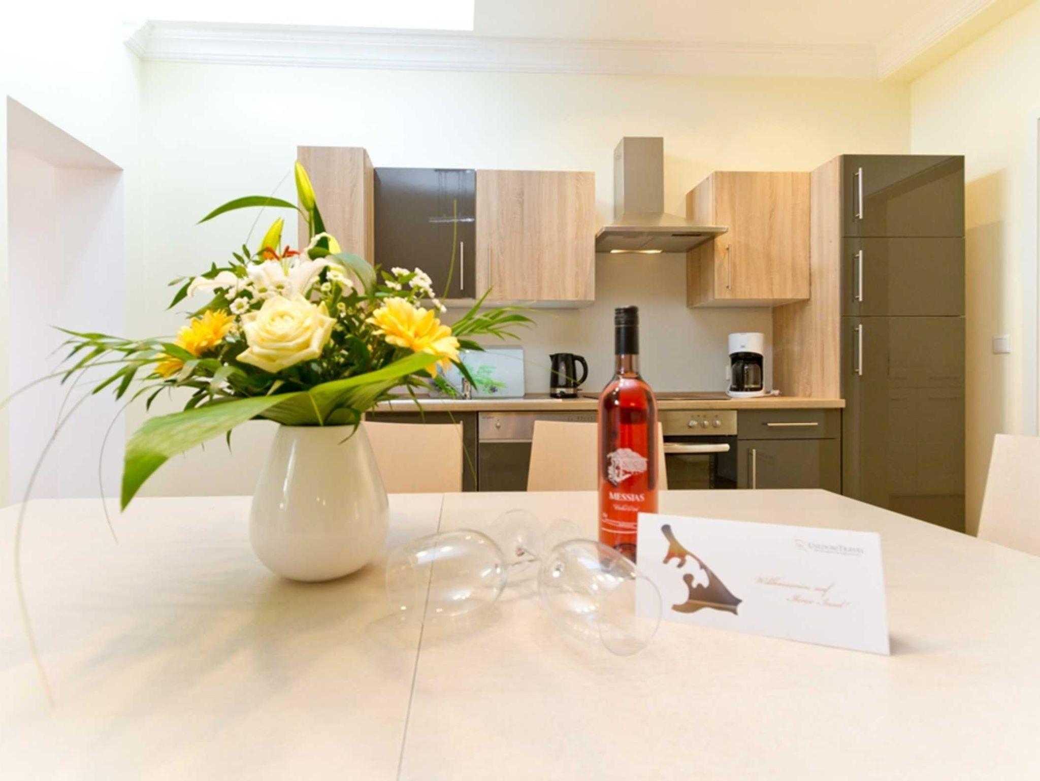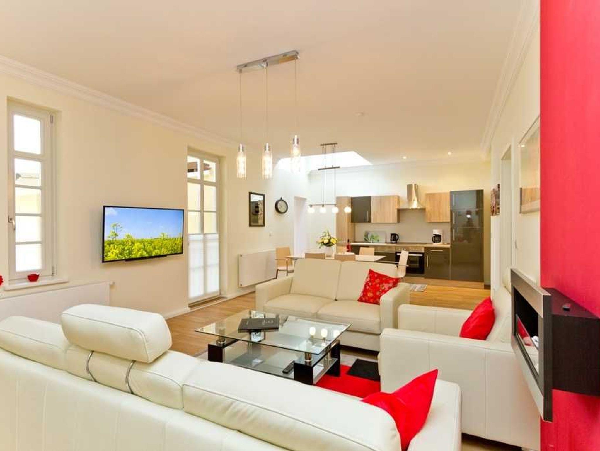 Das helle 3-Raum-Appartement lädt zum Träumen und Urlauben ein. Auf 87 Quadratmeter erwartet Sie ein mit Liebe zum Detail eingerichtetes Traumappartement. Freuen Sie auf einen großzügigen Wohnraum inkl. großer Sofalandschaft, einem Essplatz und einer offenen Küchenzeile inkl. Backofen, Ceranfeld, Kühlschrank und Geschirrspüler.
