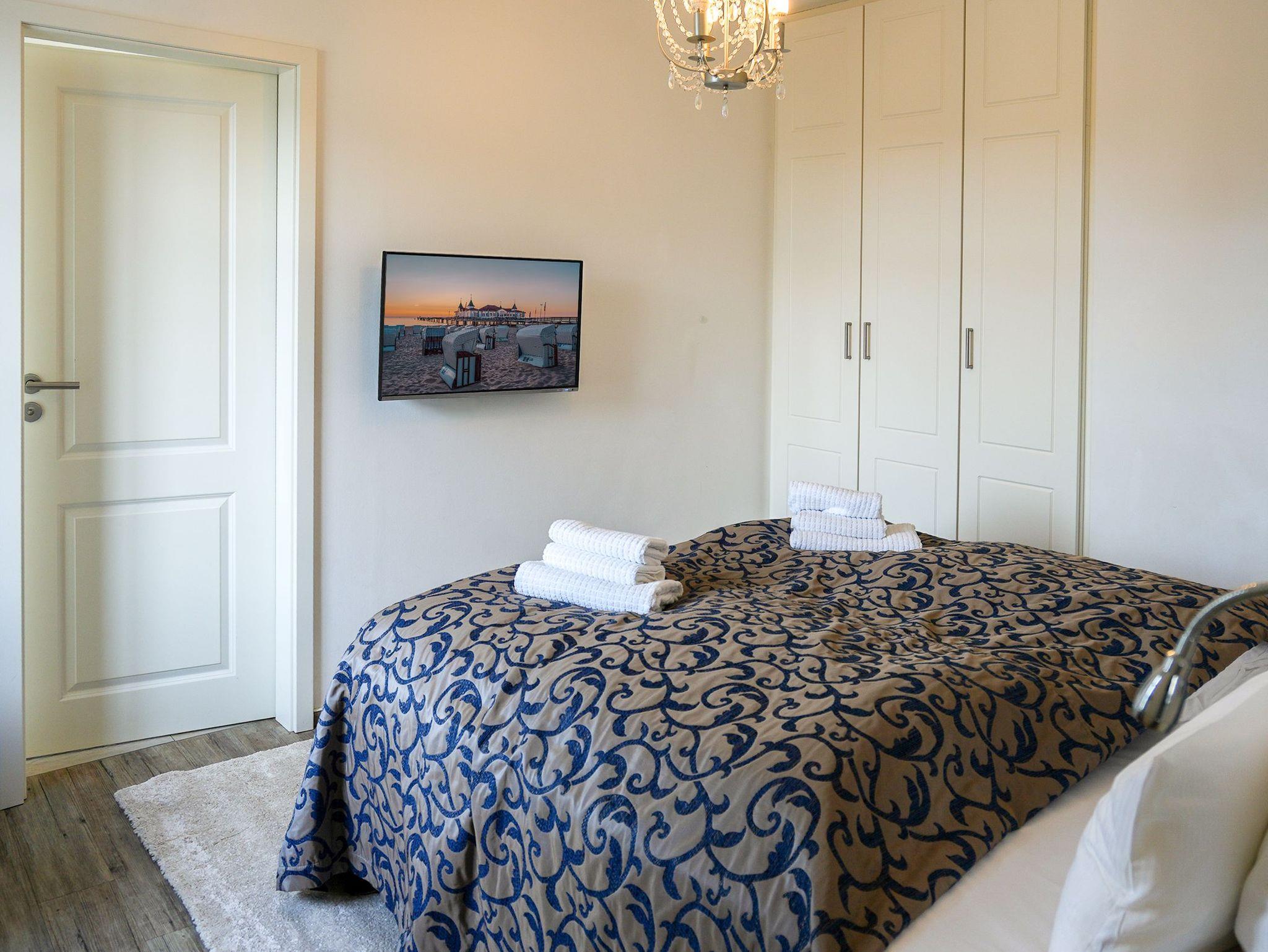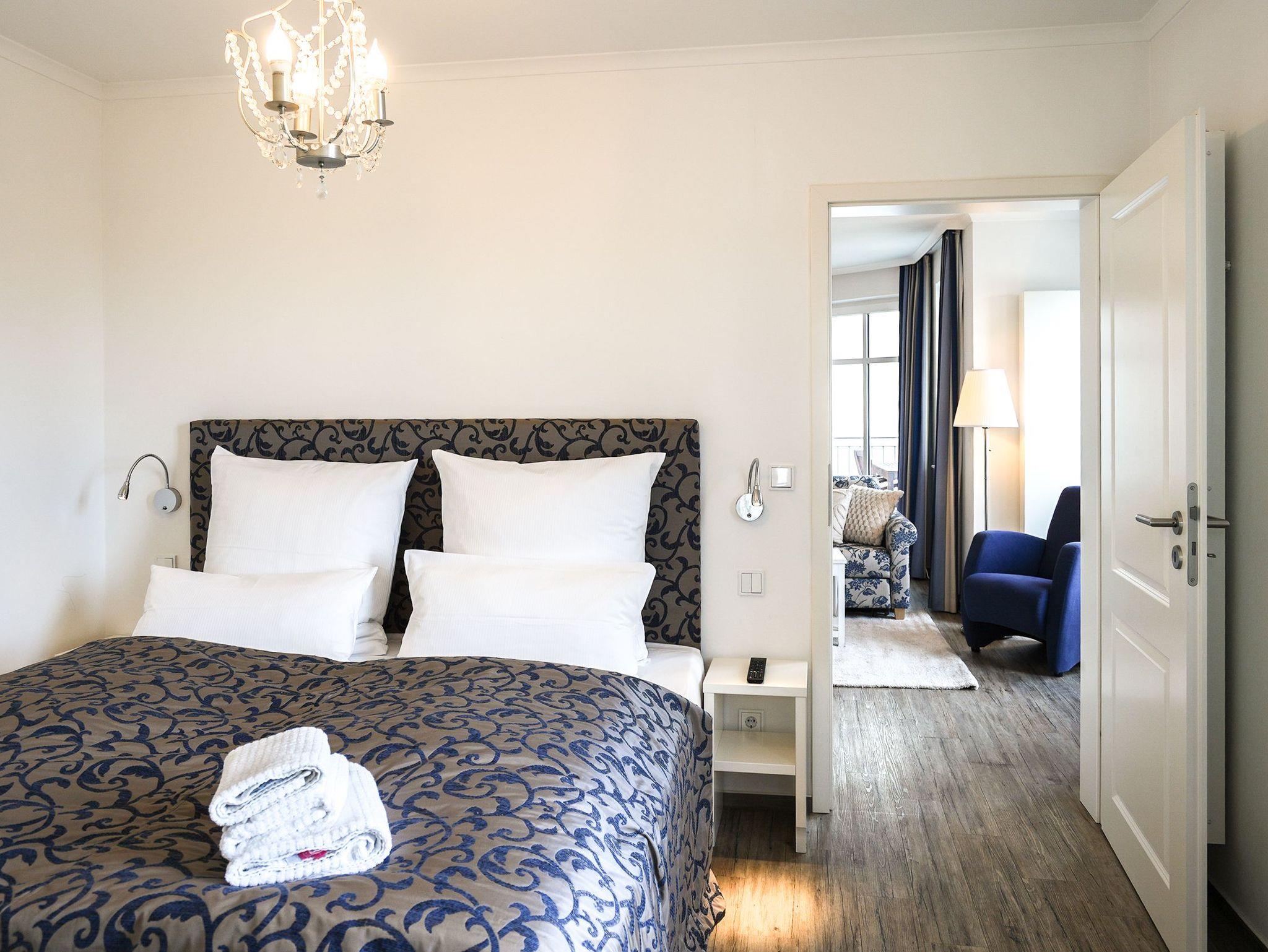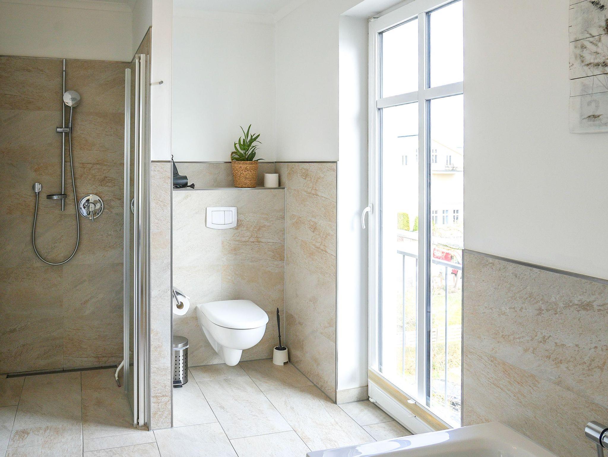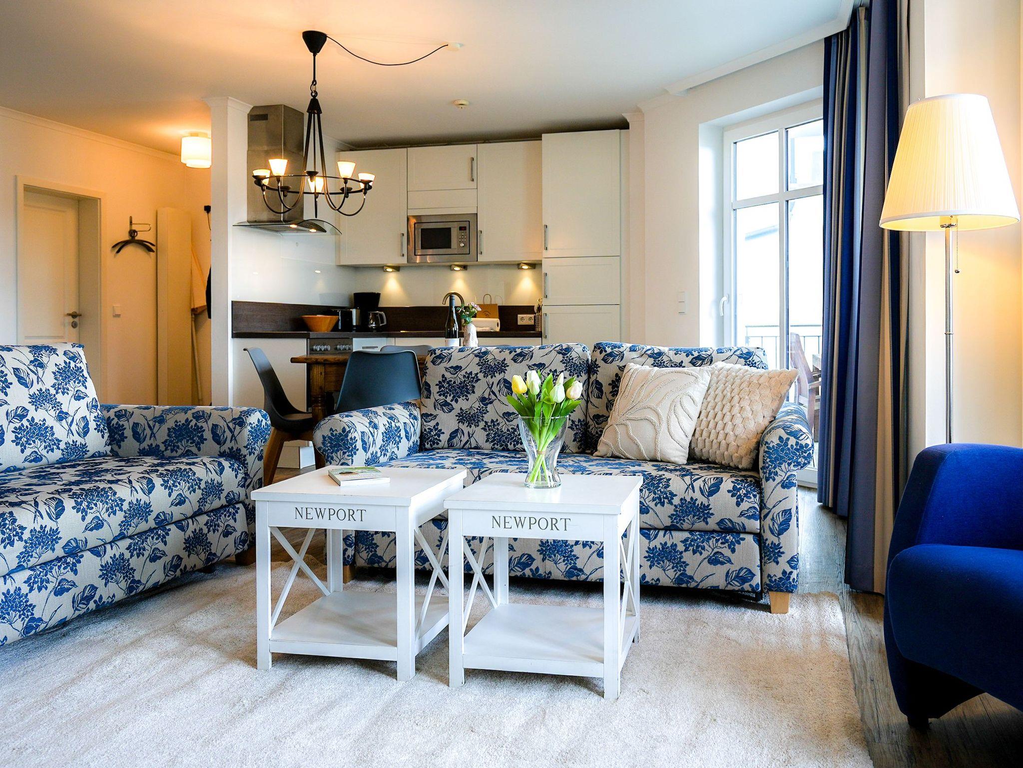 Diese großzügige 4-Raum-Ferienwohnung im 2. Obergeschoss bietet auf rund 97 m² viel Platz für bis zu sechs Personen und ist ideal für einen entspannten Urlaub am Meer. Herzstück der Wohnung ist der offene Wohn- und Essbereich mit integrierter Küchenzeile. Die Küche ist komplett ausgestattet und verfügt unter anderem über Backofen, Mikrowelle, Geschirrspüler und ein Gefrierfach, sodass Sie sich auch im Urlaub bequem selbst versorgen können. Am großen Esstisch finden bis zu sechs Personen Platz. Die gemütliche Sitzgruppe mit Kaminofen und Flat-TV lädt zu entspannten Abenden ein. Drei separate Schlafzimmer sind jeweils mit komfortablen Boxspringdoppelbetten (1,80 m x 2,00 m) und Kleiderschrank eingerichtet. Zwei der Schlafzimmer verfügen zusätzlich über einen eigenen Flat-TV. Besonders komfortabel sind die drei modernen Badezimmer mit Dusche, Waschtisch und WC. Eines der Bäder bietet zusätzlich eine Badewanne. Zwei der Bäder sind direkt an ein Schlafzimmer angeschlossen (ensuite) und bieten einen schönen Blick zum Meer. Für sonnige Stunden im Freien stehen Ihnen zwei Balkone mit Bestuhlung zur Verfügung. Einer ist nach Osten ausgerichtet und eignet sich perfekt für ein Frühstück in der Morgensonne, der andere zeigt nach Westen und lädt dazu ein, den Tag bei Abendsonne ausklingen zu lassen. Ein PKW-Stellplatz (Nr. 10) in der teilüberdachten Tiefgarage gehört zur Wohnung. Außerdem steht eine gemeinschaftliche Fahrradabstellfläche zur Verfügung. Münzwaschmaschine- und Wäschetrockner können im Untergeschoss gemeinschaftlich genutzt werden.