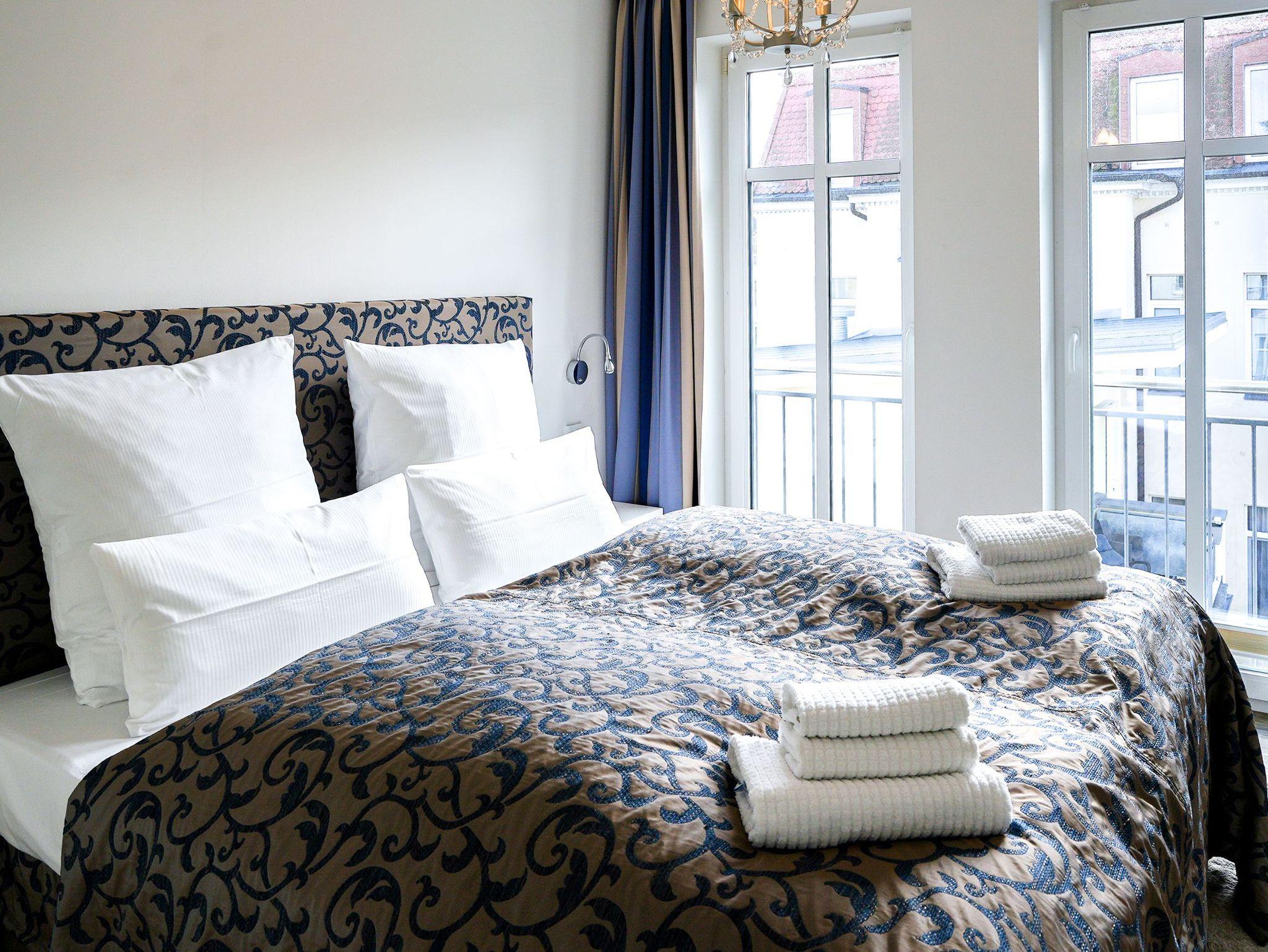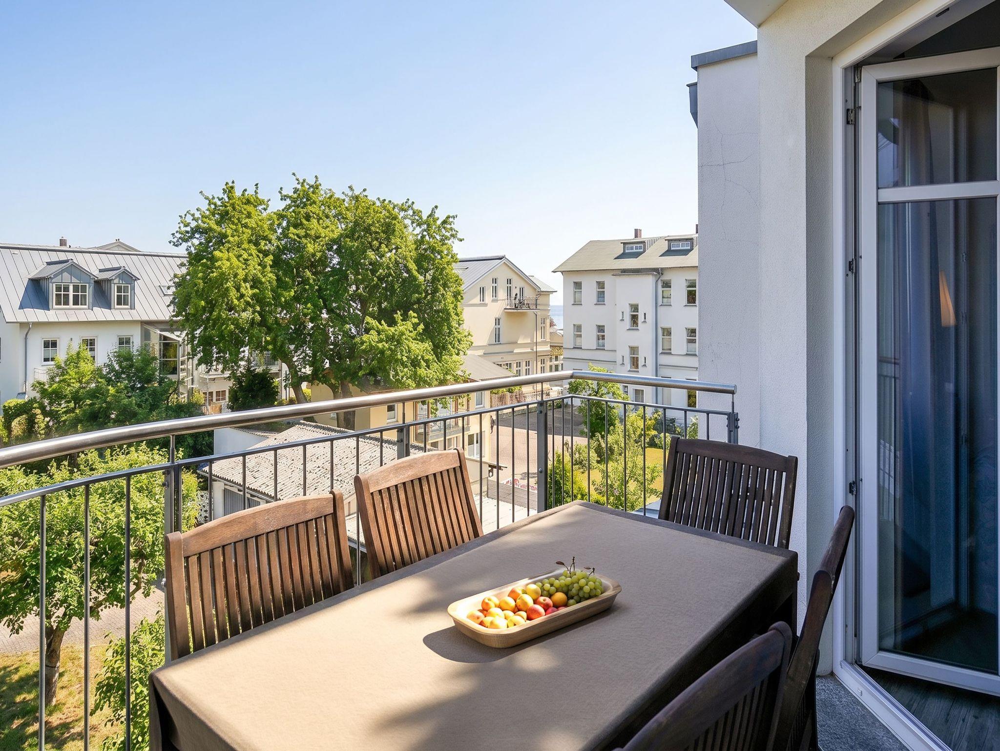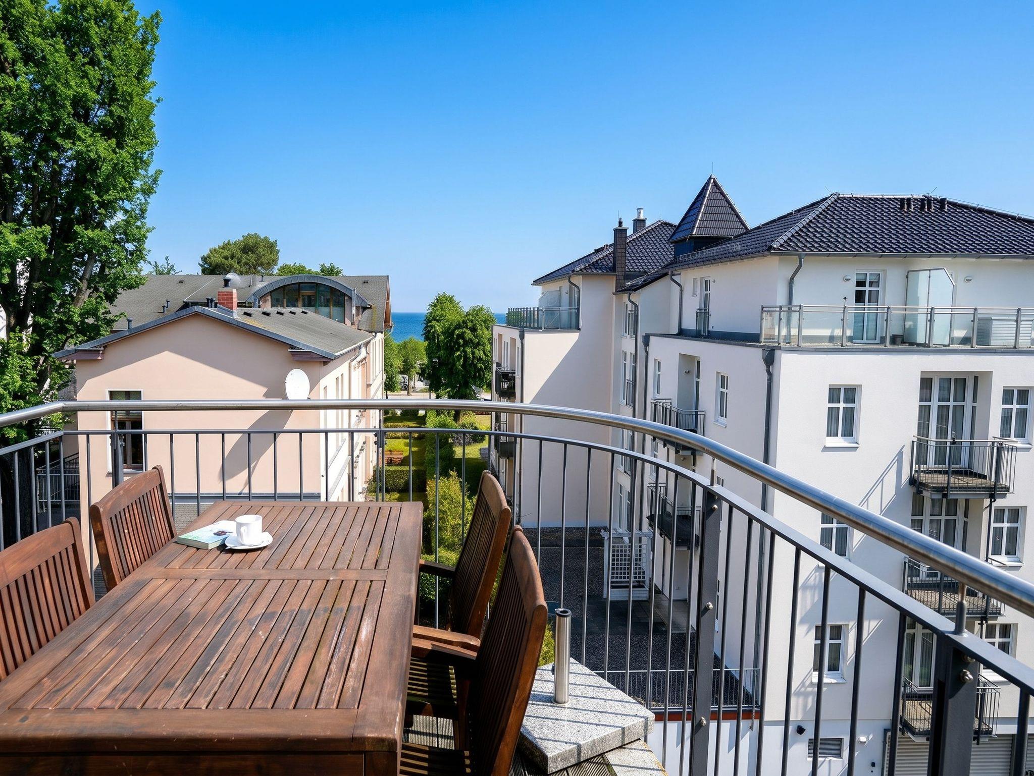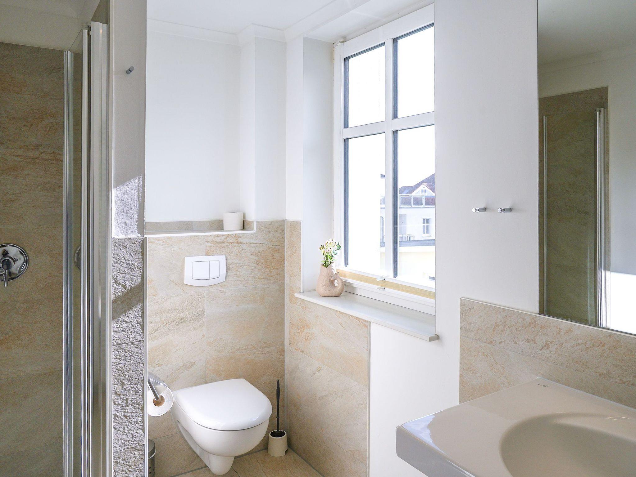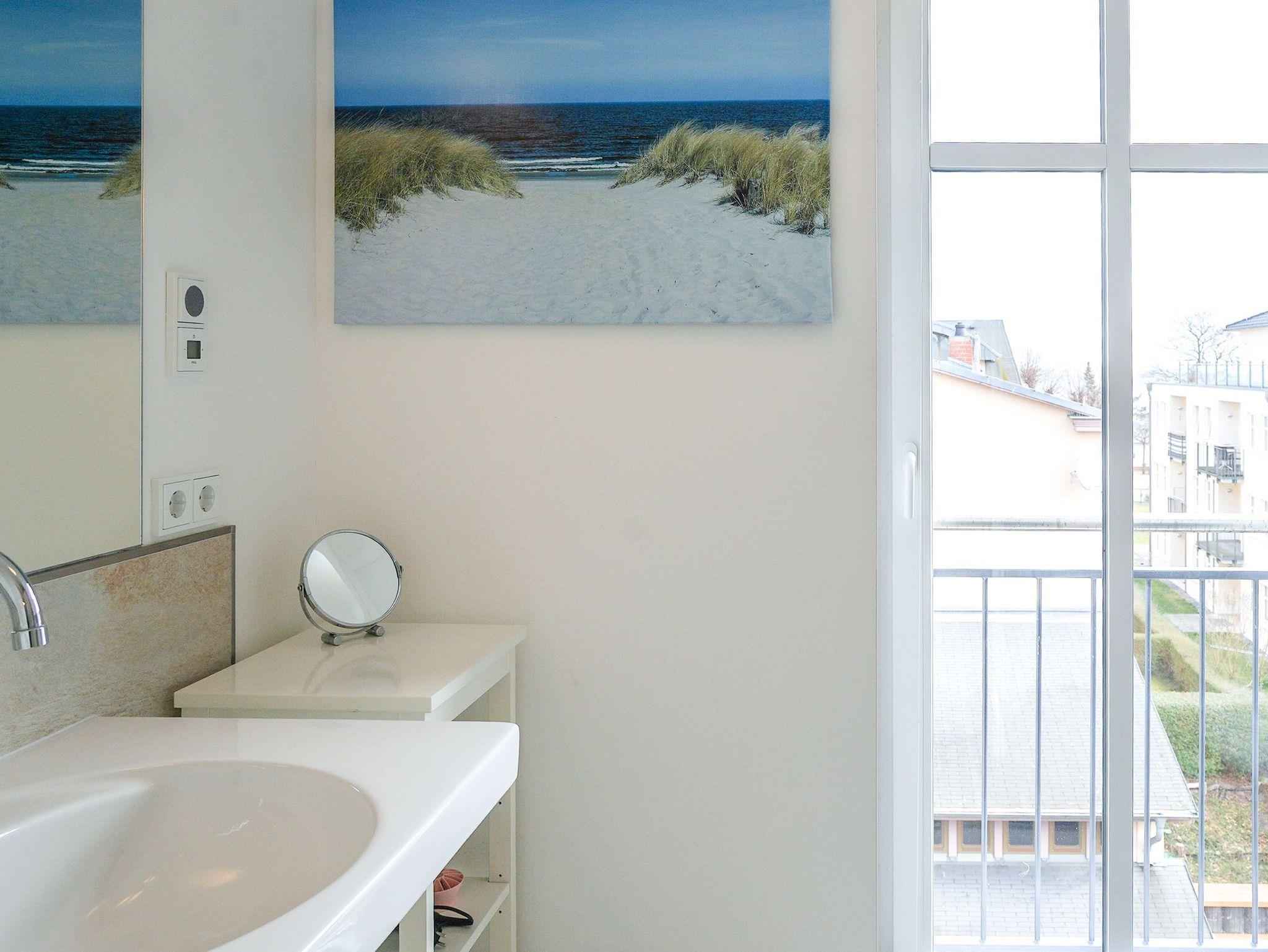Diese großzügige 4-Raum-Ferienwohnung im 2. Obergeschoss bietet auf rund 97 m² viel Platz für bis zu sechs Personen und ist ideal für einen entspannten Urlaub am Meer. Herzstück der Wohnung ist der offene Wohn- und Essbereich mit integrierter Küchenzeile. Die Küche ist komplett ausgestattet und verfügt unter anderem über Backofen, Mikrowelle, Geschirrspüler und ein Gefrierfach, sodass Sie sich auch im Urlaub bequem selbst versorgen können. Am großen Esstisch finden bis zu sechs Personen Platz. Die gemütliche Sitzgruppe mit Kaminofen und Flat-TV lädt zu entspannten Abenden ein. Drei separate Schlafzimmer sind jeweils mit komfortablen Boxspringdoppelbetten (1,80 m x 2,00 m) und Kleiderschrank eingerichtet. Zwei der Schlafzimmer verfügen zusätzlich über einen eigenen Flat-TV. Besonders komfortabel sind die drei modernen Badezimmer mit Dusche, Waschtisch und WC. Eines der Bäder bietet zusätzlich eine Badewanne. Zwei der Bäder sind direkt an ein Schlafzimmer angeschlossen (ensuite) und bieten einen schönen Blick zum Meer. Für sonnige Stunden im Freien stehen Ihnen zwei Balkone mit Bestuhlung zur Verfügung. Einer ist nach Osten ausgerichtet und eignet sich perfekt für ein Frühstück in der Morgensonne, der andere zeigt nach Westen und lädt dazu ein, den Tag bei Abendsonne ausklingen zu lassen. Ein PKW-Stellplatz (Nr. 10) in der teilüberdachten Tiefgarage gehört zur Wohnung. Außerdem steht eine gemeinschaftliche Fahrradabstellfläche zur Verfügung. Münzwaschmaschine- und Wäschetrockner können im Untergeschoss gemeinschaftlich genutzt werden.