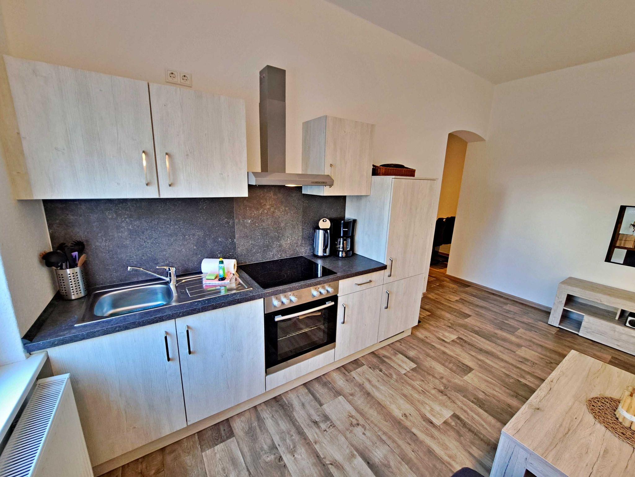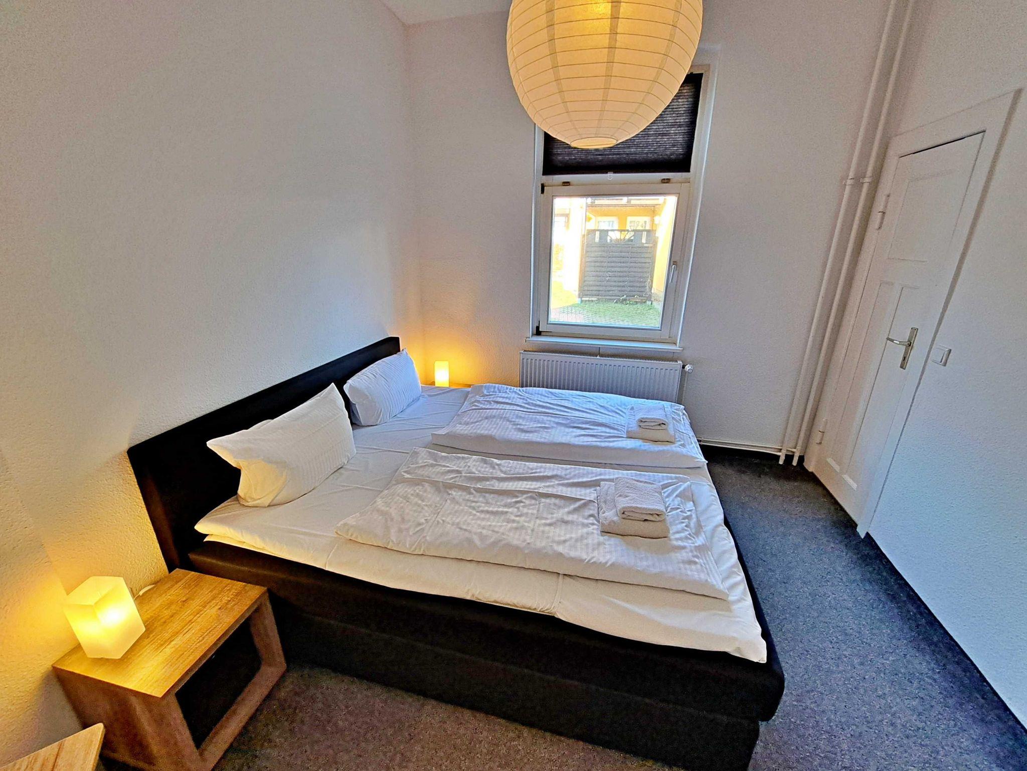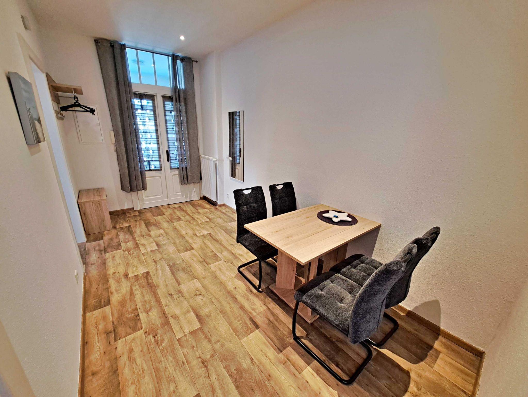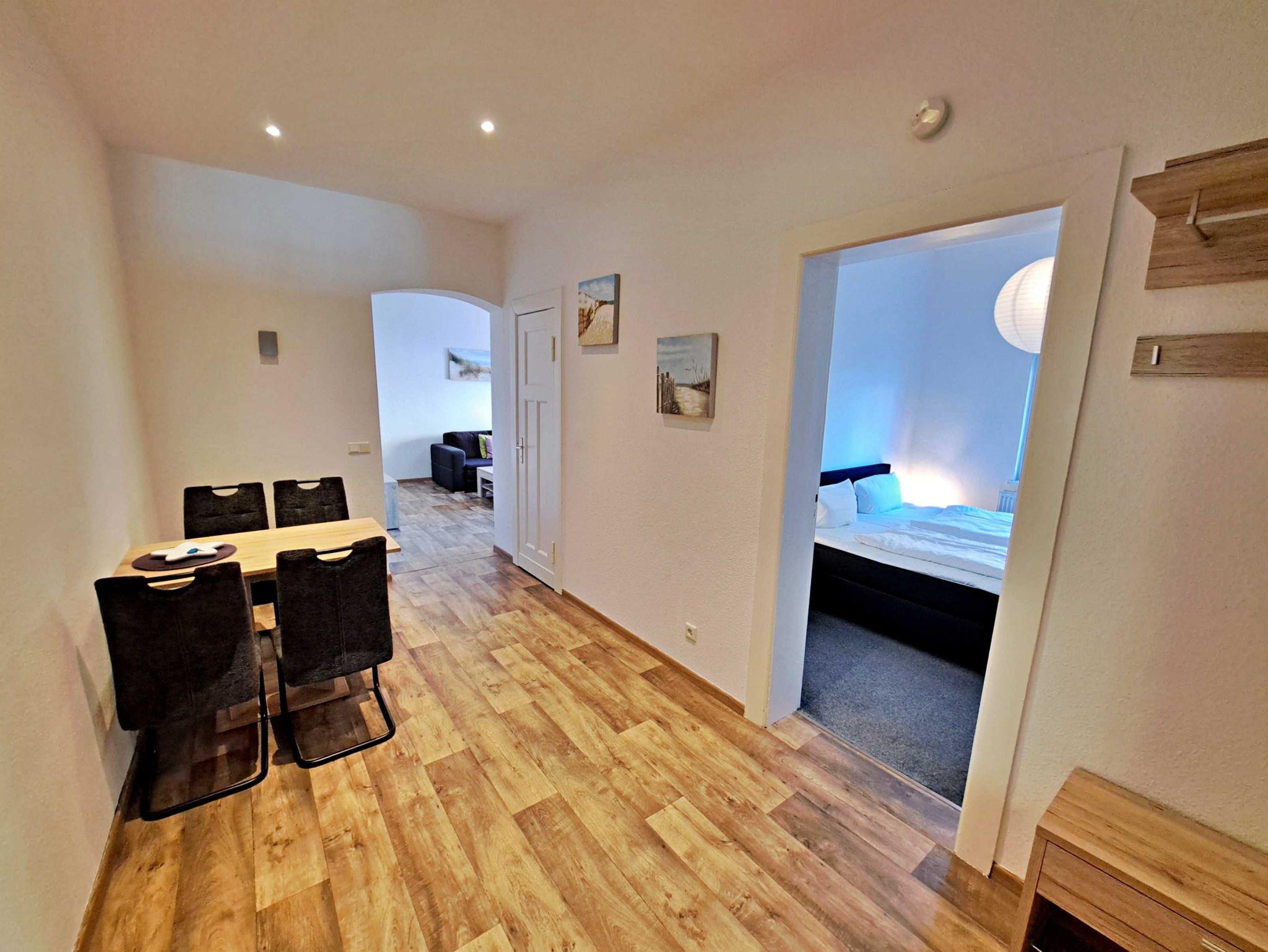 Auf ca. 50 qm erwartet Sie eine gemütliche Feriewohnung im Erdgeschoss der Villa Haus Bella! Diese Ferienwohnung bietet Ihnen alles, was Sie für Ihren erholsamen Urlaub benötigen. Das Wohnzimmer bietet eine komfortable Couchgarnitur, die auch als Schlafmöglichkeit für eine Person dient, sowie einen Flachbild-TV, der zu entspannten Abenden einlädt. Im Schlafzimmer finden Sie ein bequemes Doppelbett und einen begehbaren Kleiderschrank, der ausreichend Stauraum bietet. Die offene Küche ist bestens ausgestattet mit einem Elektro-Herd, Backofen, Kühlschrank, Kaffeemaschine, Toaster und Wasserkocher - alles, was Sie für Ihre kulinarischen Wünsche benötigen. Die gemütliche Essecke mit Tisch und vier bequemen Stühlen befindet sich separat im Flurbereich und lädt zu gemeinsamen Mahlzeiten ein. Das Tageslichtbad bietet Ihnen eine geräumige Dusche und WC für Ihr Wohlbefinden. Ein Stellplatz für Ihren PKW steht auf dem Grundstück zur Verfügung und natürlich genießen Sie in der gesamten Wohnung kostenfreies WLAN.