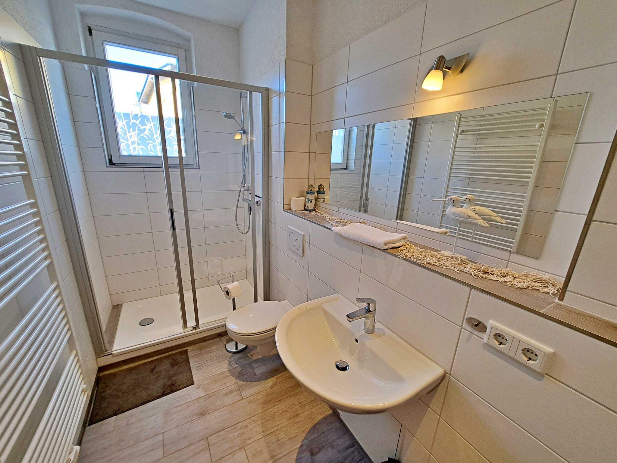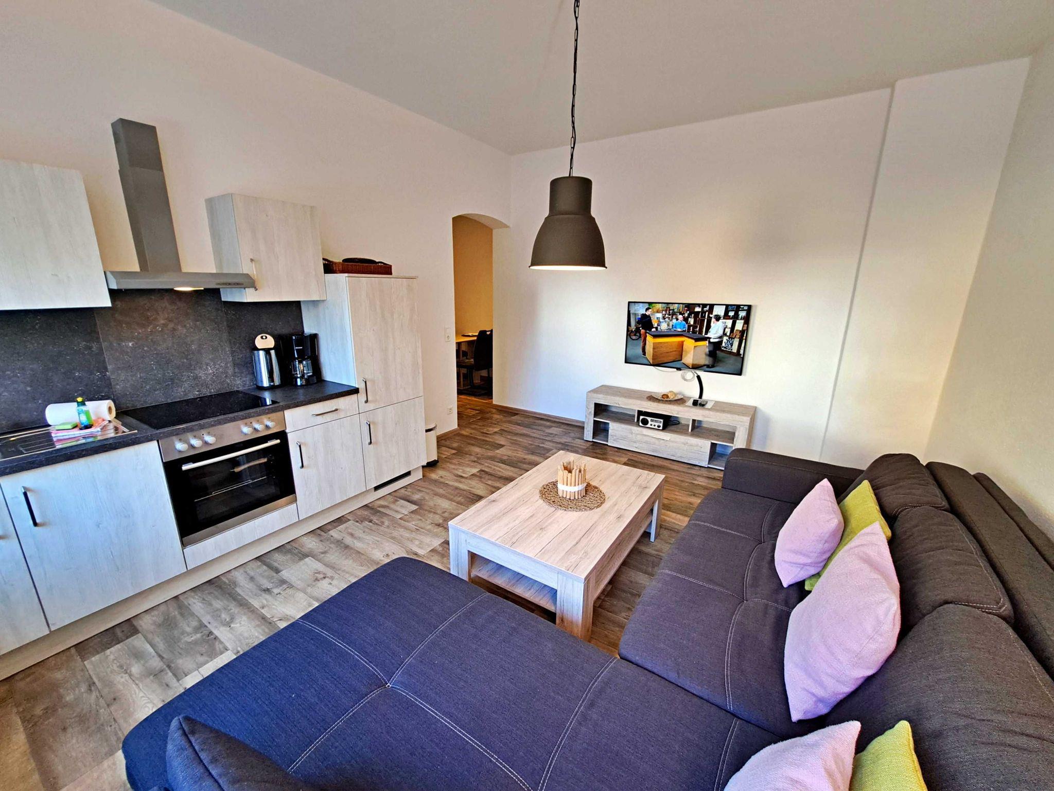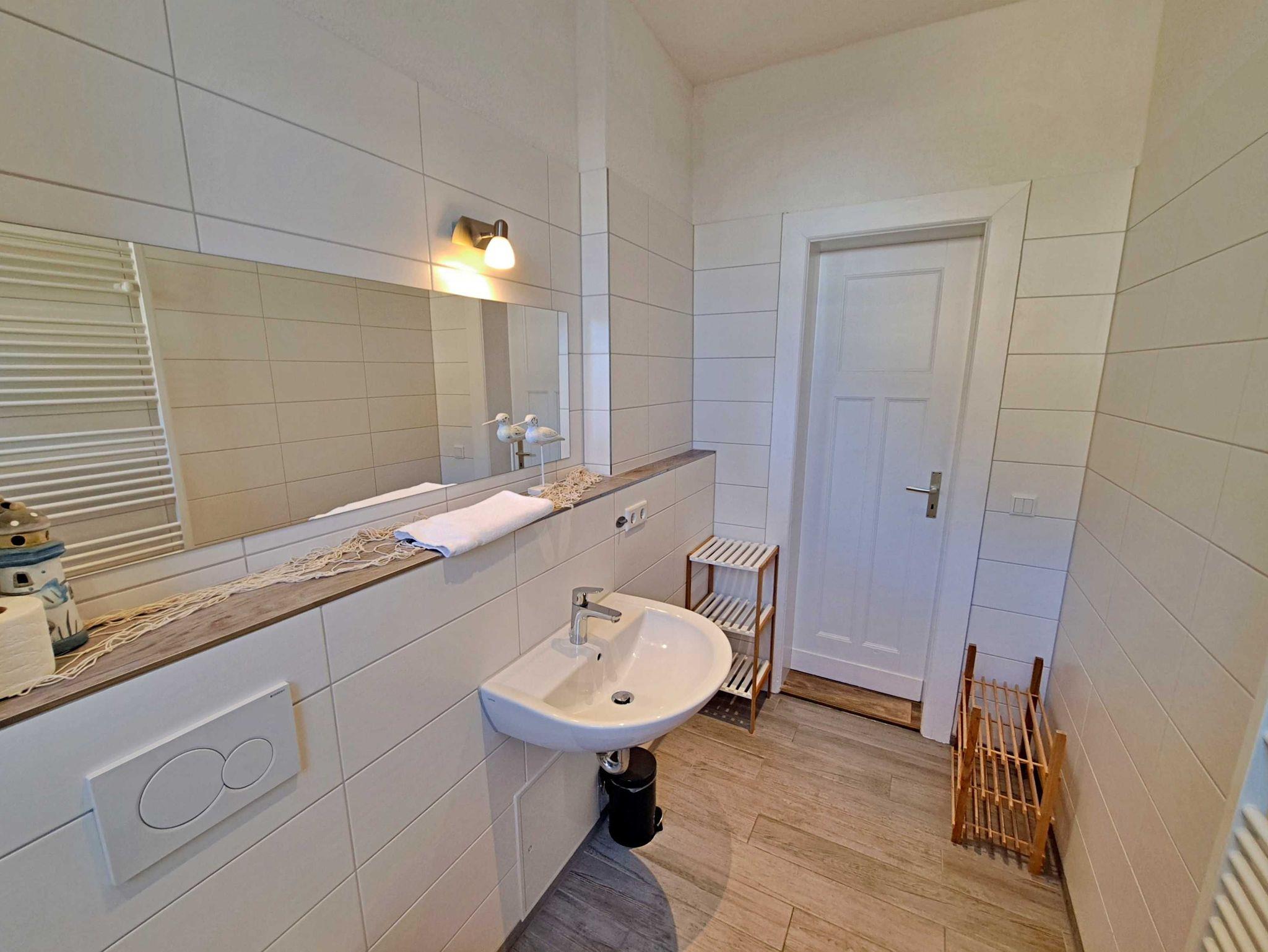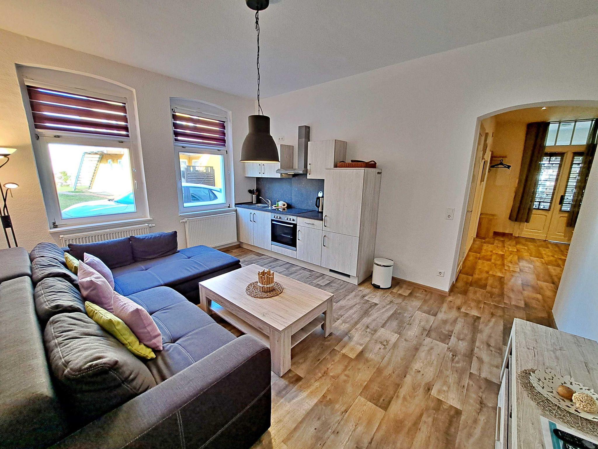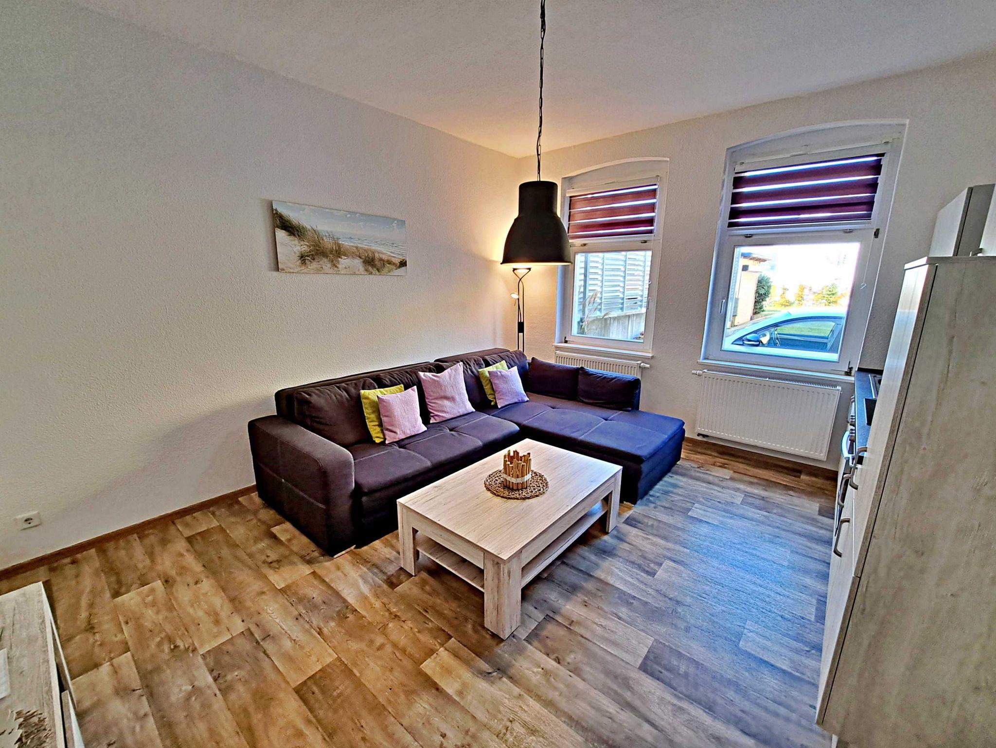 Auf ca. 50 qm erwartet Sie eine gemütliche Feriewohnung im Erdgeschoss der Villa Haus Bella! Diese Ferienwohnung bietet Ihnen alles, was Sie für Ihren erholsamen Urlaub benötigen. Das Wohnzimmer bietet eine komfortable Couchgarnitur, die auch als Schlafmöglichkeit für eine Person dient, sowie einen Flachbild-TV, der zu entspannten Abenden einlädt. Im Schlafzimmer finden Sie ein bequemes Doppelbett und einen begehbaren Kleiderschrank, der ausreichend Stauraum bietet. Die offene Küche ist bestens ausgestattet mit einem Elektro-Herd, Backofen, Kühlschrank, Kaffeemaschine, Toaster und Wasserkocher - alles, was Sie für Ihre kulinarischen Wünsche benötigen. Die gemütliche Essecke mit Tisch und vier bequemen Stühlen befindet sich separat im Flurbereich und lädt zu gemeinsamen Mahlzeiten ein. Das Tageslichtbad bietet Ihnen eine geräumige Dusche und WC für Ihr Wohlbefinden. Ein Stellplatz für Ihren PKW steht auf dem Grundstück zur Verfügung und natürlich genießen Sie in der gesamten Wohnung kostenfreies WLAN.