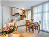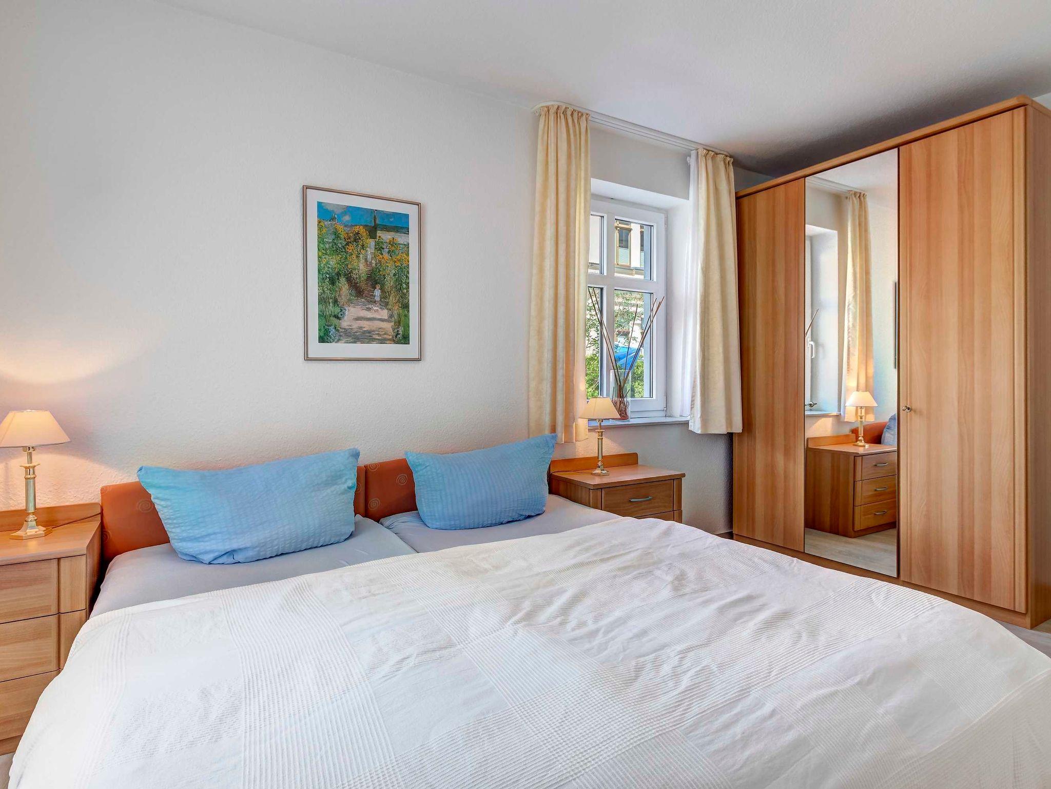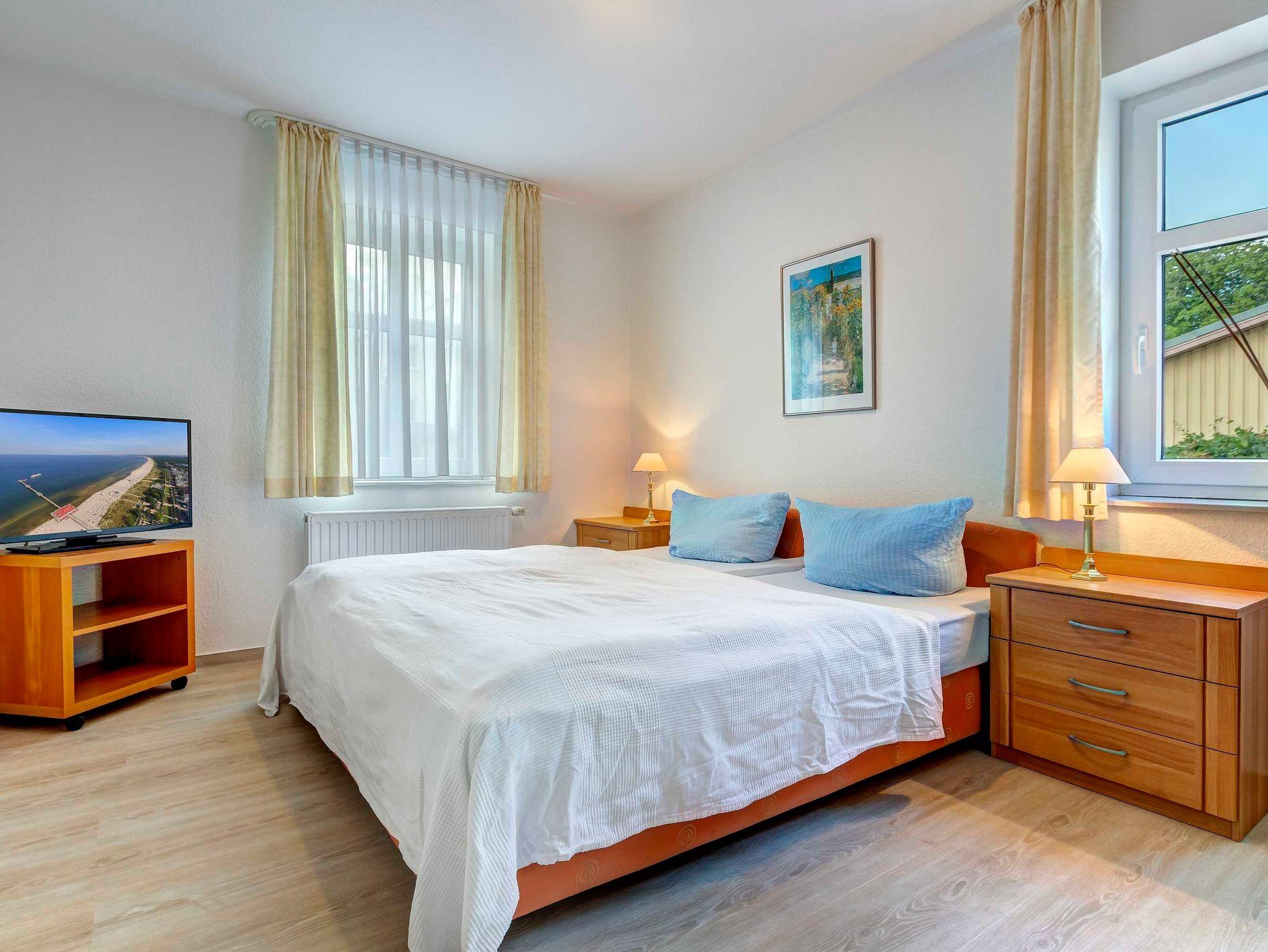 Schönes helles 2-Zimmer-Appartement mit guter Ausstattung. Separates Schlafzimmer (mit Fernseher), Wohnzimmer mit Küchenzeile und Essplatz, Duschbad, Balkon zur Südseite mit Sonne bis abends. Die Wohnung verfügt über einen Pkw-Stellplatz. Von der Villa Aquamarina aus können Sie das Ortszentrum und die bekannte Ahlbecker Seebrücke in ca. 3 Minuten zu Fuß erreichen. Zum Strand sind es 50 m. Die Wohnungen der Villa Aquamarina verfügen alle über passwortgeschütztes WLAN (gerätegebunden, Euro 1,50 pro Tag und pro Gerät).