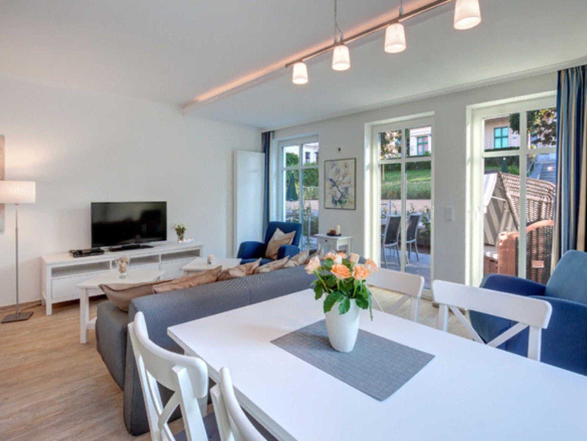 MODERN mit SÜDTERRASSE, FAHRSTUHL, nur ca. 100 m zur STRANDPROMENADE! Komfortabel eingerichtete 3 - Zimmer - Wohnung im EG mit sehr guter Ausstattung! 2 separate Schlafzimmer, 2 Bäder (1 Wannenbad und Fußbodenheizung, 1 Duschbad) , Wohnbereich mit Küchen- und Eßbereich, möblierte Terrasse mit Strandkorb (ca. 15 qm). Die Wohnung verfügt über einen Pkw-Stellplatz in der hauseigenen Tiefgarage. Fahrradabstellfläche ist vorhanden. Vom Haus aus können Sie das Ortszentrum und die bekannte Ahlbecker Seebrücke in ca. 2 Minuten zu Fuß erreichen.