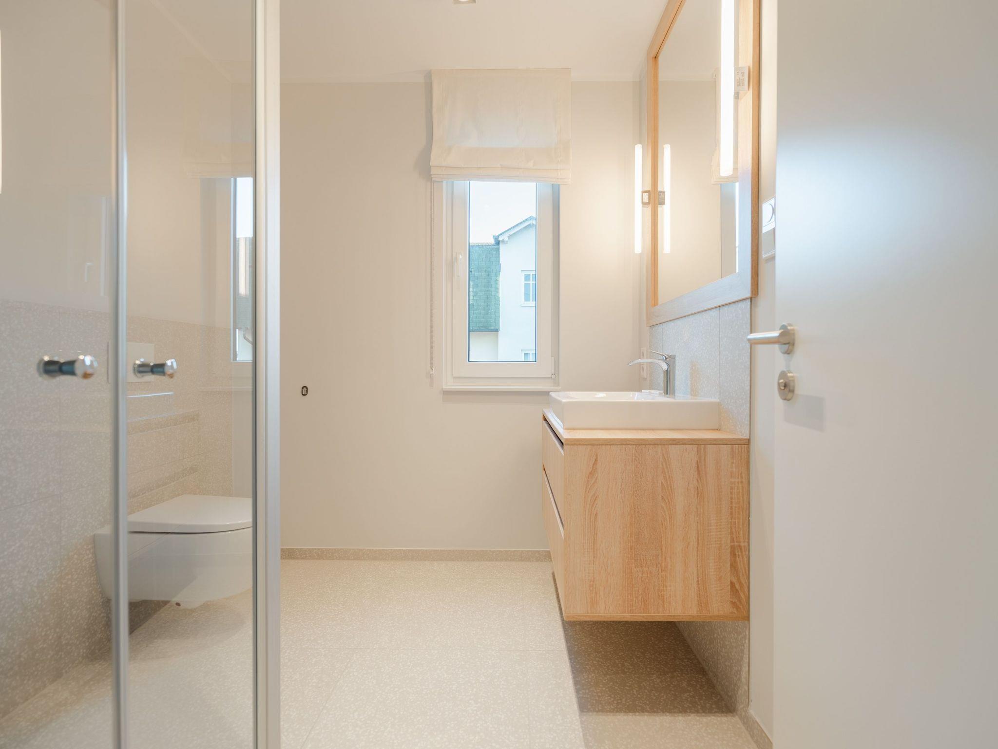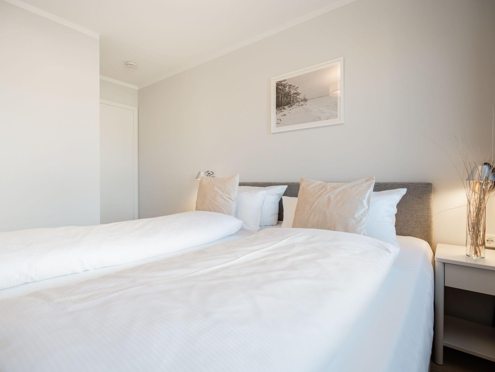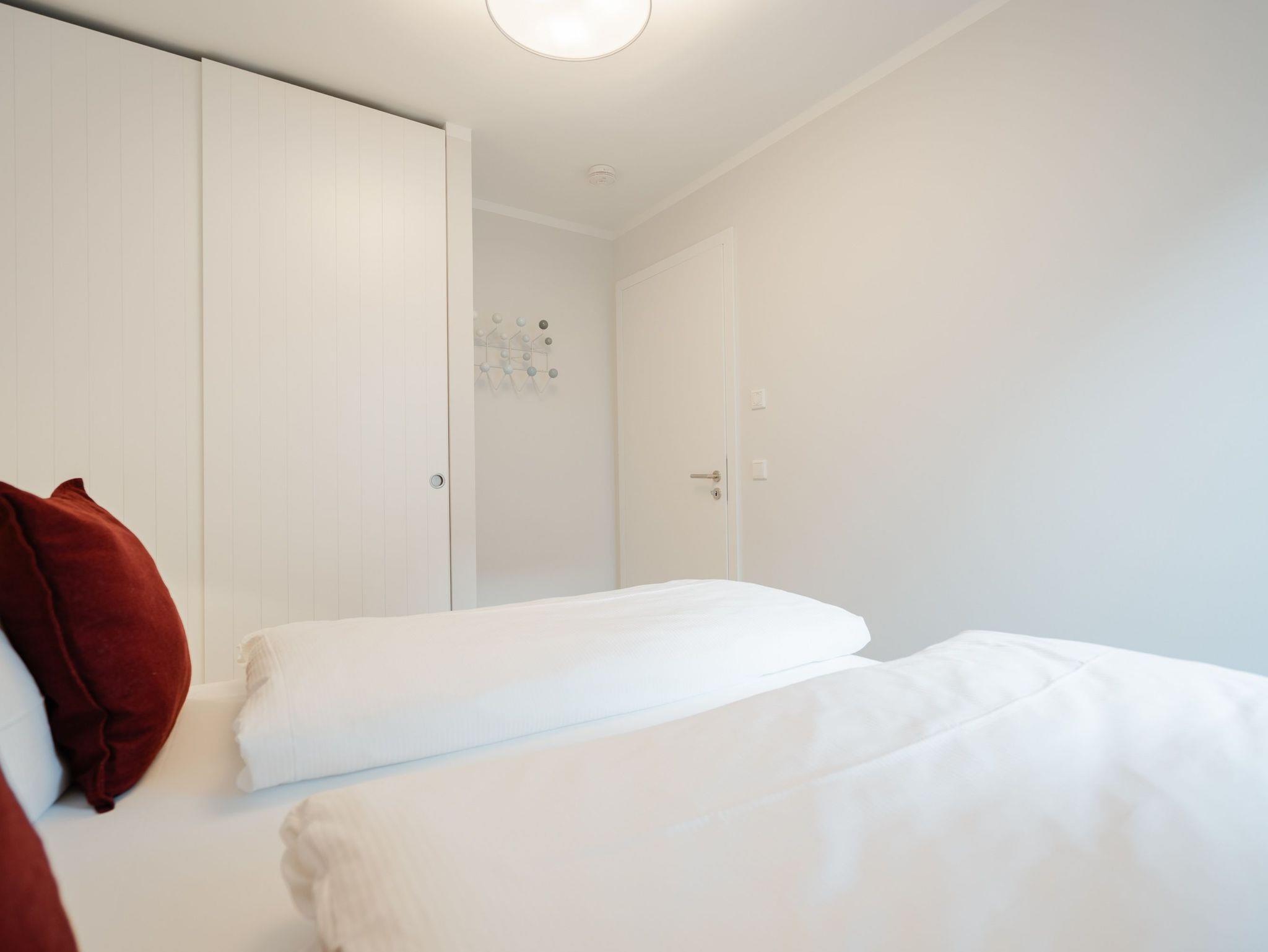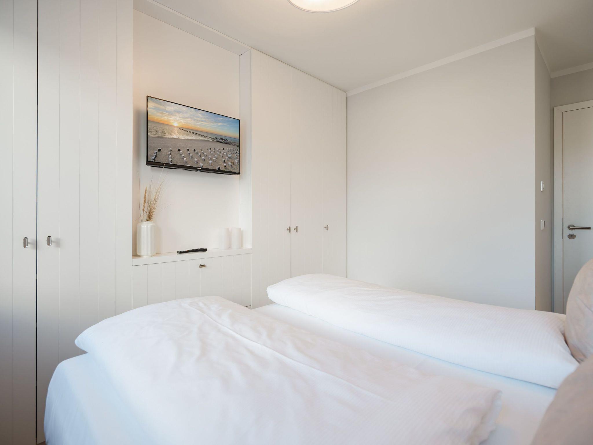 Die 3-Raum-Ferienwohnung Nr. 6 in der Villa Kamadori bietet auf 67 qm ein durchdachtes Raumkonzept für bis zu vier Personen und ein Kleinkind im Kinderreisebett. Der offen gestaltete Wohn- und Essbereich ist hell und einladend. Die moderne Küchenzeile ist vollständig ausgestattet mit Backofen, Induktionskochfeld, Kühlschrank mit Gefrierfach und Geschirrspülmaschine. Der Essplatz bietet bequem Platz für vier Personen. Im Wohnbereich lädt eine gemütliche Sitzgruppe zum Entspannen ein, ergänzt durch einen Flat-TV und einen Gas-Kamin, der per Fernbedienung für angenehme Atmosphäre sorgt. Zwei separate Schlafzimmer sorgen für Ruhe und Komfort. Beide sind mit hochwertigen Boxspring-Doppelbetten ausgestattet. Ein Schlafzimmer verfügt über ein Bettmaß von 1,60 m x 2,00 m, das zweite über ein großzügiges Bett von 1,80 m x 2,00 m sowie einen zusätzlichen Flat-TV. In beiden Räumen stehen Kleiderschränke zur Verfügung. Die Wohnung bietet zwei moderne Bäder mit Dusche, Waschtisch und WC. Ein Bad ist zusätzlich mit einer finnischen Sauna und einer Waschmaschine ausgestattet und macht die Wohnung auch in der kühleren Jahreszeit besonders attraktiv. Der 15 qm große Nord-Ost-Balkon ist möbliert und eignet sich ideal für ein entspanntes Frühstück oder ruhige Stunden an der frischen Luft. Ein fester Stellplatz in der Tiefgarage gehört ebenfalls zur Wohnung. Die maximale Einfahrtshöhe beträgt 1,85 m. Eine komfortable Ferienwohnung mit klarer Aufteilung, hochwertiger Ausstattung und einem Plus an Privatsphäre und Erholung.