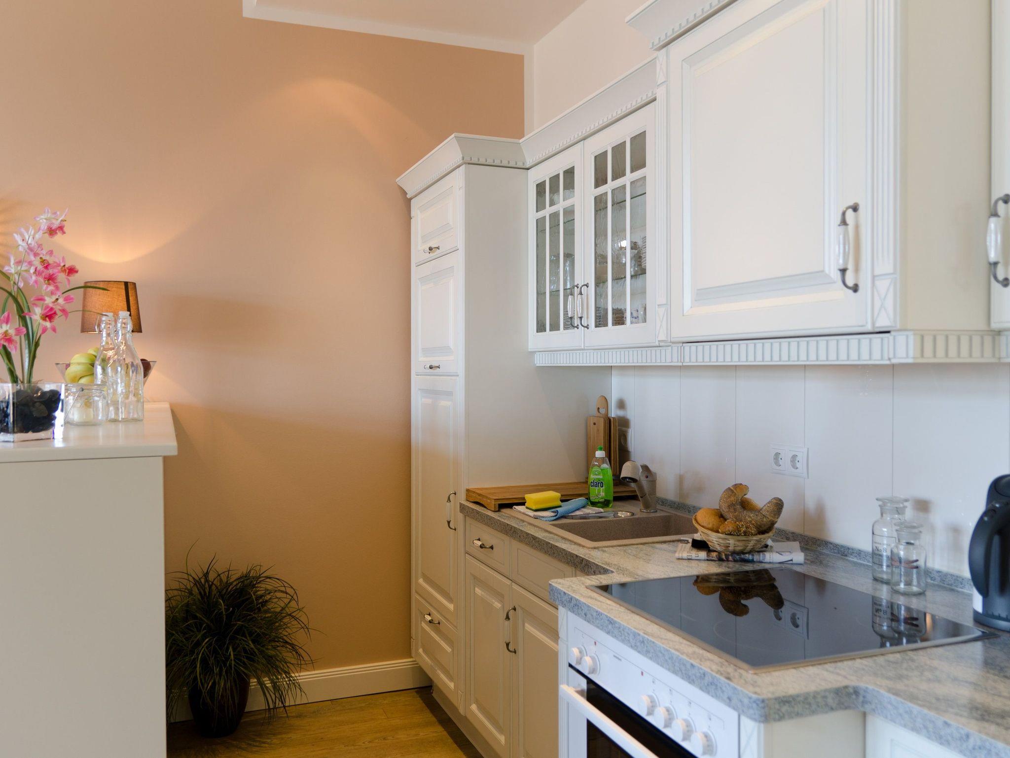 Die integrierte Küche ist komplett ausgestattet: dank Backofen, Kühlschrank mit Gefrierfach, Geschirrspüler, Mikrowelle, Wasserkocher, Toaster, Kaffeemaschine. Vom Schlafzimmer mit bequemen und neuen Boxspringbett (180 x 200cm / zwei getrennte Matratzen) und Flat TV erreichen Sie den Südwestbalkon, der an lauen Sommerabenden zum Relaxen einlädt.