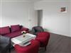 • Wohnzimmer mit Schlaf-Sofa (für 2 Aufbettungen nutzbar), Tisch und 4 Sessel