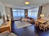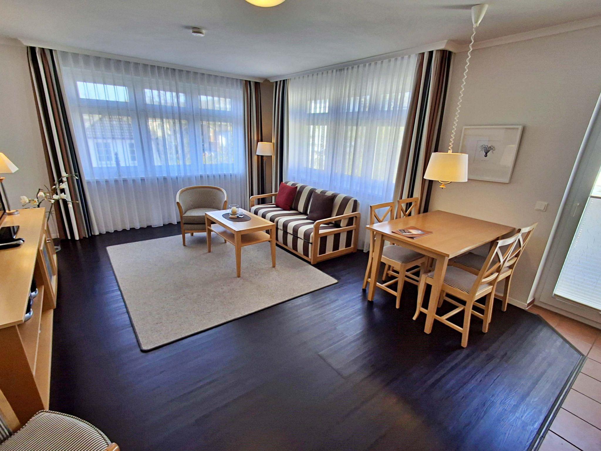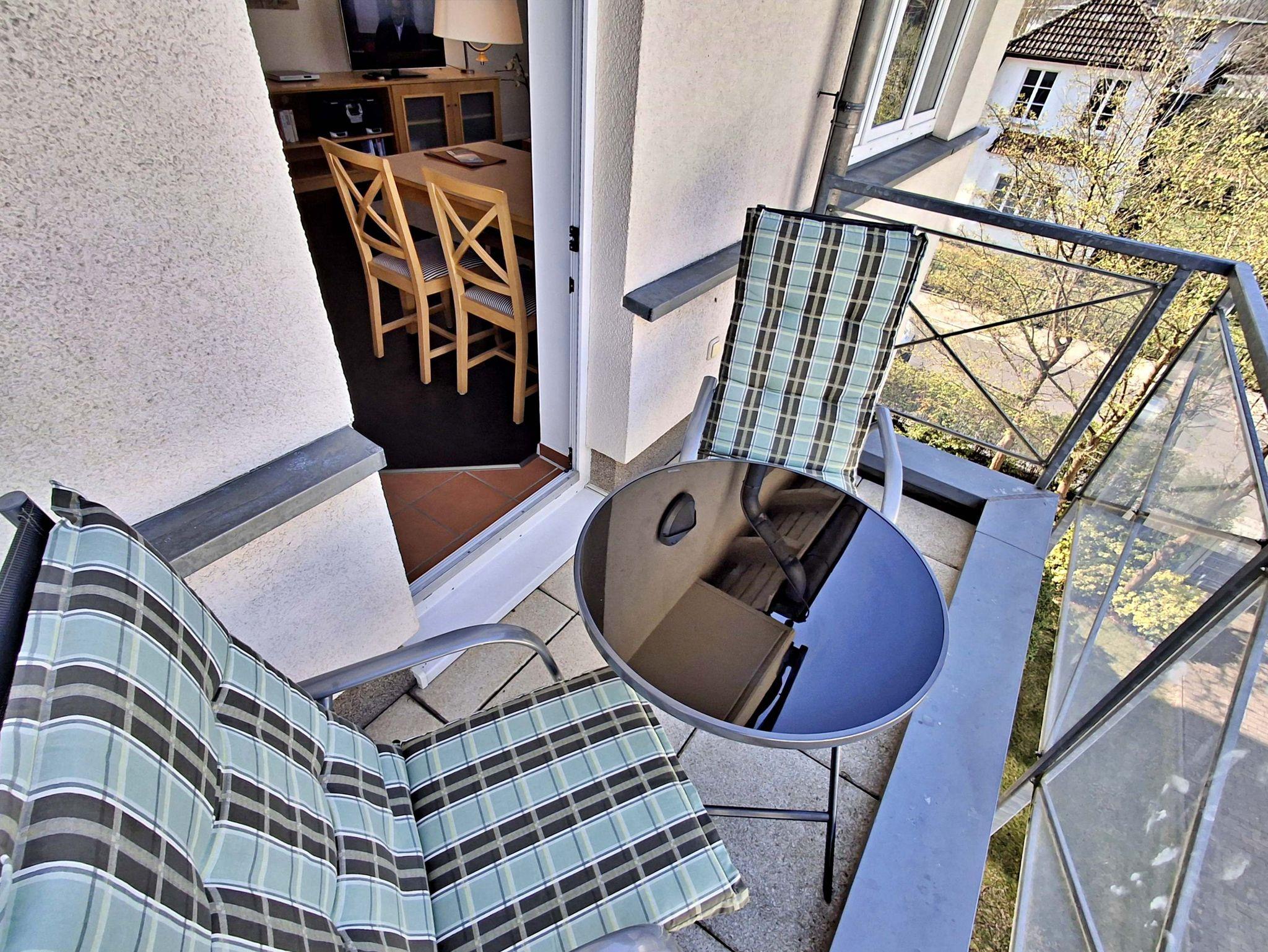 Die 54 qm große 2-Raum-Ferienwohnung befindet sich im 2. Obergeschoss (Westlage) der Appartementanlage und ist für 2 Erwachsene und 1 Kleinkind bis 1 Jahr ausgestattet. Die Wohnung verfügt über ein großes Wohnzimmer mit bequemer Couch, Sessel und eine Essecke mit 4 Stühlen. Für die Unterhaltung sorgen ein Flachbild-TV und eine Stereo-Anlage. Die vollständig ausgestattete Küchenzeile mit Ceranherd, Backofen, Mikrowelle, Kühlschrank mit Gefrierfach und Geschirrspülmaschine lässt keine Wünsche offen. Im Schlafzimmer befindet sich ein gemütliches Doppelbett. Das Tageslicht-Bad ist mit Dusche/WC, Haarfön sowie Kosmetikspiegel ausgestattet. Ein Balkon lädt zum Sitzen und Verweilen ein. Ein Kinderbett mit Wäsche sowie ein Hochstuhl können auf Anfrage gegen eine Gebühr von einmalig 50 € vom Verwalter zur Verfügung gestellt werden.