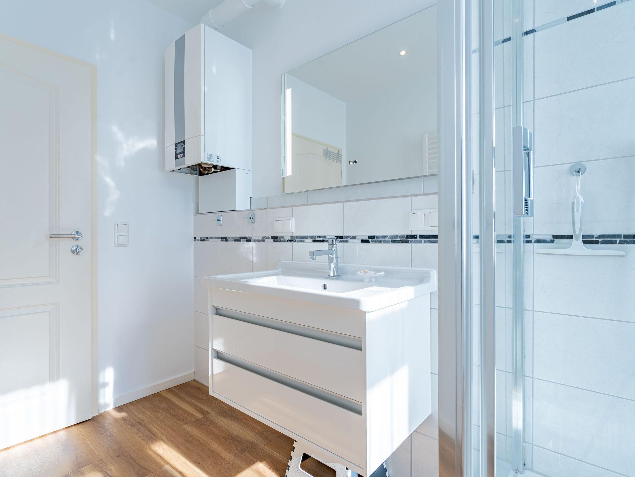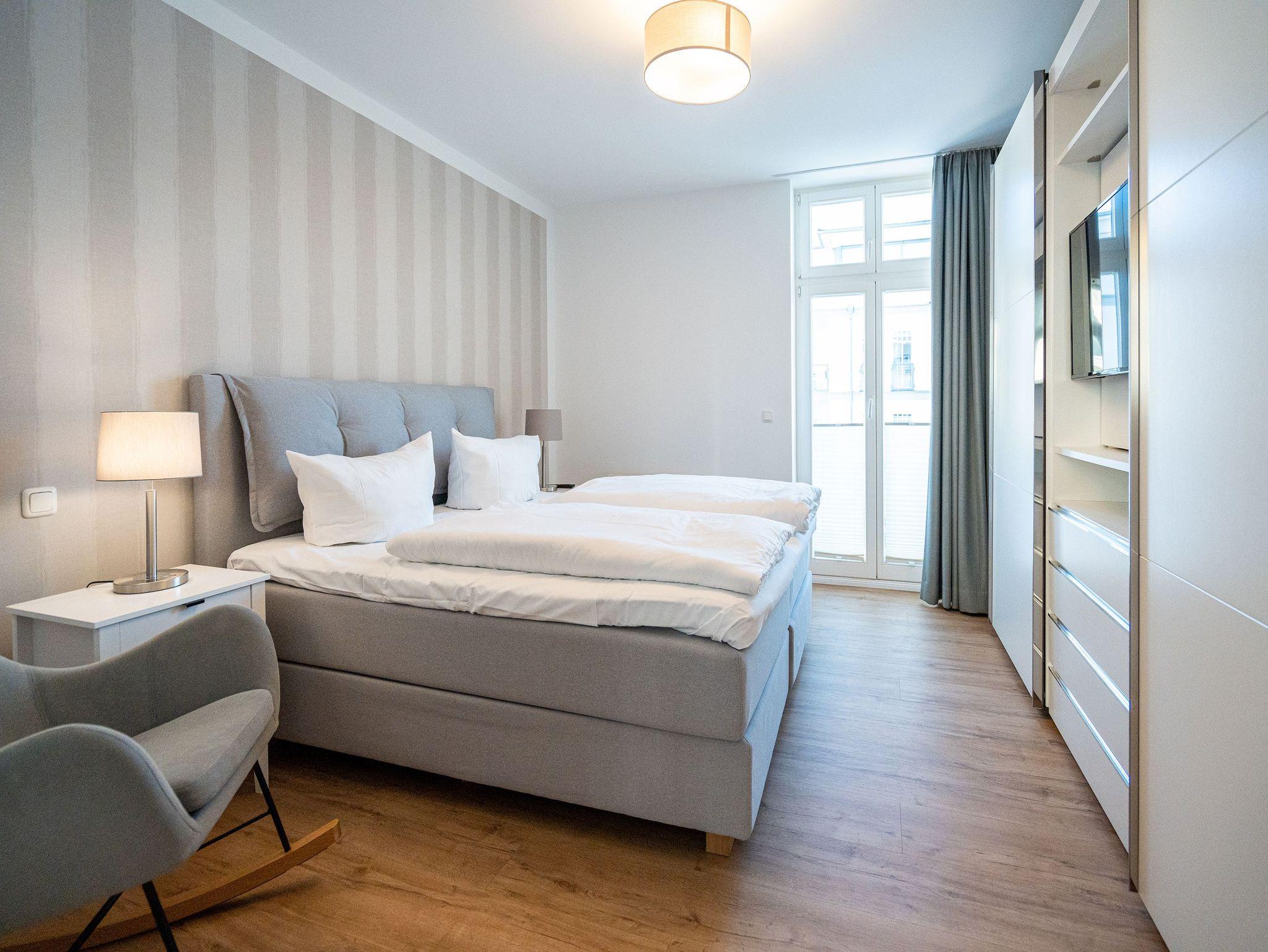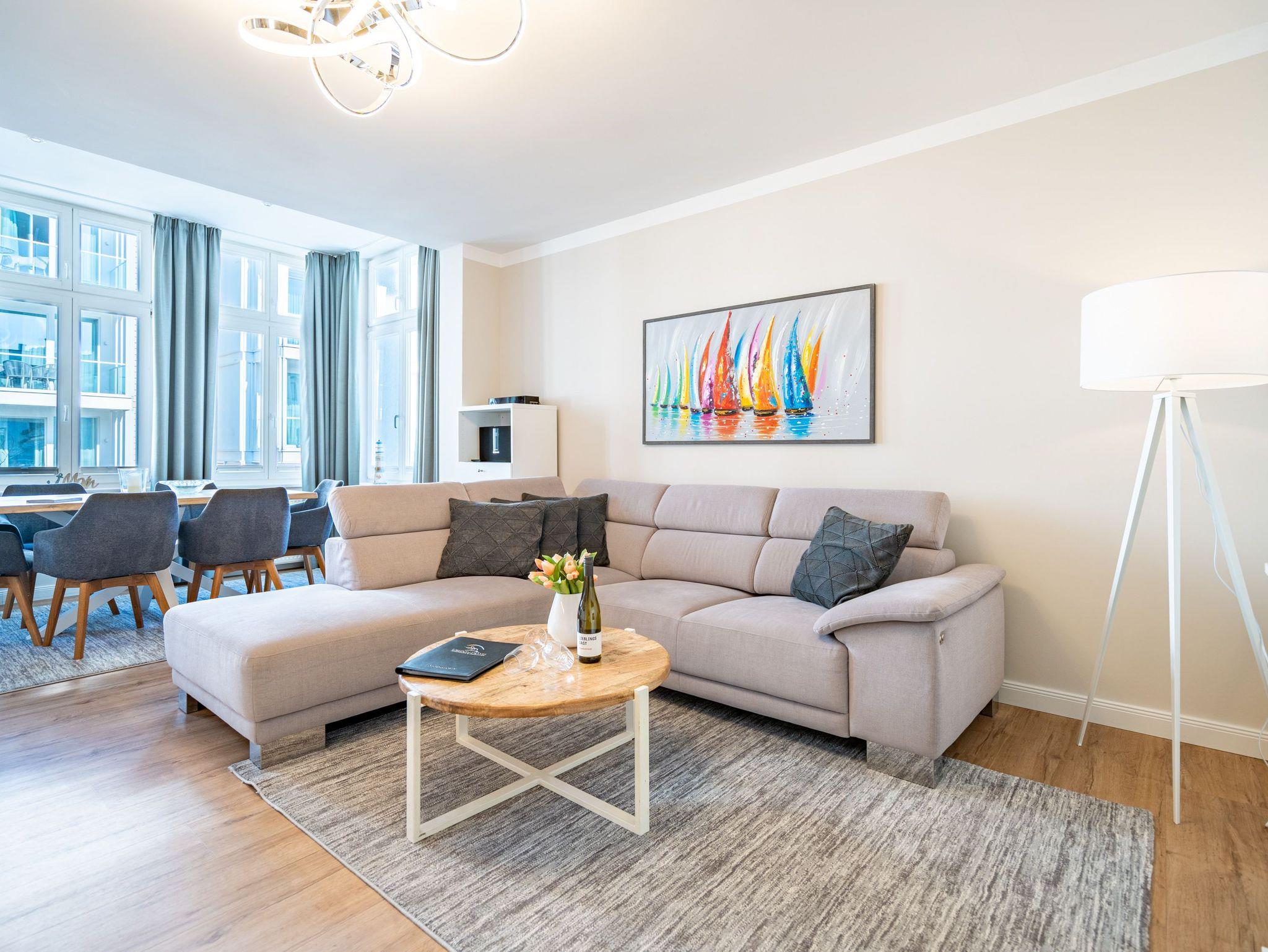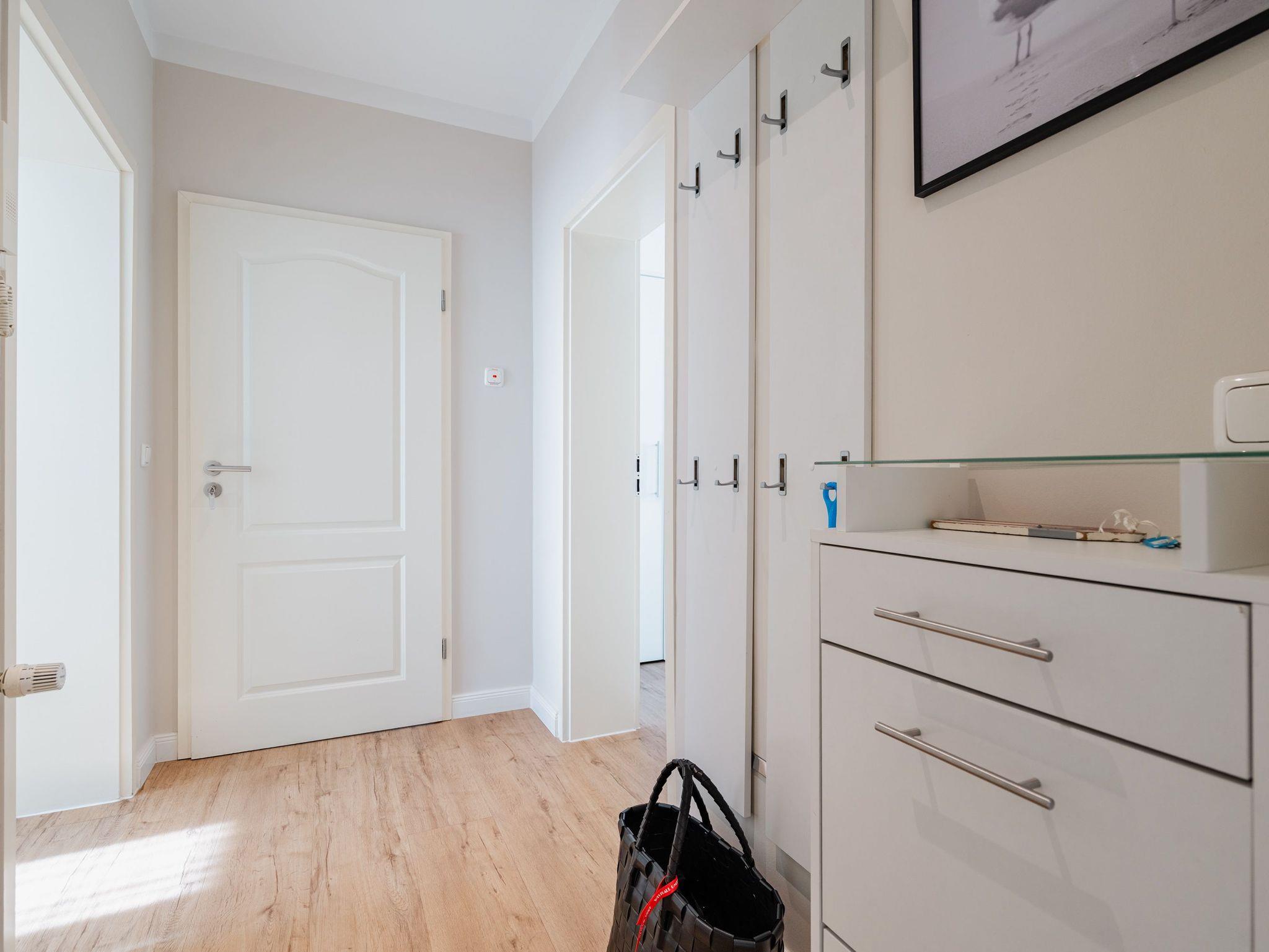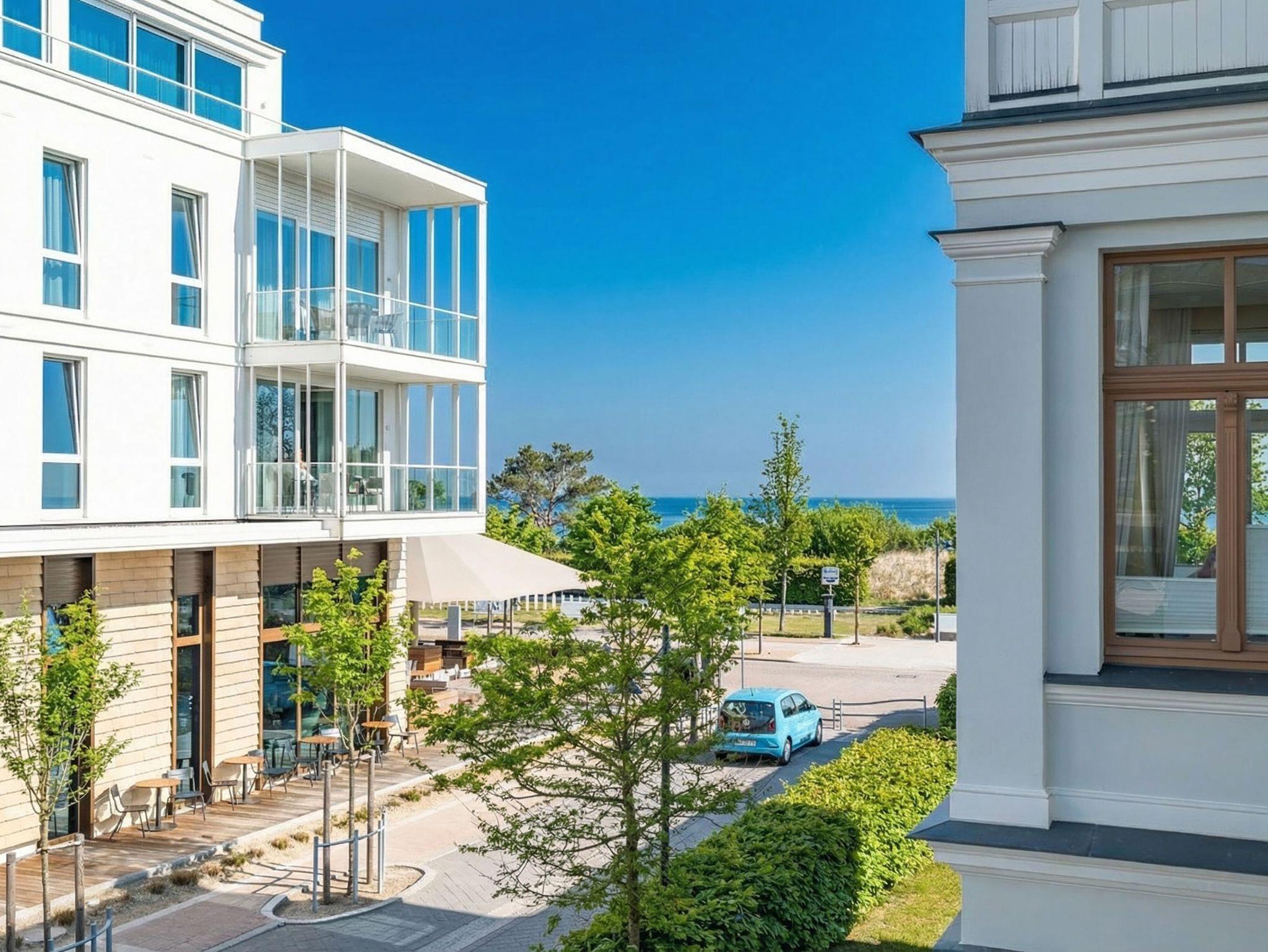Herzlich Willkommen im Appartement 5 in der schönen Ostseevilla Erika. 2020 vollständig modernisiert und neu gestaltet, hält das geräumige 76qm große Feriendomizil im 1. OG Erholung und Wohlfühlatmosphäre für bis zu 5 Personen bereit. Ein maritimes Flair durchzieht den großzügigen Wohn-Essbereich. Die Usedomer Sonne flutet die angrenzende Veranda, die Platz für bis zu 6 Personen bietet. Genießen Sie von hier aus den seitlichen Blick auf das Meer und haben Sie das bunte Treiben der Strandpromenade sowie die Ostseewellen fest im Blick. Die komplett ausgestattete Küche ist in den Wohnbereich integriert. Neben Backofen, Ceranfeld, Spülmaschine, Mikrowelle, Kühlschrank mit Gefrierfach und Kleinküchengeräten dürfen sich Kaffeeliebhaber neben einer klassischen Kaffeemaschine auf eine zusätzliche Nespresso-Kapselmaschine freuen. Sollte die Küche doch einmal kalt bleiben, befinden sich in der nahe gelegenen Seestraße zahlreiche Restaurants und Einkaufsmöglichkeiten für einen ausgiebigen Shopping-Bummel. Die gemütliche Sitzlandschaft (elektrisch) im Wohnbereich bietet Platz für eine zusätzliche Aufbettung. Ein Elektro-Kamin sowie der 49-Zoll Flat-TV „The Frame“ und eine Bose-Soundanlage runden Ihre Urlaubsabende ab. Bei richtiger Windrichtung und geöffneten Fenstern sollte das Rauschen des Meeres ebenfalls bis in das Appartement 5 gelangen. Auf einen erholsamen Schlaf müssen Sie auch in Ihrem Urlaub nicht verzichten, da beide Schlafzimmer mit bequemen Boxspringbetten (1,80m x 2,00m) und Flat-TVs ausgestattet sind. Ein kleiner Balkon (5,4qm) mit östlicher Ausrichtung befindet sich ebenfalls an einem der Schlafräume. Die Morgensonne sowie ein Tisch mit vier Stühlen verspricht einen guten Start in den Tag. Ein absolutes Highlight ist die Finnische Sauna für bis zu 4 Personen, die ebenfalls von einem der Schlafzimmer zu betreten ist und an kühlen Tagen wohlige Wärme versprüht. Freuen Sie sich darüber hinaus auf eine kleine Fitnessecke mit Yogamatte, Faszienrolle und Hanteln. Das Badezimmer mit Regendusche, Waschtisch und WC wurde ebenfalls rundum erneuert und bietet durch den großzügigen Schnitt ausreichend Platz für Sie und Ihre Urlaubsbegleitung. Ein Stellplatz in der hauseigenen Tiefgarage ist mit der Nr. 14 gekennzeichnet. Für Ihren Fahrradurlaub gibt es einen Fahrradständer am Haus sowie einen Gemeinschaftsraum. Ihre Vierbeiner sind in diesem Appartement herzlich willkommen. Bei Ihrer Anreise sind die Betten bereits bezogen und Handtücher liegen für Sie bereit. Kostenfreies WLAN rundet Ihren Usedomurlaub ab.