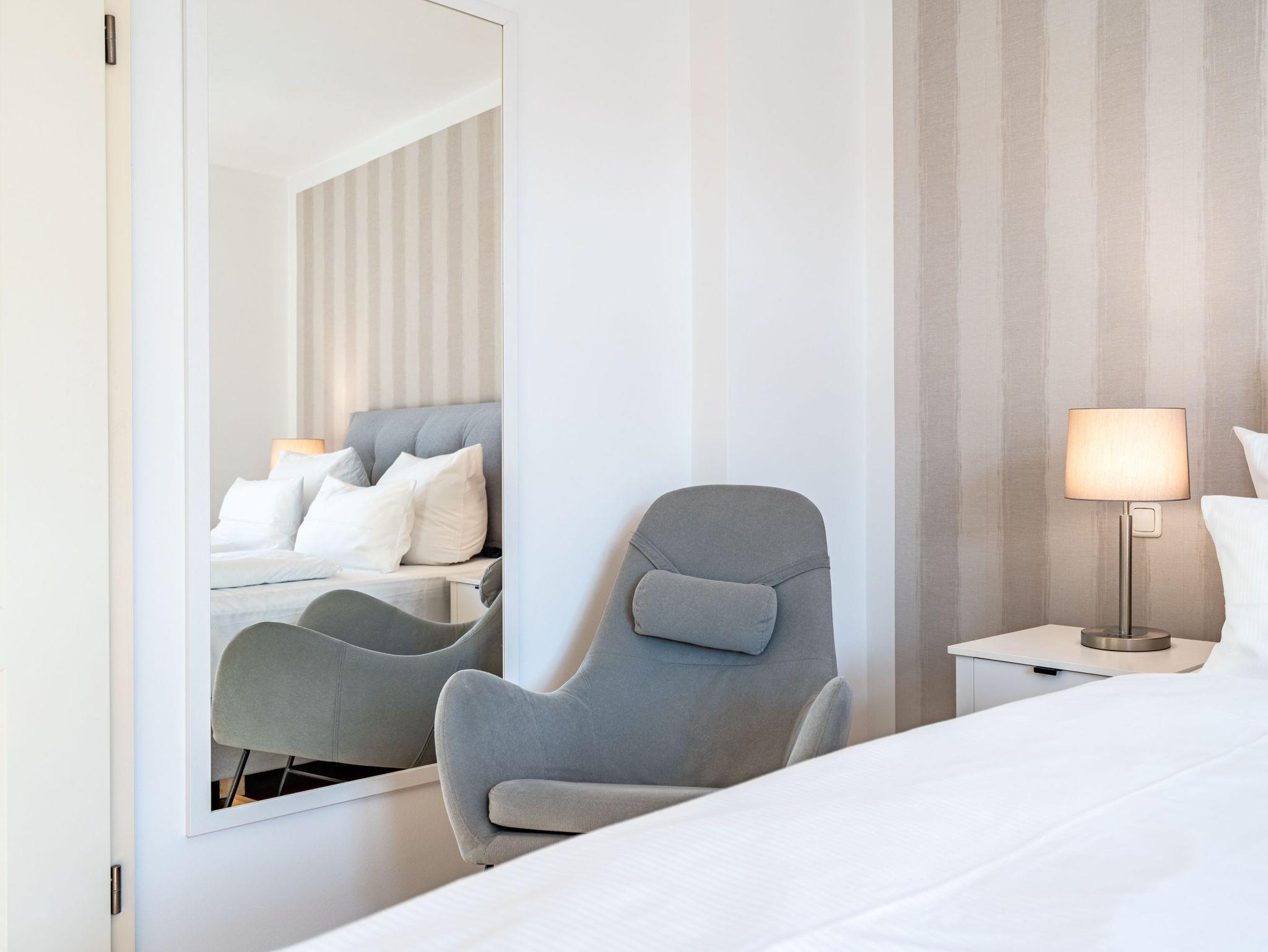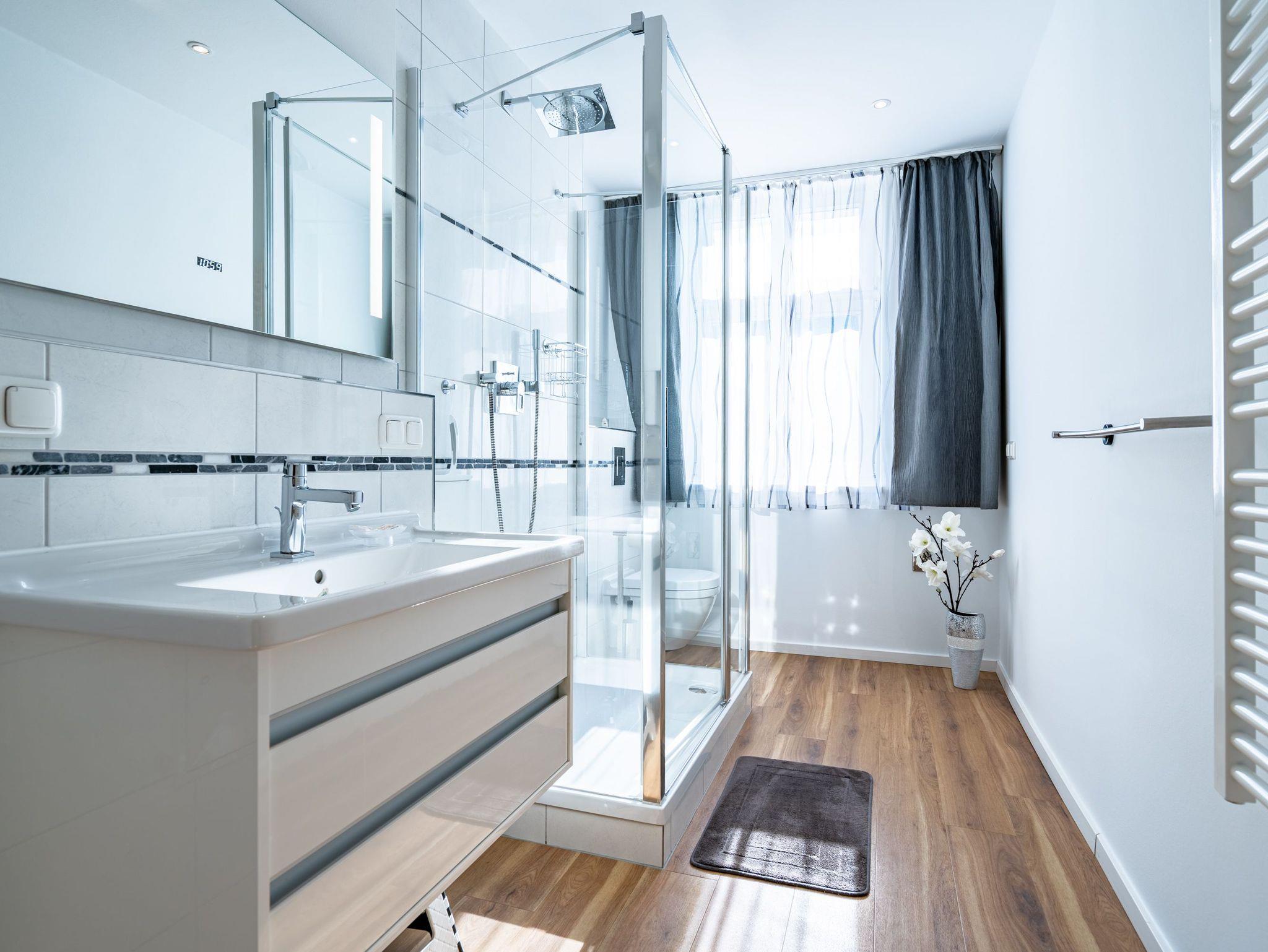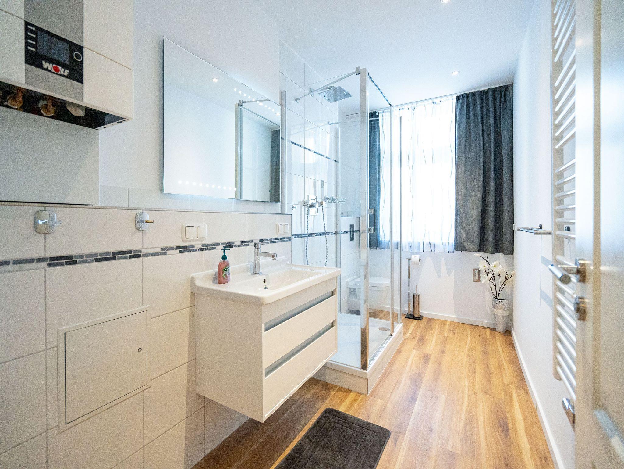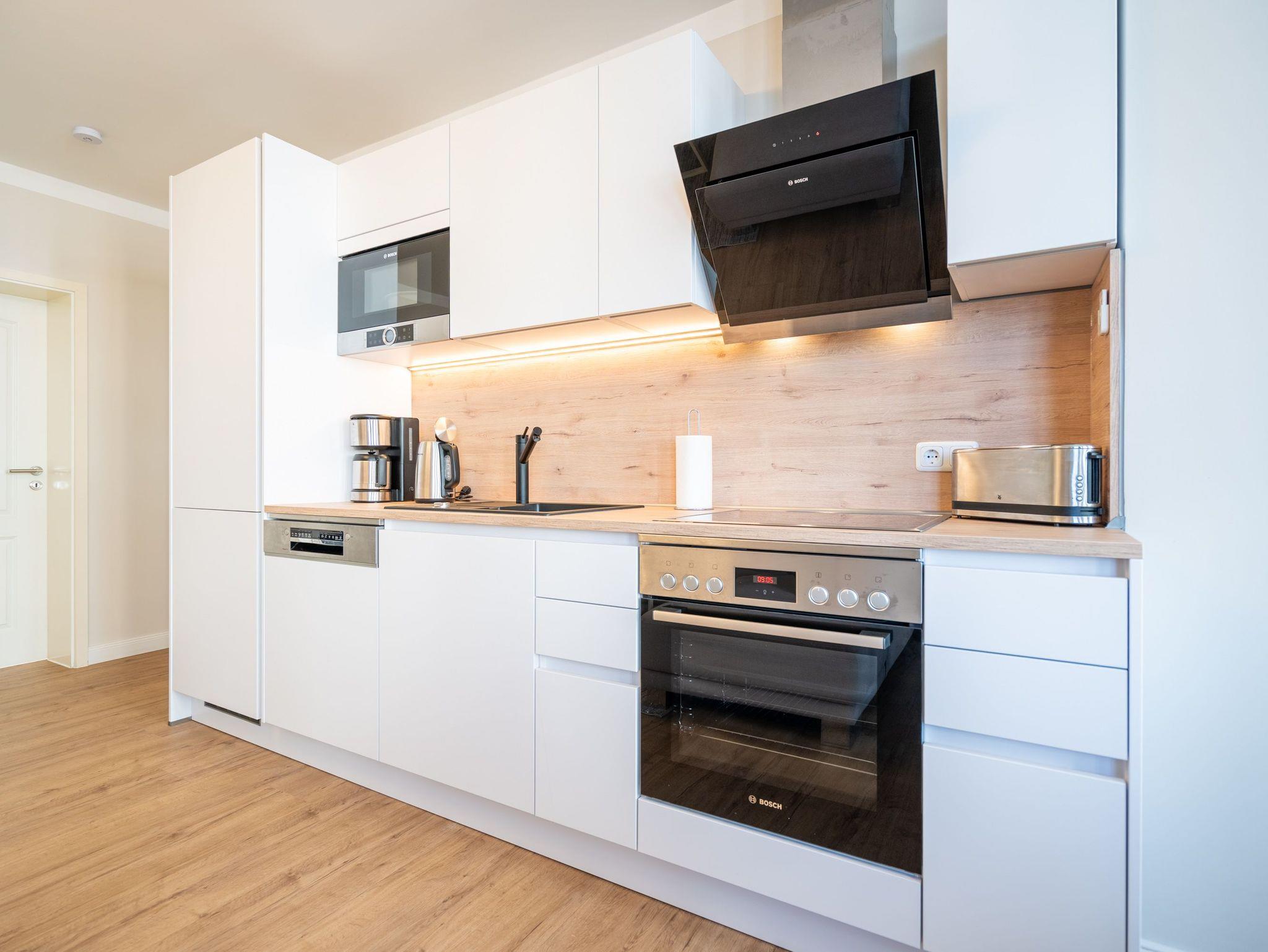 Herzlich Willkommen im Appartement 5 in der schönen Ostseevilla Erika. 2020 vollständig modernisiert und neu gestaltet, hält das geräumige 76qm große Feriendomizil im 1. OG Erholung und Wohlfühlatmosphäre für bis zu 5 Personen bereit. Ein maritimes Flair durchzieht den großzügigen Wohn-Essbereich. Die Usedomer Sonne flutet die angrenzende Veranda, die Platz für bis zu 6 Personen bietet. Genießen Sie von hier aus den seitlichen Blick auf das Meer und haben Sie das bunte Treiben der Strandpromenade sowie die Ostseewellen fest im Blick. Die komplett ausgestattete Küche ist in den Wohnbereich integriert. Neben Backofen, Ceranfeld, Spülmaschine, Mikrowelle, Kühlschrank mit Gefrierfach und Kleinküchengeräten dürfen sich Kaffeeliebhaber neben einer klassischen Kaffeemaschine auf eine zusätzliche Nespresso-Kapselmaschine freuen. Sollte die Küche doch einmal kalt bleiben, befinden sich in der nahe gelegenen Seestraße zahlreiche Restaurants und Einkaufsmöglichkeiten für einen ausgiebigen Shopping-Bummel. Die gemütliche Sitzlandschaft (elektrisch) im Wohnbereich bietet Platz für eine zusätzliche Aufbettung. Ein Elektro-Kamin sowie der 49-Zoll Flat-TV „The Frame“ und eine Bose-Soundanlage runden Ihre Urlaubsabende ab. Bei richtiger Windrichtung und geöffneten Fenstern sollte das Rauschen des Meeres ebenfalls bis in das Appartement 5 gelangen. Auf einen erholsamen Schlaf müssen Sie auch in Ihrem Urlaub nicht verzichten, da beide Schlafzimmer mit bequemen Boxspringbetten (1,80m x 2,00m) und Flat-TVs ausgestattet sind. Ein kleiner Balkon (5,4qm) mit östlicher Ausrichtung befindet sich ebenfalls an einem der Schlafräume. Die Morgensonne sowie ein Tisch mit vier Stühlen verspricht einen guten Start in den Tag. Ein absolutes Highlight ist die Finnische Sauna für bis zu 4 Personen, die ebenfalls von einem der Schlafzimmer zu betreten ist und an kühlen Tagen wohlige Wärme versprüht. Freuen Sie sich darüber hinaus auf eine kleine Fitnessecke mit Yogamatte, Faszienrolle und Hanteln. Das Badezimmer mit Regendusche, Waschtisch und WC wurde ebenfalls rundum erneuert und bietet durch den großzügigen Schnitt ausreichend Platz für Sie und Ihre Urlaubsbegleitung. Ein Stellplatz in der hauseigenen Tiefgarage ist mit der Nr. 14 gekennzeichnet. Für Ihren Fahrradurlaub gibt es einen Fahrradständer am Haus sowie einen Gemeinschaftsraum. Ihre Vierbeiner sind in diesem Appartement herzlich willkommen. Bei Ihrer Anreise sind die Betten bereits bezogen und Handtücher liegen für Sie bereit. Kostenfreies WLAN rundet Ihren Usedomurlaub ab.