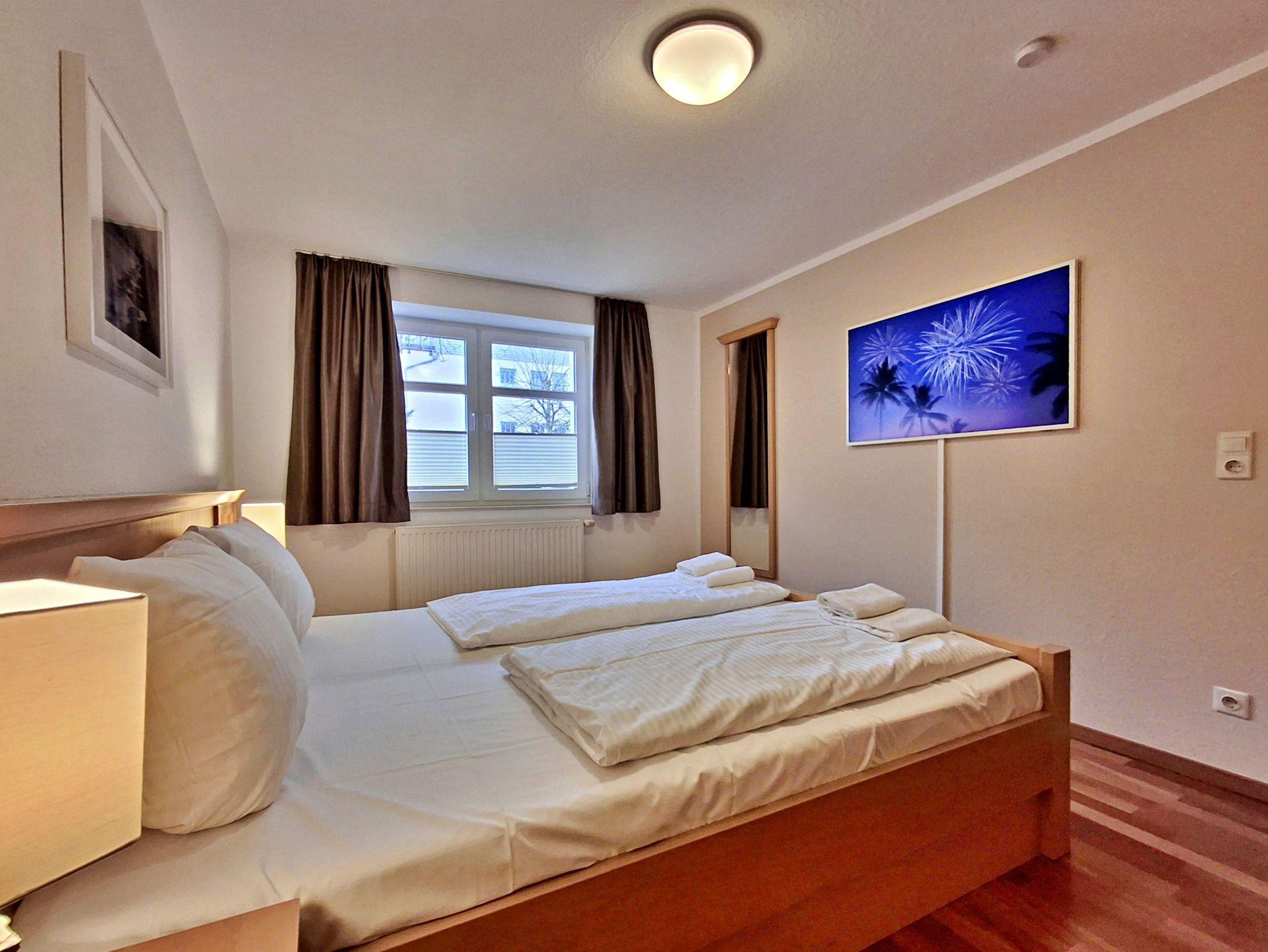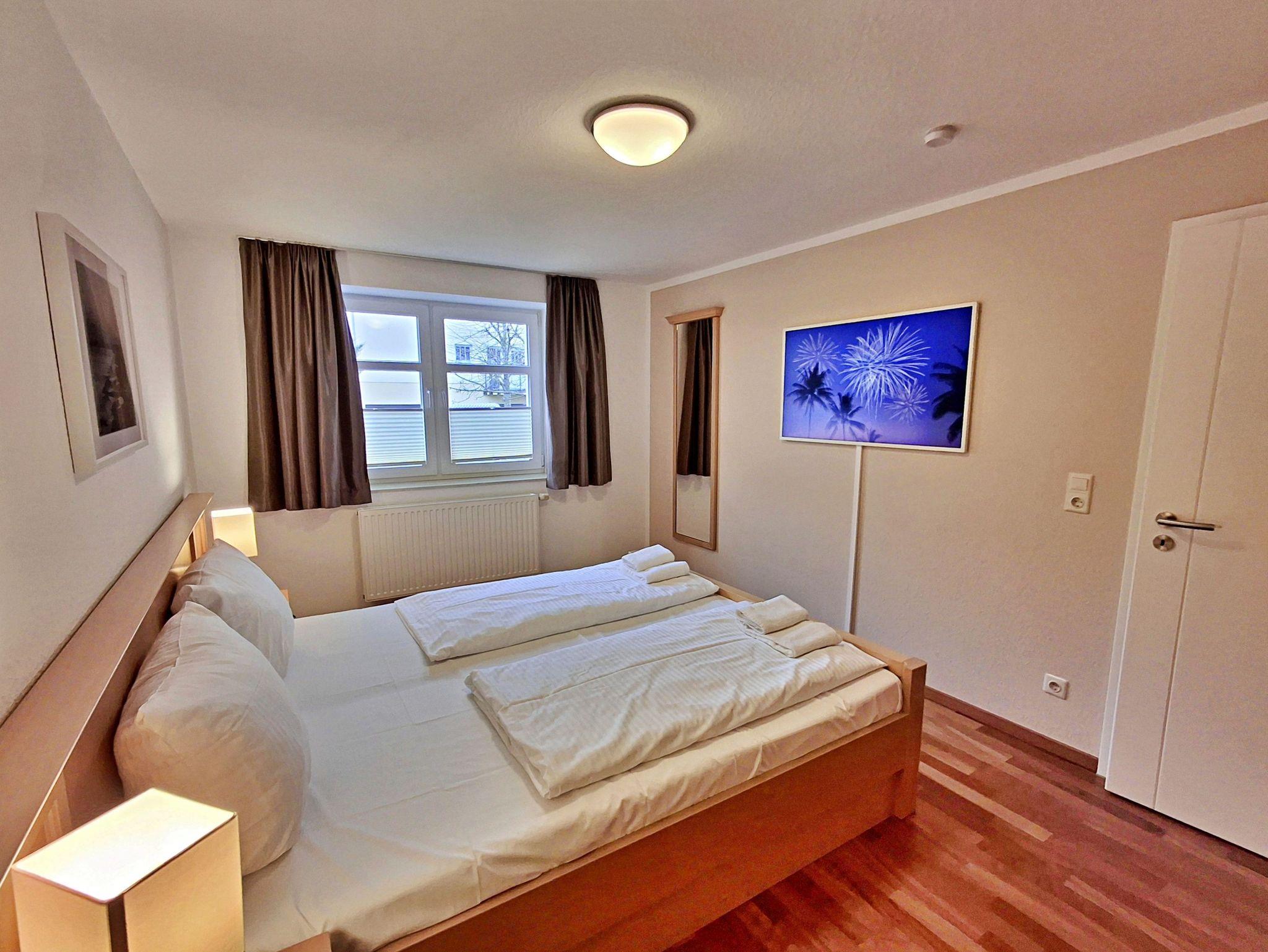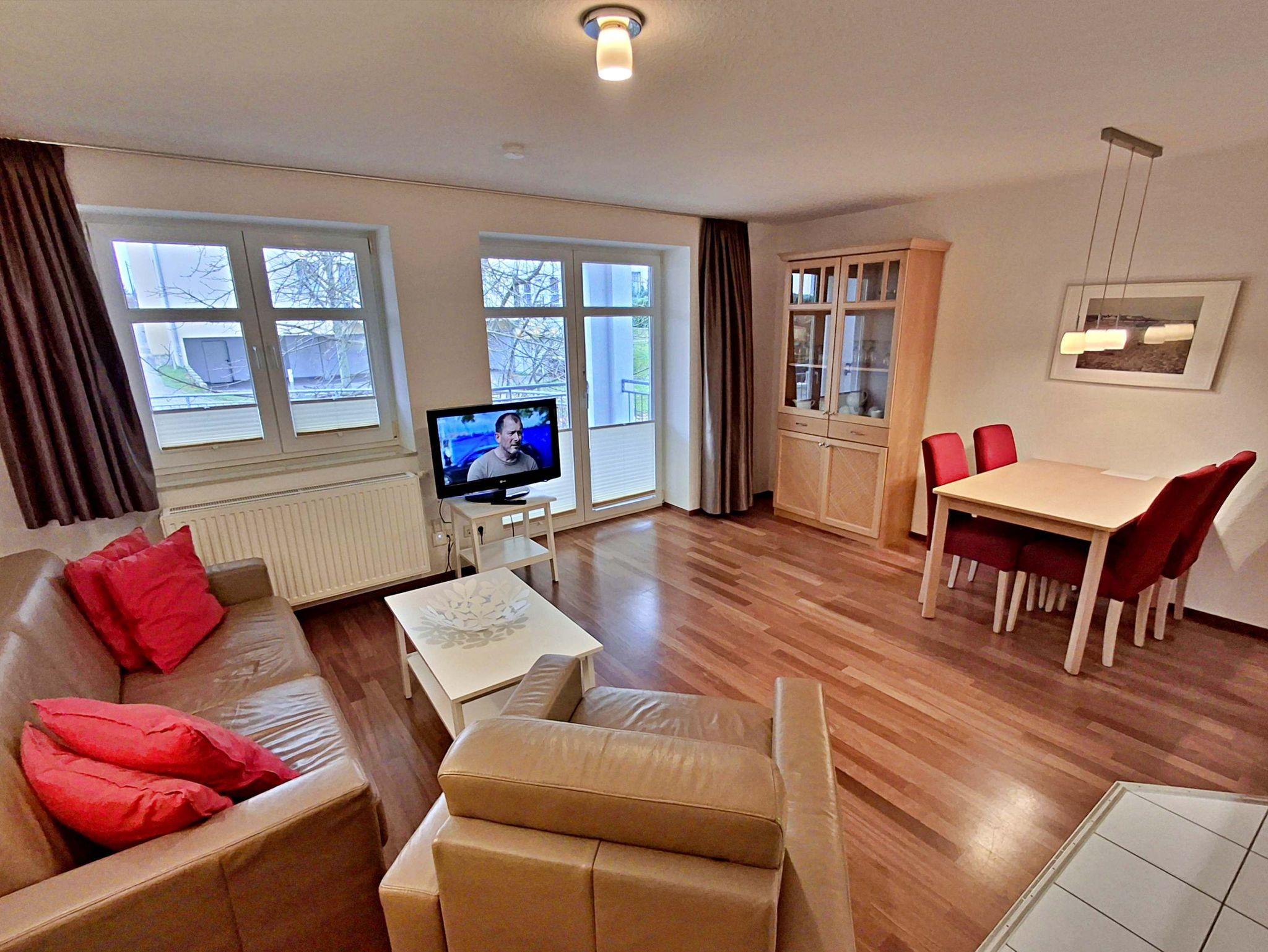 Die gemütliche 2-Zimmer-Wohnung Austernfischer im 1. Obergeschoss mit Balkon für max. 3 Erwachsene und 1 Kind bis 14 Jahre befindet sich im Nebengebäude der stilvoll restaurierten Villa Ahlbeck - nur wenige Schritte von der Promenade und dem Strand entfernt. Im Wohnbereich befinden sich neben der Couch auch ein Sessel sowie ein Esstisch mit 4 Stühlen, der genügend Platz für 4 Personen bietet. Das Highlight der Wohnung ist der Balkon in West-Ausrichtung, welcher vom Wohnbereich aus begehbar ist. Hier können Sie bei schönem Wetter bereits morgens Ihren Kaffee genießen oder den Abend bei einem Glas Wein ausklingen lassen. Die moderne Küchenzeile mit Ceranherd, Backofen, Geschirrspüler, Mikrowelle, Kaffeemaschine, Wasserkocher und Toaster lässt keine Wünsche offen. Für die Unterhaltung sorgen ein Flachbild-TV, Radio-CD-Player und kostenfreies W-LAN. Das Schlafzimmer verfügt über ein Doppelbett und einen hochwertigen Frame-TV. Das Badezimmer hat DU/WC.