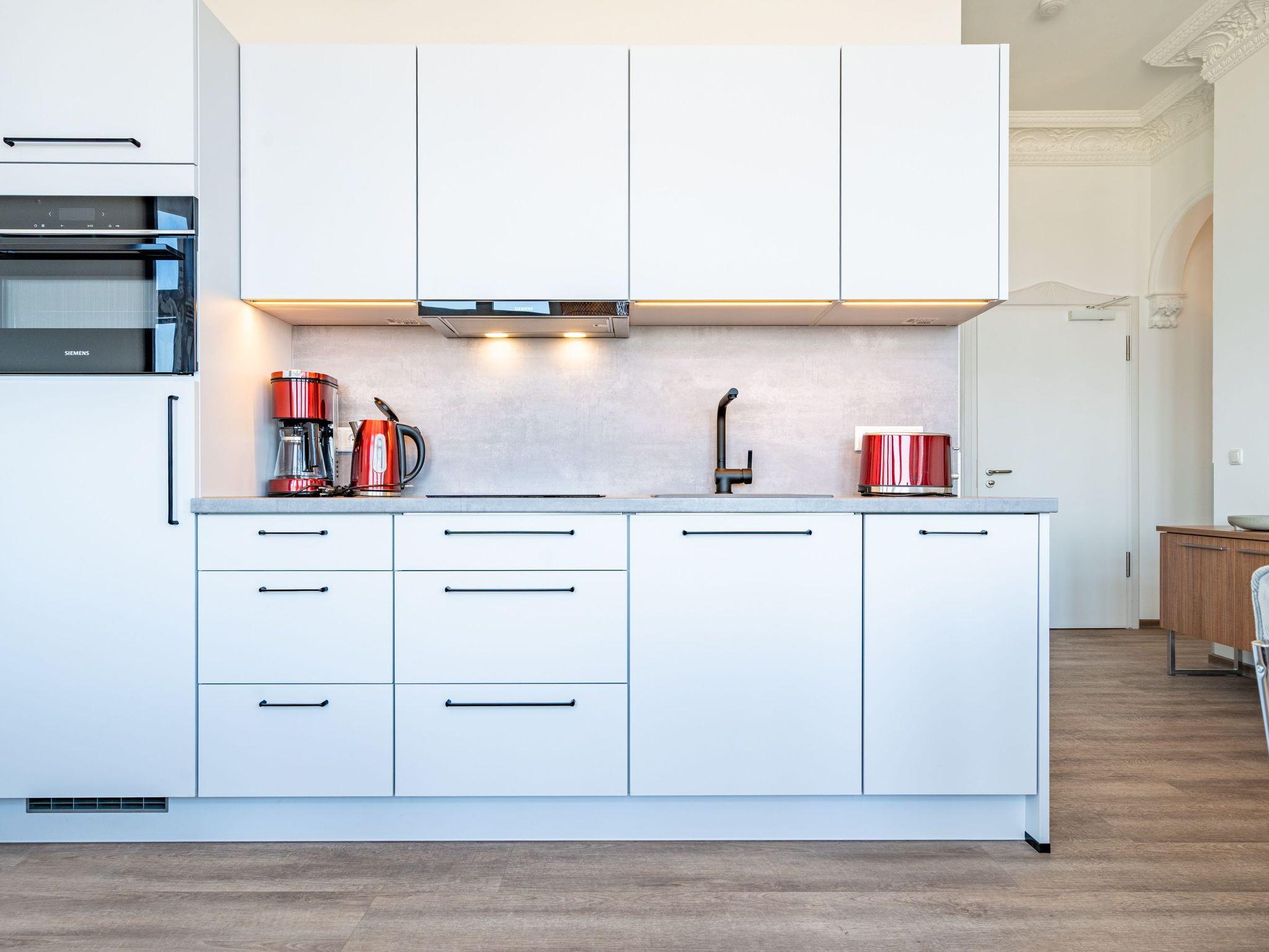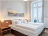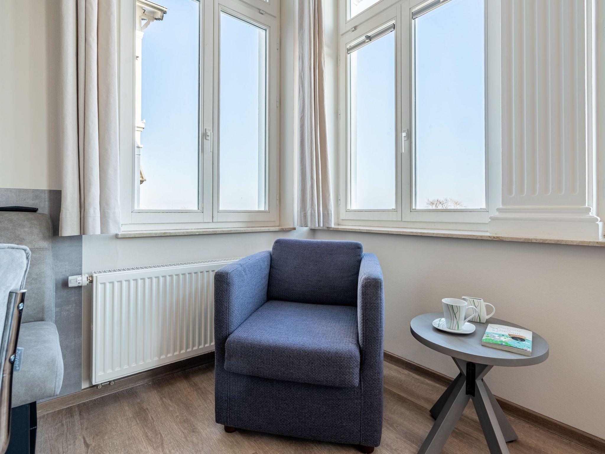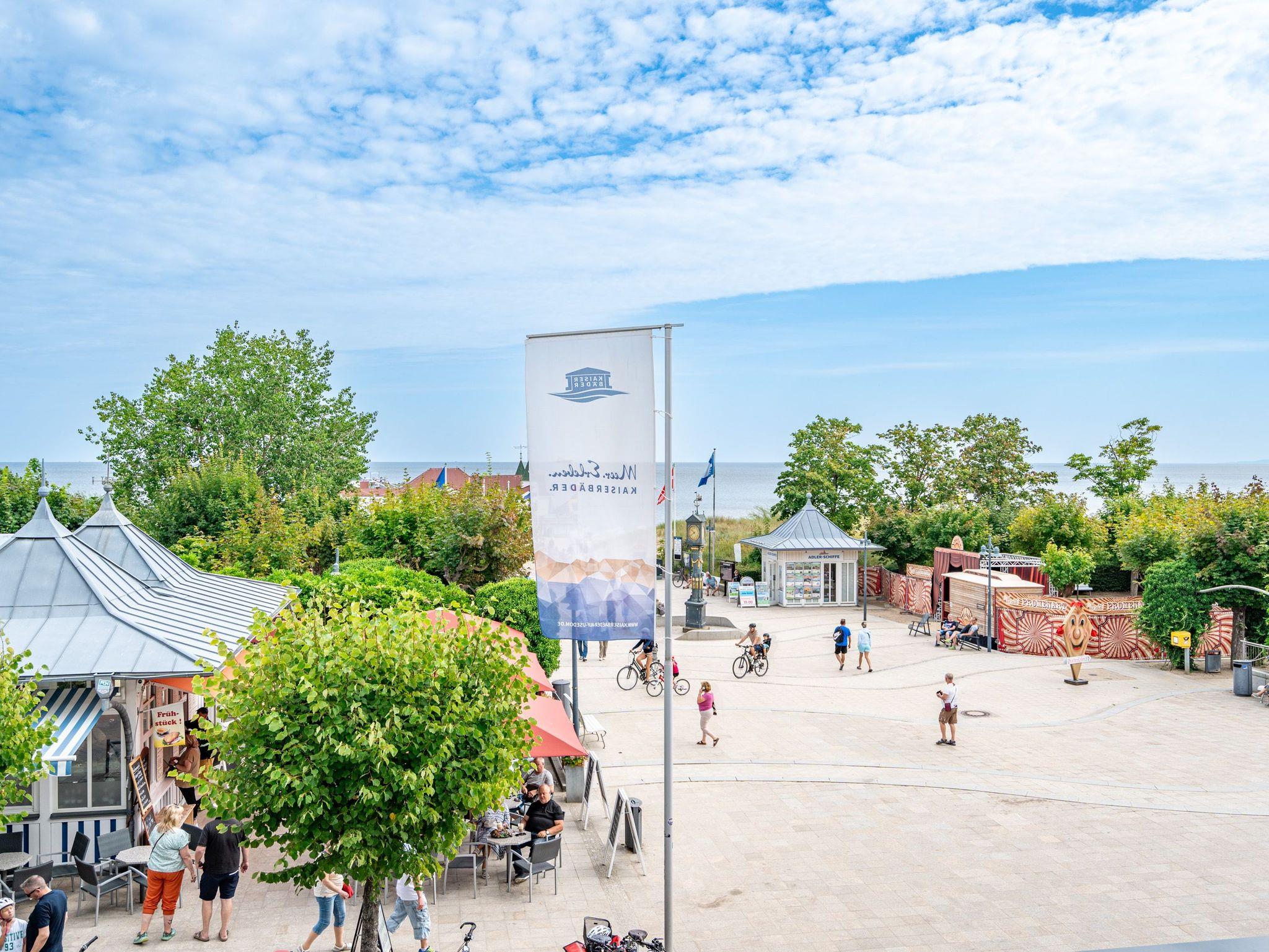 Die Villa Seedüwel überzeugt vor allem durch ihre außergewöhnliche Lage direkt an der Ahlbecker Seebrücke. Promenade, Strand und die historische Konzertmuschel als zentraler Treffpunkt für Veranstaltungen liegen praktisch vor der Tür. Der feinsandige Ostseestrand ist nur wenige Schritte entfernt. Auch das Umfeld passt: Restaurants, Cafés und Einkaufsmöglichkeiten befinden sich in unmittelbarer Nähe, teilweise sogar im Erdgeschoss des Hauses. Die Villa umfasst insgesamt 13 Ferienwohnungen mit einem bis drei Zimmern. Einige Apartments bieten einen direkten Blick auf die Seebrücke und die Ostsee. Für Ihren PKW steht ein Stellplatz in der Tiefgarage des benachbarten Hauses „Strandterrasse“ zur Verfügung (Zufahrt über die Kurstraße) mit direktem Zugang zur Villa. Ein Aufzug ist vorhanden, allerdings erst nach einigen Stufen im Eingangsbereich erreichbar. Zur Ausstattung gehören kostenfreies WLAN im gesamten Haus sowie ein abschließbarer Fahrradkeller. Zusätzlich können Sie im Nachbarhaus „Strandterrasse“ den Gemeinschaftswaschraum mit zwei Waschmaschinen und Trockner nutzen. Dort befindet sich auch eine Gemeinschaftssauna, die täglich von 11:00 bis 22:00 Uhr geöffnet ist.