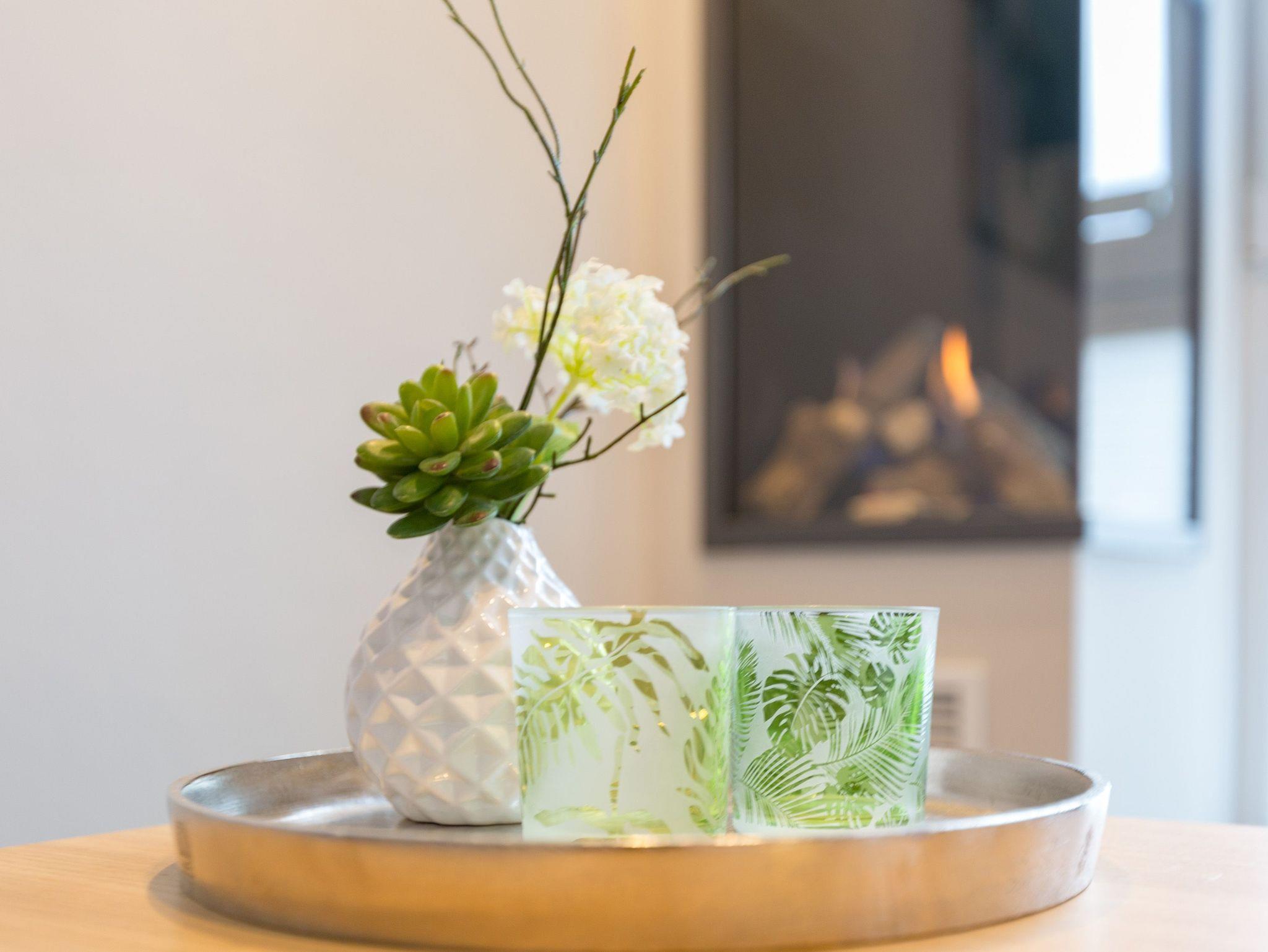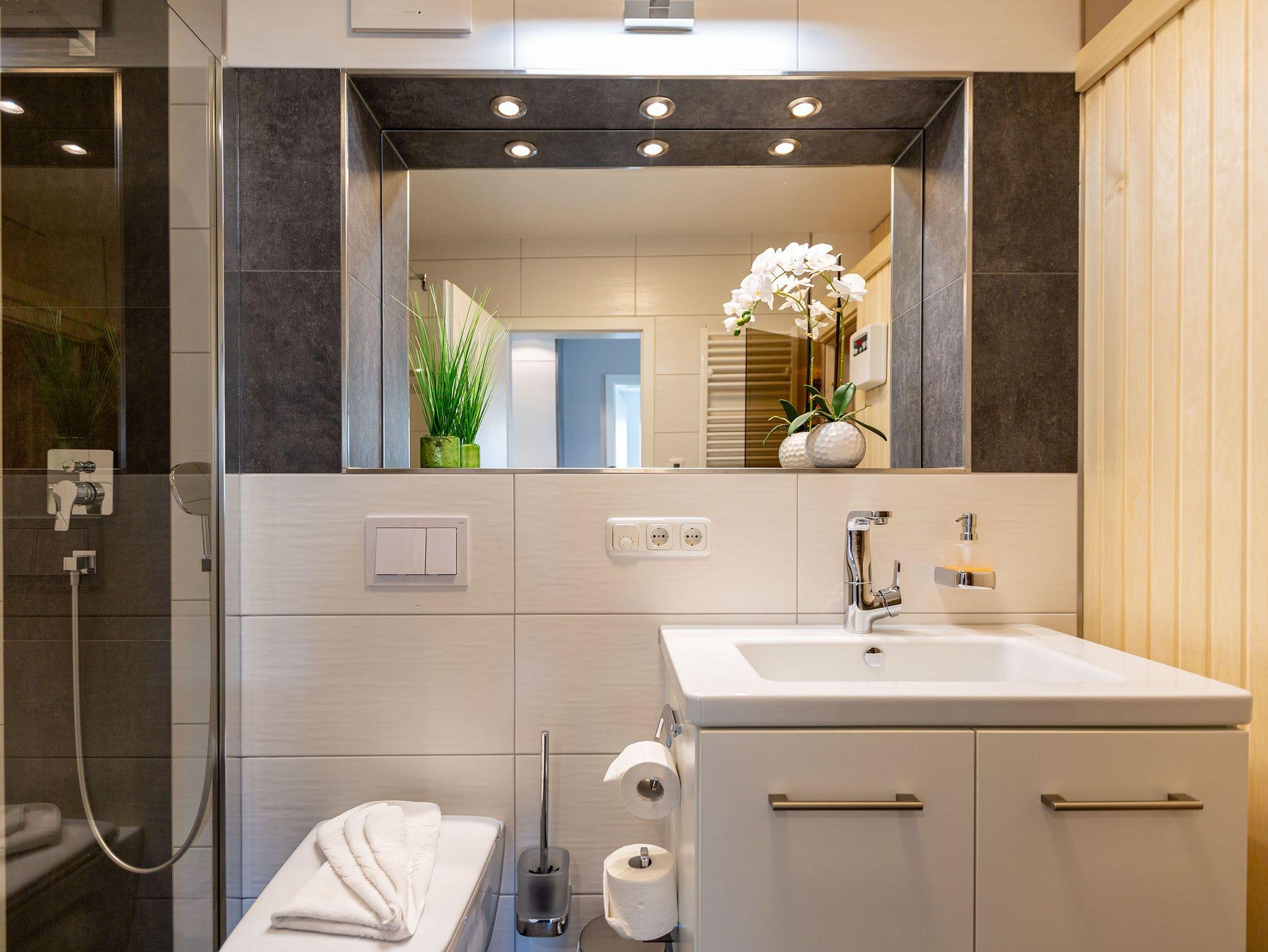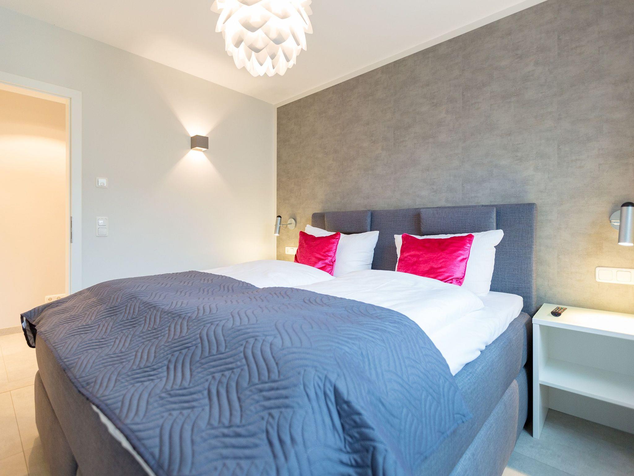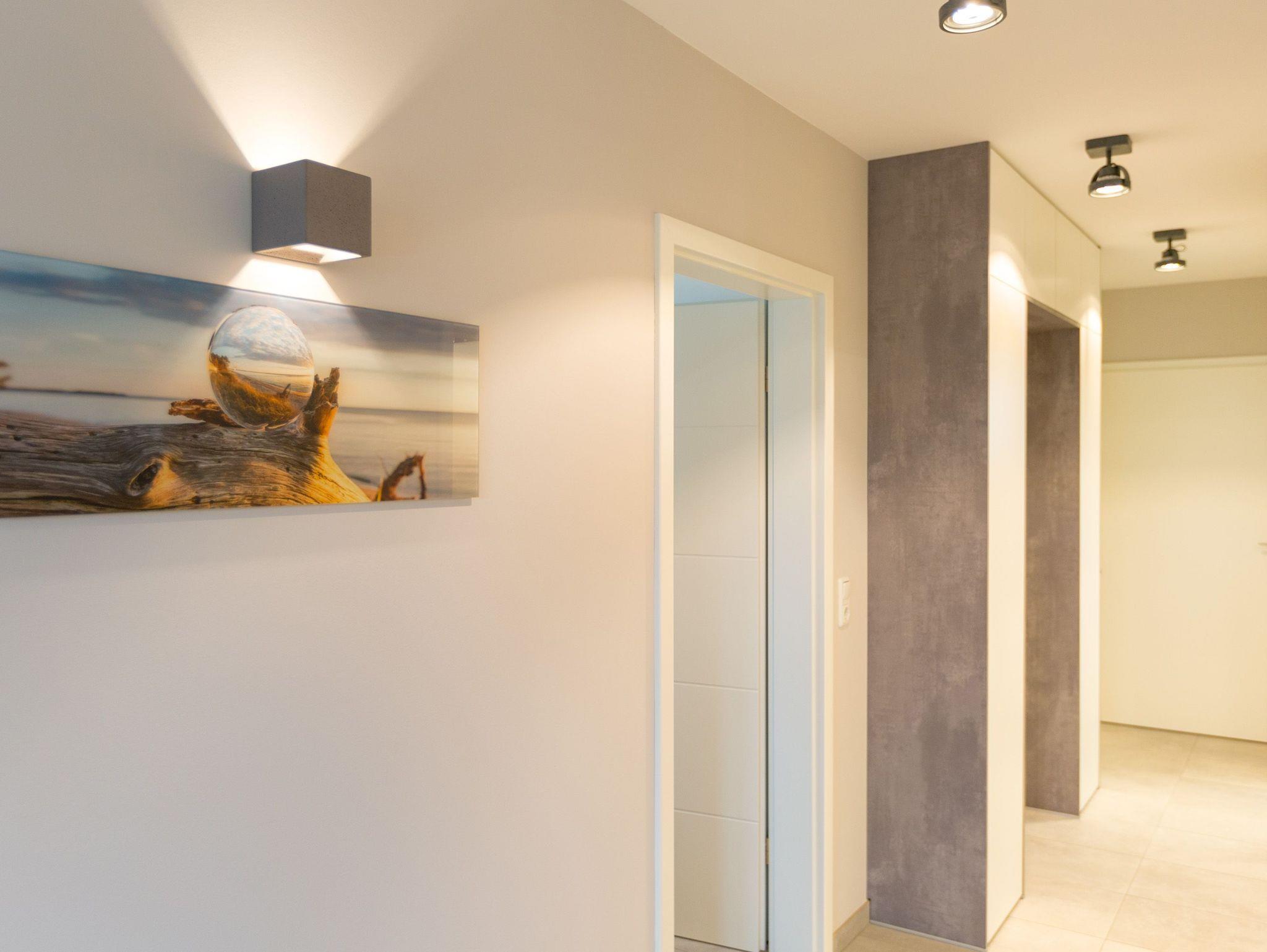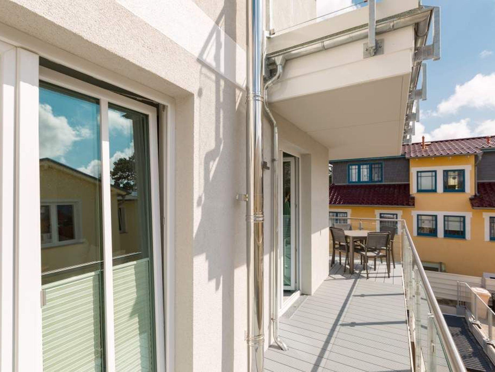 Viel Platz zum Wohlfühlen und Urlauben wartet auf Sie in den 59 Quadratmetern dieses ausgesucht schönen Appartements ( für 4 Erwachsene [&] 1 Kleinkind ( bis 3 Jahre im Kinderreisebett). Gerade das geräumige Wohn-Esszimmer ? Mittelpunkt des Domizils ? ist eine echte Wohlfühlzone mit lichter Leichtigkeit durch große Fenster, stylische Möbel und einer modernen und hochwertig ausgestatteten Küche. Ein Hingucker ist der große Amerikanische Retro-Kühlschrank. Sofas und Sessel laden zum Relaxen ein. Ein Gas-Kamin sorgt auf Knopfdruck für Behaglichkeit; ein Flat-TV für die digitale Unterhaltung. Am schönen Esstisch sind gemütliche Plauder- und Mußestunden garantiert. Kochen Sie gemeinsam. Denn es ist alles da, um es sich richtig gut gehen zu lassen. Edles Geschirr rundet das optische Genussbild ab. Das Appartement verfügt über zwei sonnenüberflutete, 13 Quadratmeter große Südost- und Südwest-Balkone. In jedem der beiden Schlafzimmer befindet sich ein bequemes Boxspringdoppelbett (1,80 m x 2,00 m), das nicht nur das Schlafen zum Vergnügen macht. Entspannen können Sie auch wunderbar in der wohnungseigenen Finnischen Sauna, die direkt ins Badezimmer eingebaut ist. Wem an ungemütlichen Tagen kalt ist, dem wird hier ganz sicher schnell wieder wohlig warm. Abbrausen können Sie sich gleich unter der geräumigen Dusche. Im Bad gibt es zudem einen Waschtisch und ein WC. Ein separates Gäste-WC gibt es in der Wohnung ebenfalls. Für Ihren Komfort sind die Betten bei der Anreise bereits bezogen und Handtücher liegen bereit. Das WLAN ist in der Wohnung kostenfrei und ein Stellplatz Nr. 6 ist für Sie am Haus reserviert. Ein echtes Urlaubsparadies wartet also nur darauf, dass Sie ankommen und am liebsten gar nicht wieder weg wollen.