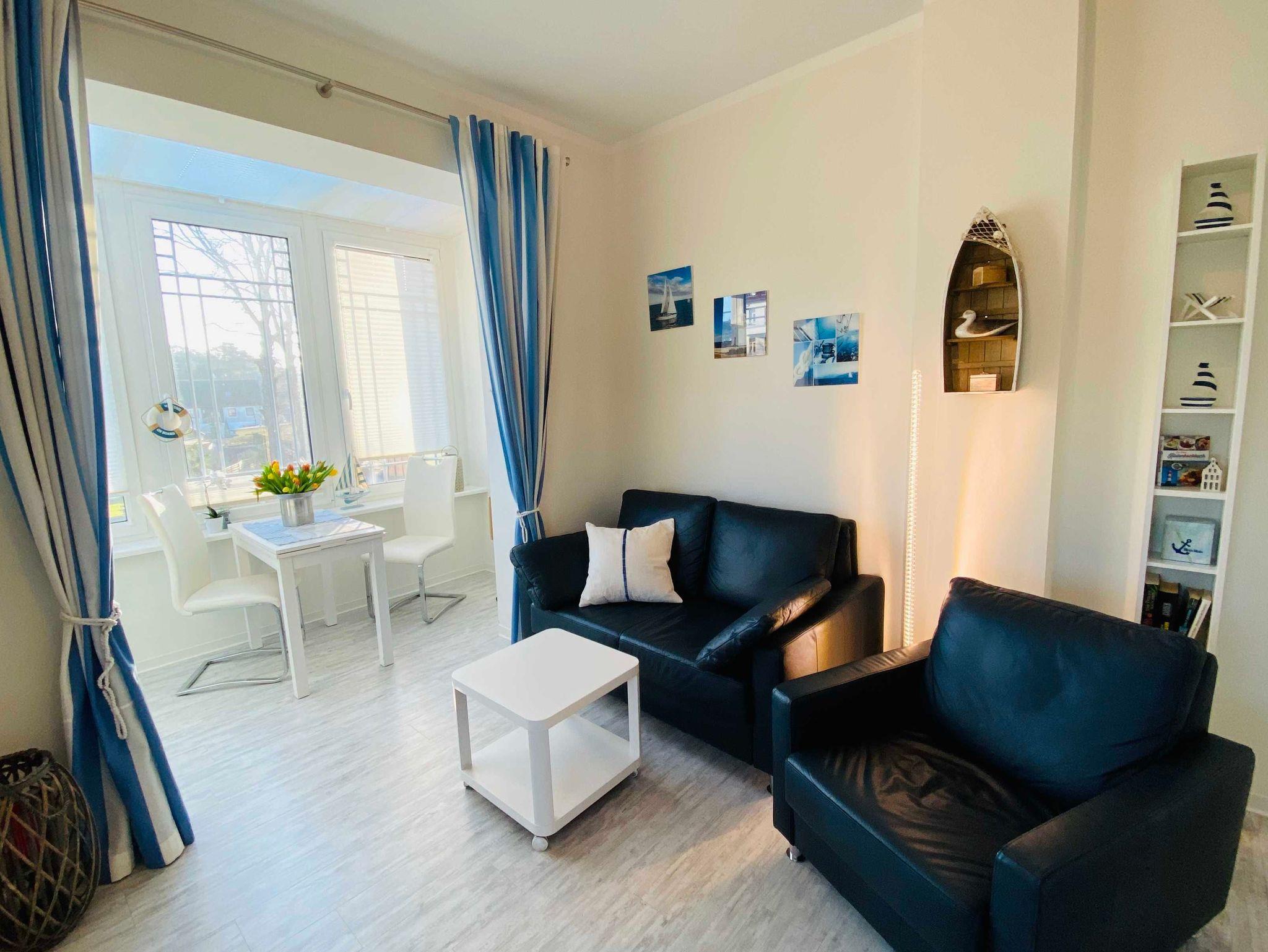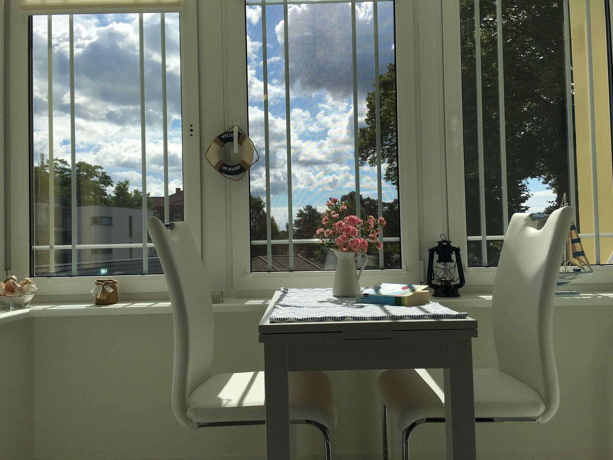 Die Ferienwohnung 4 befindet sich im ersten Obergeschoss des Hauses und besteht aus einem gemütlichen Wohnbereich mit Veranda , Sitzecke und offener Küchenzeile. Die maritime Dekoration zieht sich durch diesen Bereich bis ins Schlafzimmer. Das kuschlige Doppelbett wird ebenfalls von maritimer Deko umrahmt. Von hier aus gibt es auch den Zugang zum Frühstücksbalkon (Morgensonne). Zur Ferienwohnung gehört ein Bad mit Badewanne und ein zusätzlicher Abstellraum im Treppenhaus. Ein Stellplatz steht am Haus kostenfrei zu Verfügung.