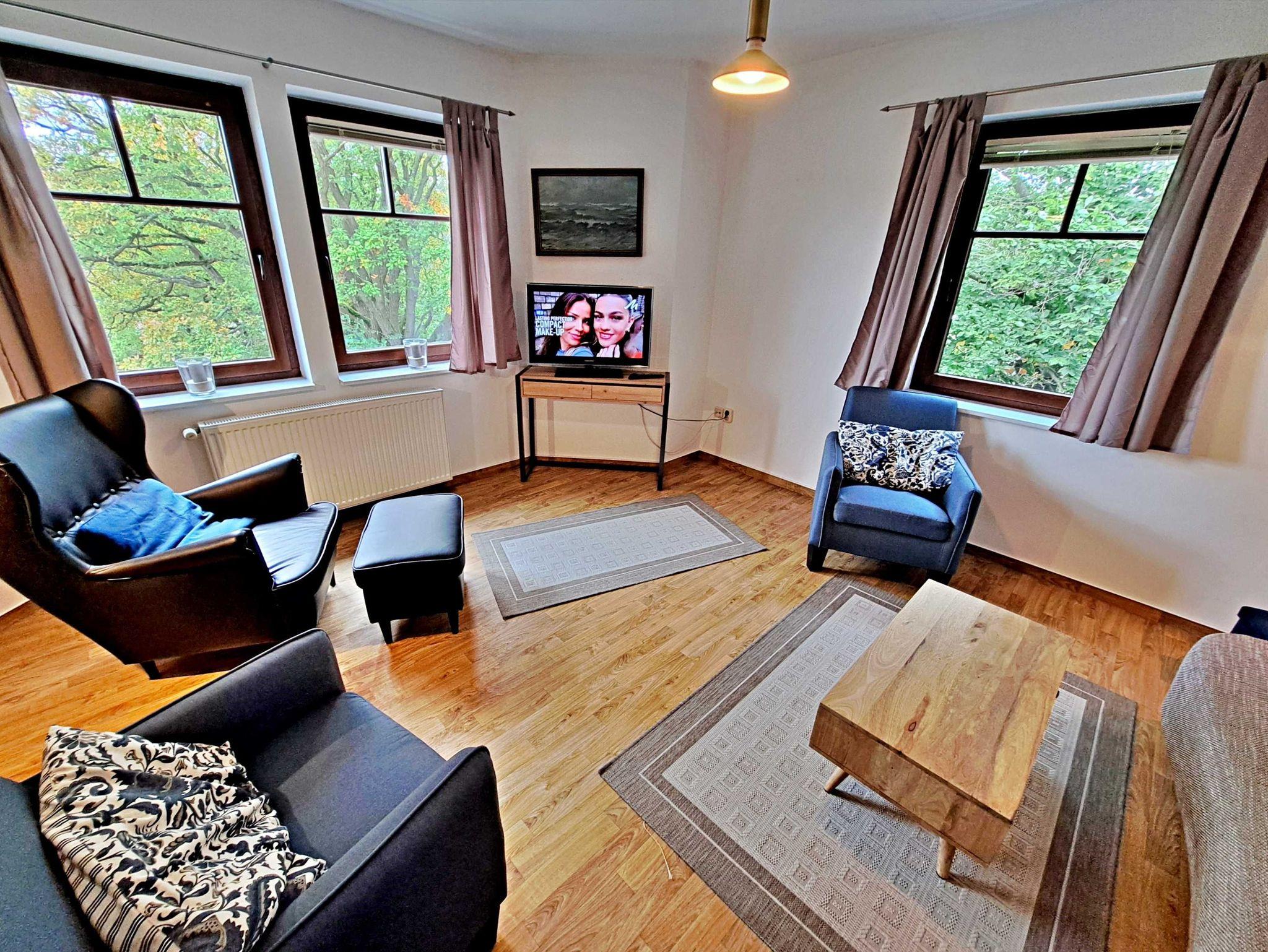 Für Familien ist die Wohnung besonders geeignet: Das Schlafsofa im Wohnzimmer bietet Platz für ein Kind bis 15 Jahre (Liegefläche 190 x 140 cm) und ein Klappbett (90 x 200 cm) steht ebenfalls zur Verfügung, das auch von einem Erwachsenen genutzt werden kann. Genießen Sie die frische Luft im Garten, der mit mehreren Sitzecken ausgestattet ist und zum Verweilen einlädt. Selbstverständlich steht Ihnen in der gesamten Wohnung kostenfreies WLAN zur Verfügung. Ihen Pkw können Sie direkt vor der Unterkunft parken.
