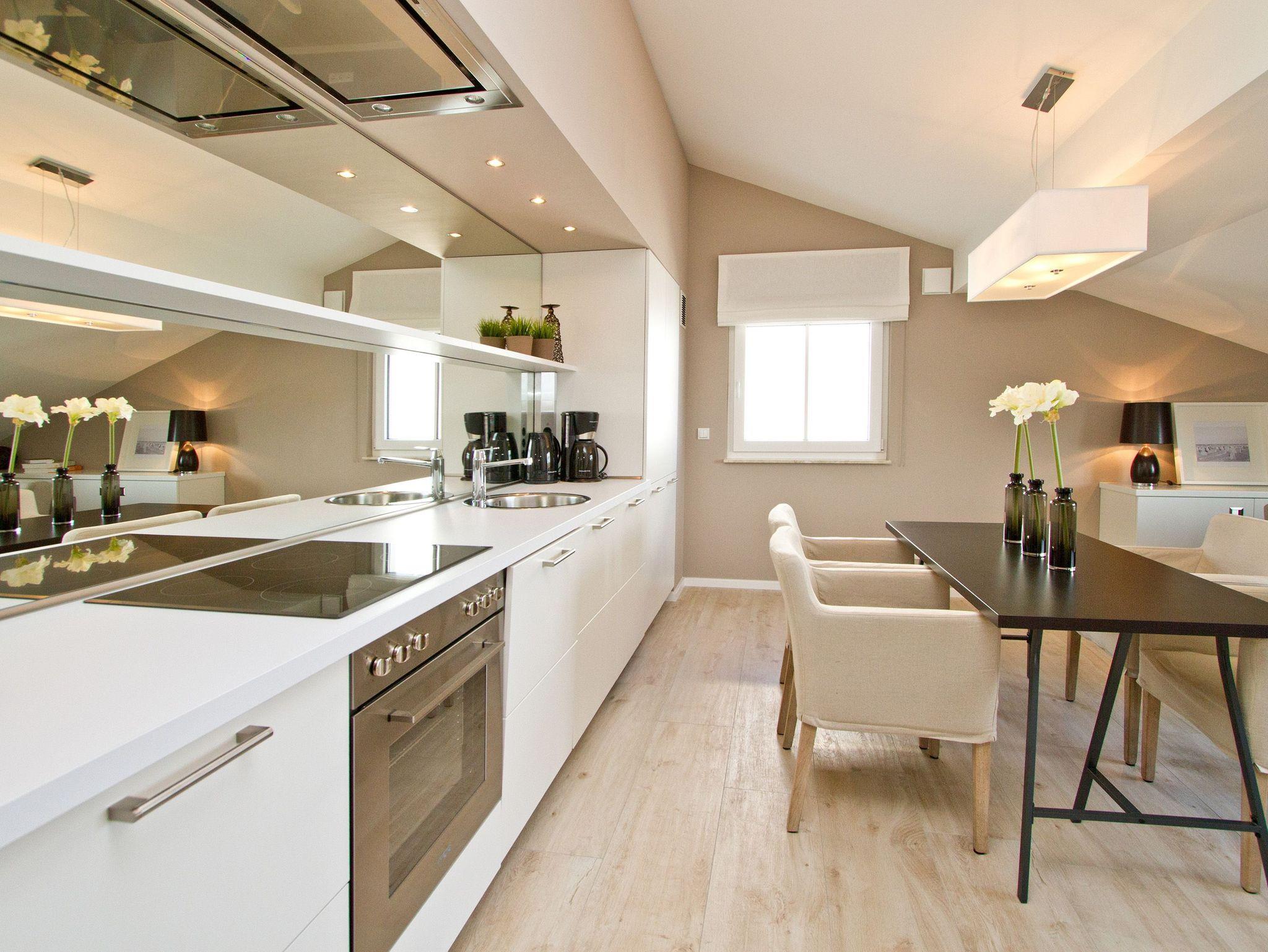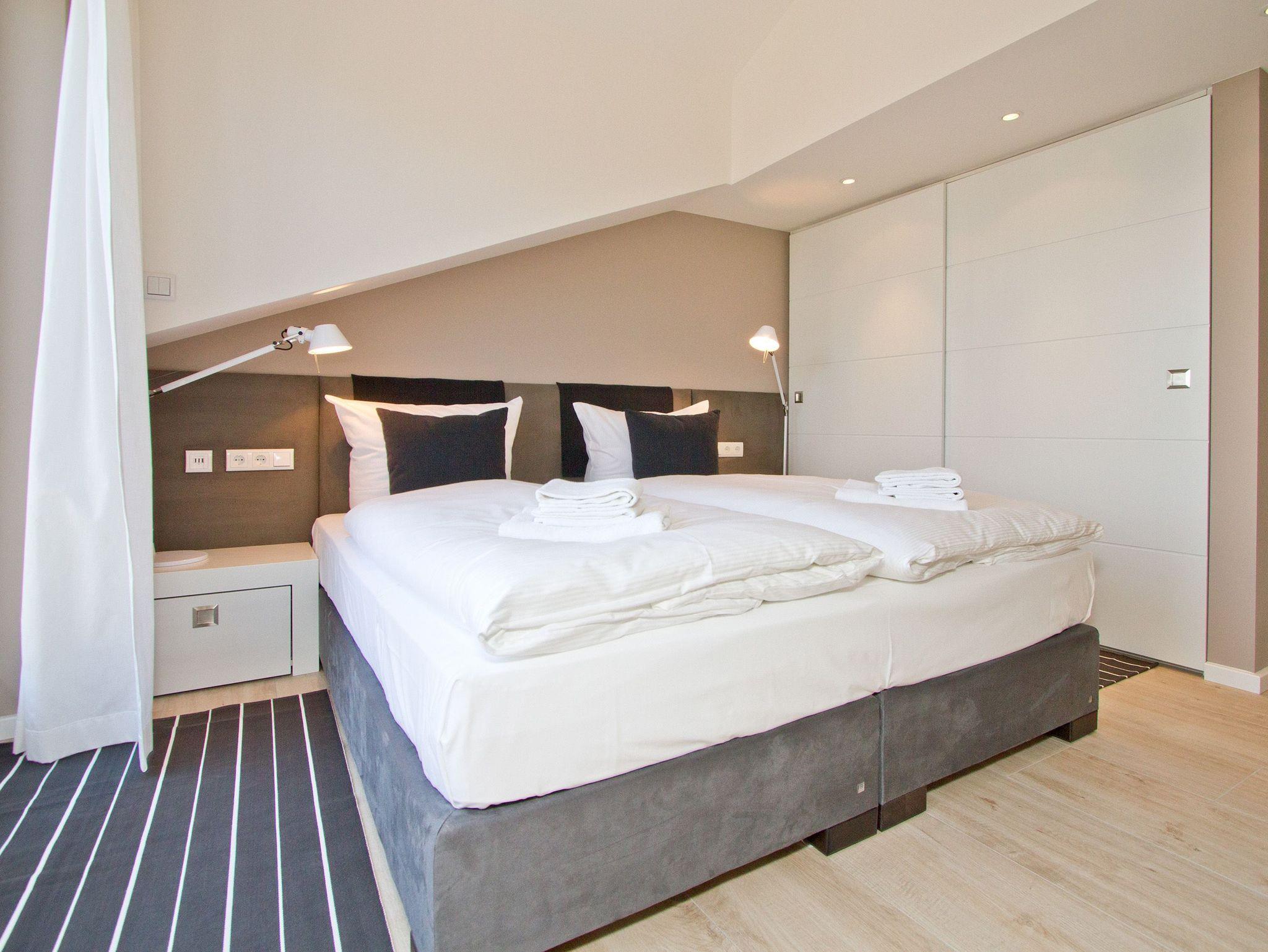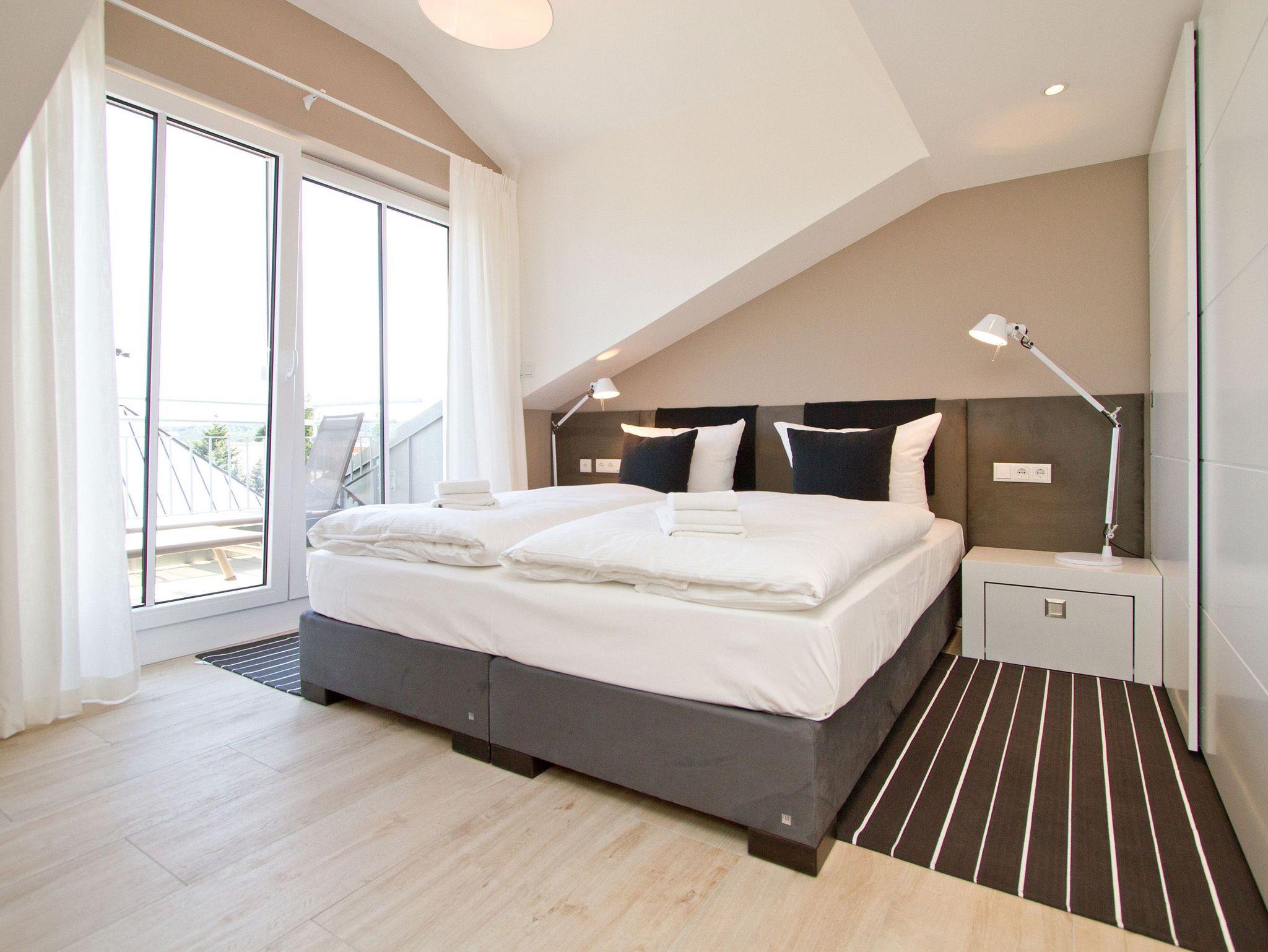 Dieses Domizil [&] den Ausblick auf die Ostsee werden Sie lieben! Direkt unter dem Dach des Hauses gelegen, erwartet Sie eine stylische 2-Raum-Ferienwohnung (55 qm) für 2 Personen und ein Kleinkind (bis 3 Jahre im Kinderreisebett). Modernes Design, geschmackvoll abgestimmte Farben und schöne Dekorationen wurden von gekonnter Innenarchitektenhand arrangiert und versetzen Sie schnell in Urlaubslaune. Der Wohnbereich mit bequemer Sitzgruppe, Flat- TV und Design-Gaskamin wird ergänzt durch die offene, komplett ausgestattete Küche und den angrenzenden Essplatz. Das Schlafzimmer mit komfortablen Einbauten und Boxspringbett (1,80 x 2 m) verfügt über einen schönen Balkon (Ostseite) mit Blick auf die Ostsee. Auch der zweite sonnige Balkon (mit Zugang vom Wohnbereich) mit Gartenmöbeln bietet über die Dächer der alten Villen einen schönen Blick auf das Meer. Im großzügigen Bad finden Sie eine Echtglasdusche [&] WC. Für Ihren Komfort sind die Betten bei der Anreise bezogen und Handtücher liegen bereit. Ein Pkw-Stellplatz ( Nr. 2) steht in der Tiefgarage zur Verfügung. Auf Wunsch stellen wir ein Kinderreisebett (ohne Matratze [&] Bettzeug) und einen Kinderhochstuhl gegen einen Aufpreis zur Verfügung.