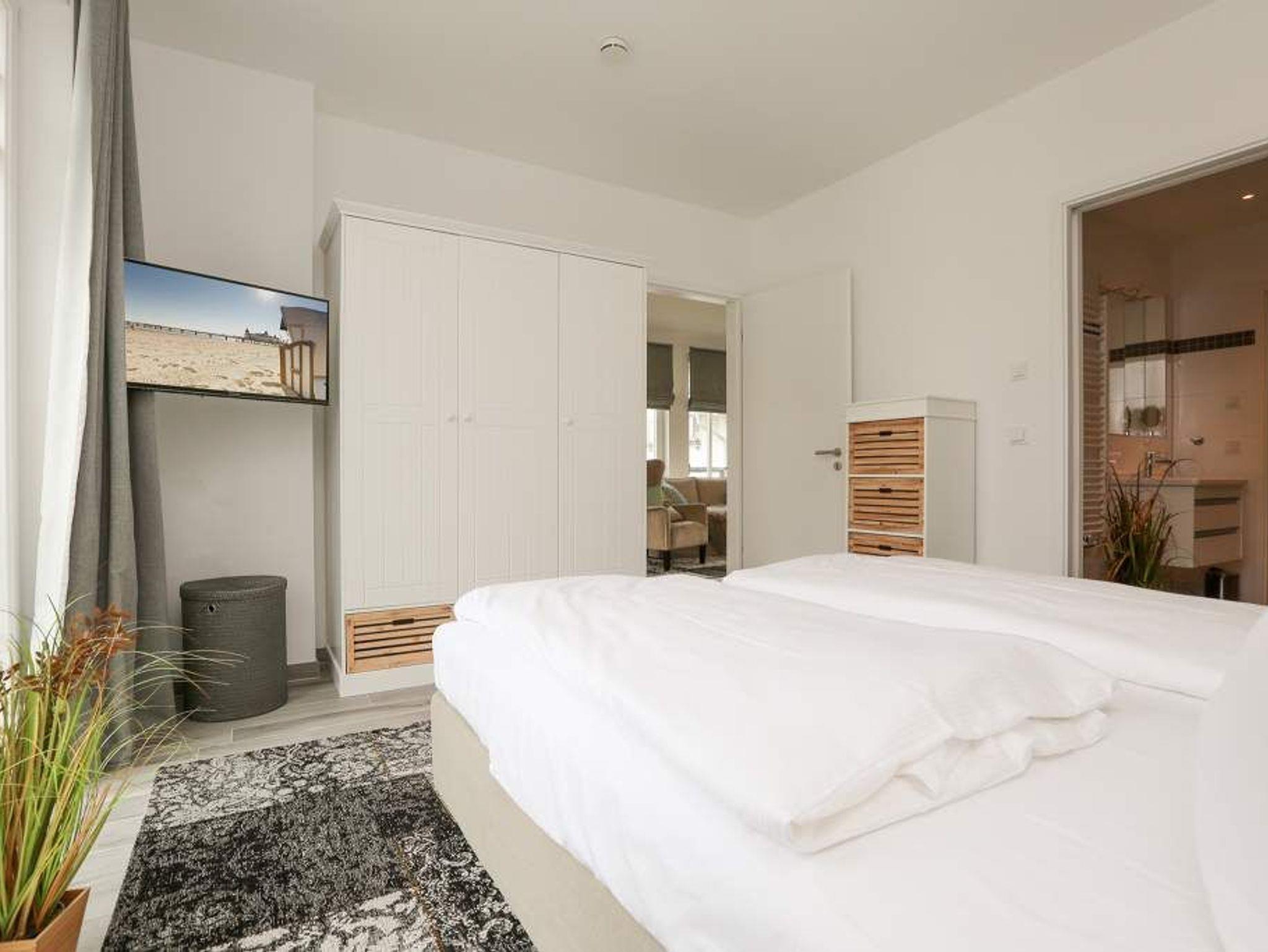 Der heiße Kaffee duftet köstlich in der Tasse. Der Blick wandert bis an den blauen Horizont. Und mit ihm die Seele. Den Gedanken Freiraum geben. Loslassen. Wohlfühlen. Einfach nur sein. Die Lungen füllen sich mit frischer, salziger Ostseeluft. Ankommen im Urlaubshimmel mit Meerblick. Die Wohnung mit der Nummer 16 im 2. Stock der Villa Westend bietet all das und noch vieles mehr. Platz ist in den drei Räumen des Ferien-Appartements für vier Erwachsene und ein Kleinkind bis drei Jahre im Kinderreisebett. Mittelpunkt ist unbestritten die große und gemütliche Wohn-Ess-Küche. Ob beim Chillen auf der kuscheligen Couch, den großen Flat-TV, beim Lesen im urigen Ohrensessel, beim gemeinsamen Schlemmen am Echtholztisch oder beim Kochen an der stylischen Kochinsel mit Induktionsherd und modernster Dunstabzugstechnik in der Mitte des Kochfelds ? diese Wohnung hat Stil. Die 84 Quadratmeter bieten Urlaubshungrigen und Ostseeliebhabern eine exklusive Auszeit, um neue Energie zu tanken und zu entspannen. Landhausstil trifft Industrial-Style: Die Einrichtung ist sehr geschmackvoll, die Farben sind natürlich und warm. Direkt vom Wohnzimmer geht?s auf die Loggia mit Meerblick. Der Tisch mit den vier Stühlen lädt schon zum Sonnenaufgang zum Ausblick über das Meer ein oder zum geselligen Verweilen in lauen Sommernächten. Die zwei Schlafzimmer sind mit bequemen Doppelboxspringbetten (1,80 m x 2,00 m) ausgestattet. Kleiderschränke und Kommoden bieten dort genügend Stauraum für die mitgebrachten Sachen. Die Wohnung verfügt über zwei Bäder mit geräumigen Tropenduschen, Waschtisch und jeweils WC. Einen Grund, mehr in dieser Wohnung so richtig ausspannen und entspannen zu können, bietet die Finnische Sauna im Masterbad. Die Erst-Ausstattung mit Handtüchern und der Bezug der Betten gehören zum Service dazu. Ebenso die kostenfreie Nutzung des WLAN. In der Tiefgarage stehen die Stellplätze Nr. 28 [&] 29 zur Verfügung.