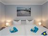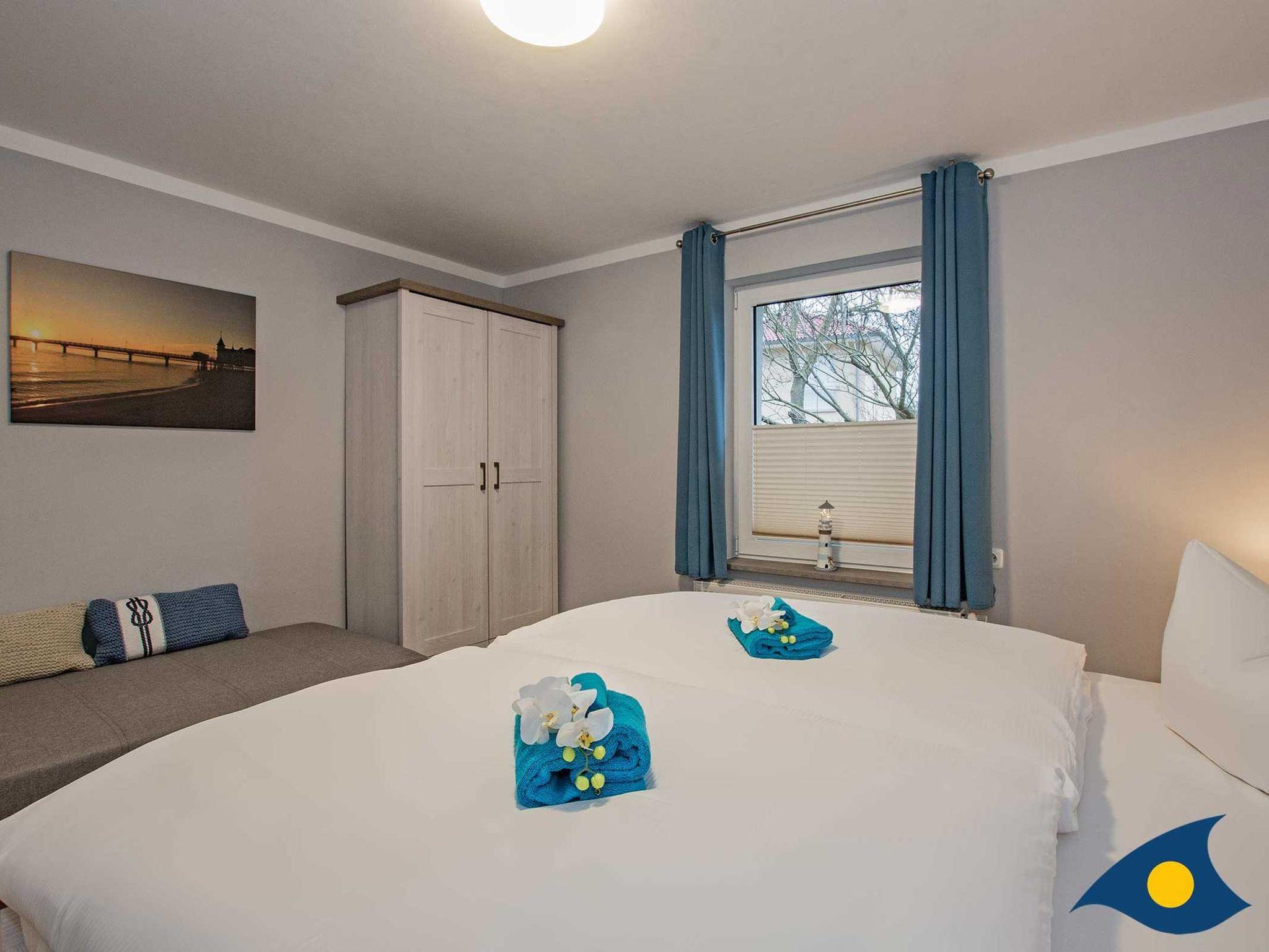 Zwei Schlafräume ebenfalls im Erdgeschoss sorgen für erholsame Träume und Ruhe nach einem ereignisreichen Urlaubstag. Dort erwarten Sie jeweils ein großzügiges Doppelbett (180 x 200 cm). In einem der beiden Schlafräume steht zusätzlich ein Einzelbett zur Verfügung.