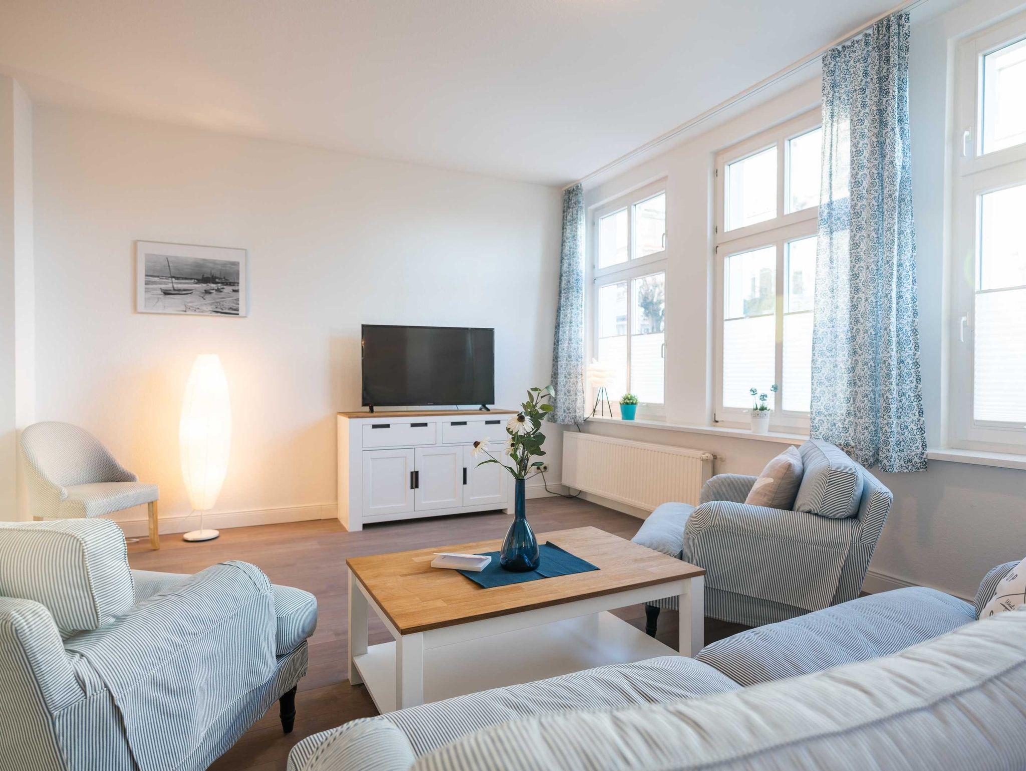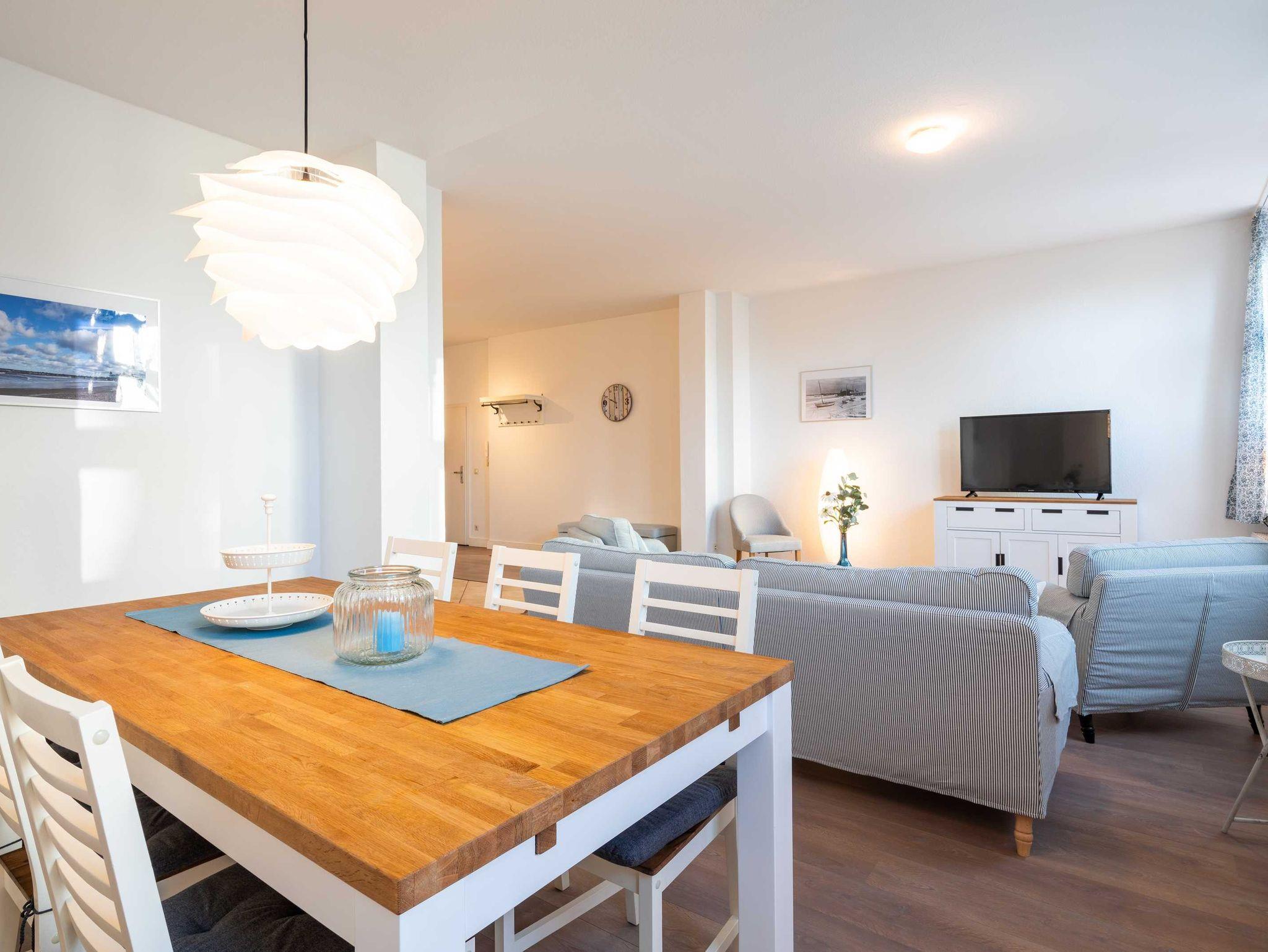 Das 85 qm große Appartement Seestern verfügt über geräumiges Wohnzimmer mitgemütlicher Wohnlandschaft und einen großen Essplatz. Die offene Küche ist komplett mit Spülmaschine, Mikrowelle, Herd und Backofen ausgestattet und lässt keine Wünsche offen, um eine tolle Mahlzeit zuzubereiten.