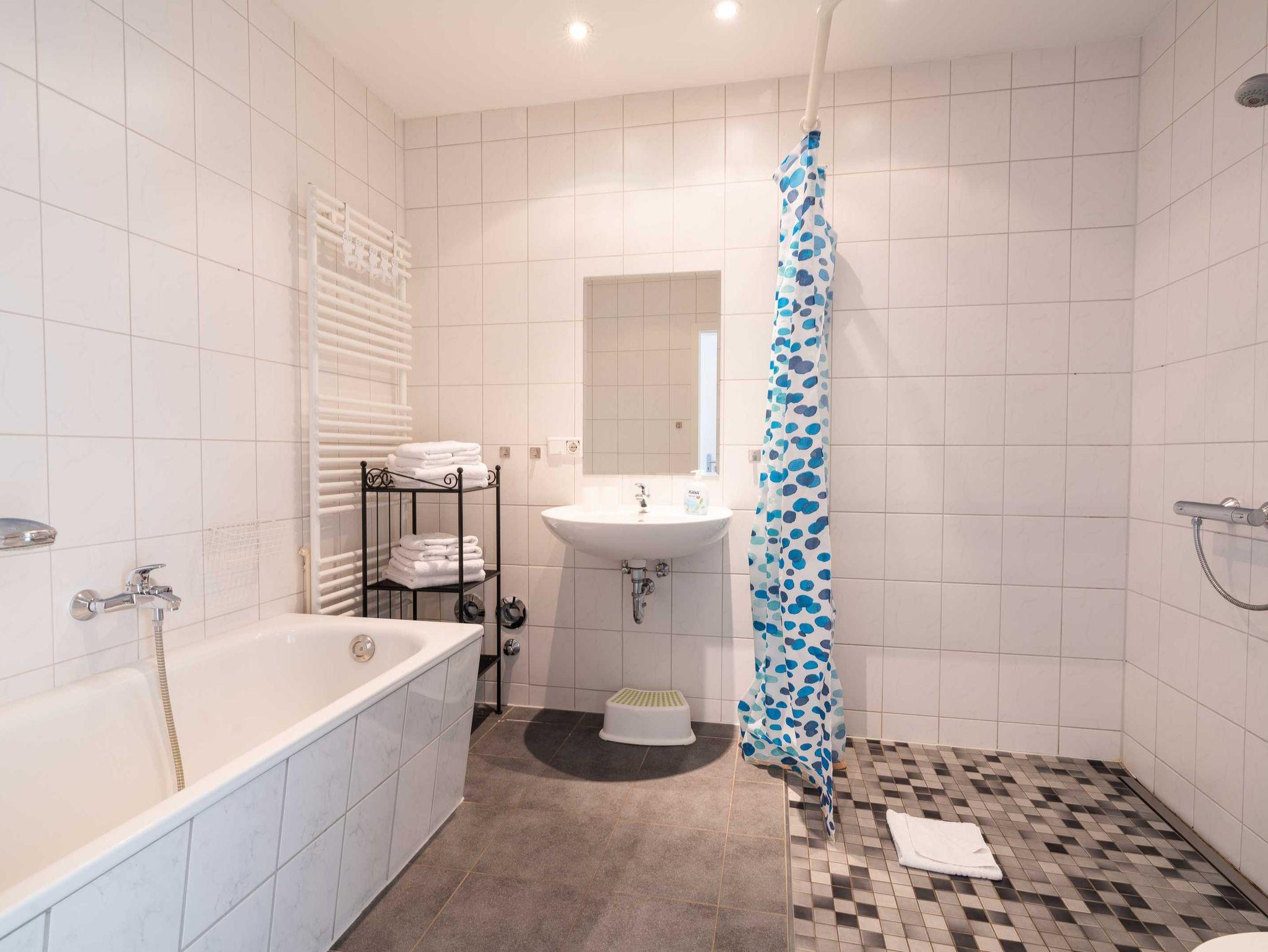 Ein Schlafzimmer ist mit einem Doppembett, das zweite Schlafzimmer mit zwei Einzelbetten ausgestattet.sind mit jeweils einen Einzelbett, das dritte Schlafzimmer ist mit einem Doppelbett ausgestattet. Bad mit Badewanne, ebenerdiger Dusche und WC. Eine kleine Sitzecke vor dem haus lädt zum Verweilen und Entspannen ein.
