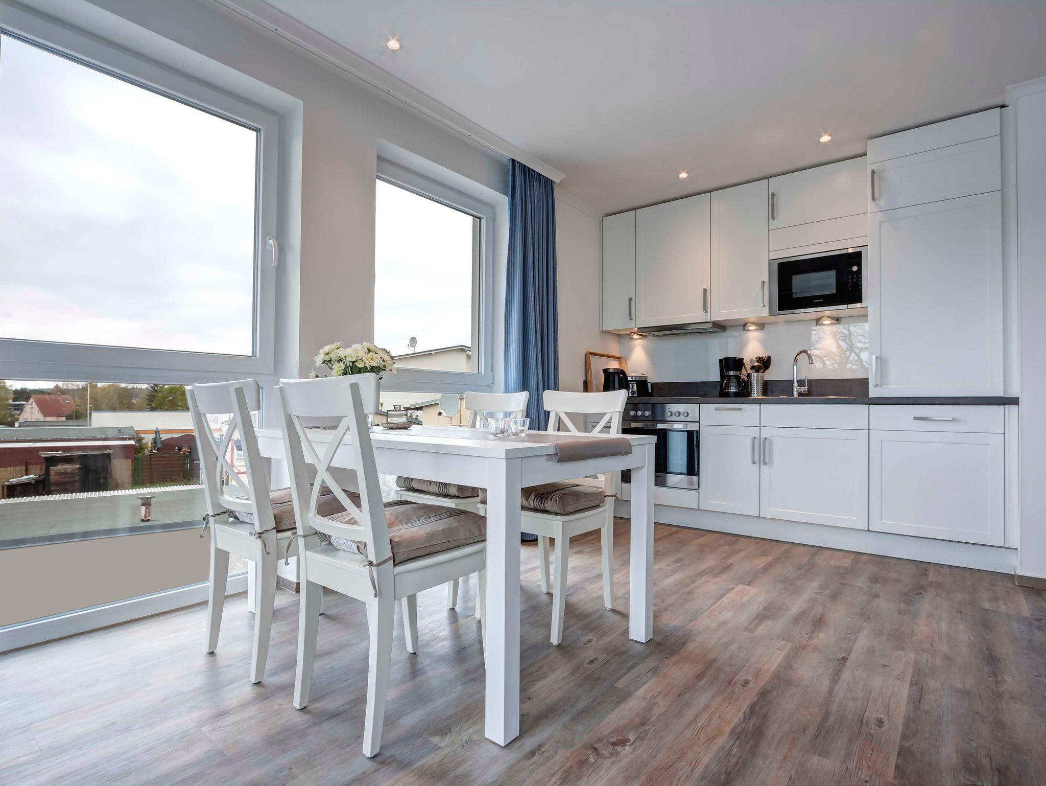 Neu! Baujahr 2017! Moderne, großzügig geschnittene 2-Zimmer-Wohnung im 1.OG mit SÜDBALKON! Komfortabel eingerichtet mit sehr guter Ausstattung! 1 Schlafzimmer, Bad mit Dusche und Wanne, zusätzliches separates WC, Wohnbereich mit offener Küche, Doppelschlafcouch und schickem Essplatz, möblierter Balkon. Die Wohnung verfügt über einen Pkw-Stellplatz auf dem Grundstück. Die Strandpromenade ist ca. 300m entfernt. Zum Ortszentrum und der bekannten Ahlbecker Seebrücke sind es ca. 8-10 Minuten zu Fuß.Die Zufahrt mit dem Auto erfolgt über die Ferdinand-Egelinski-Straße.