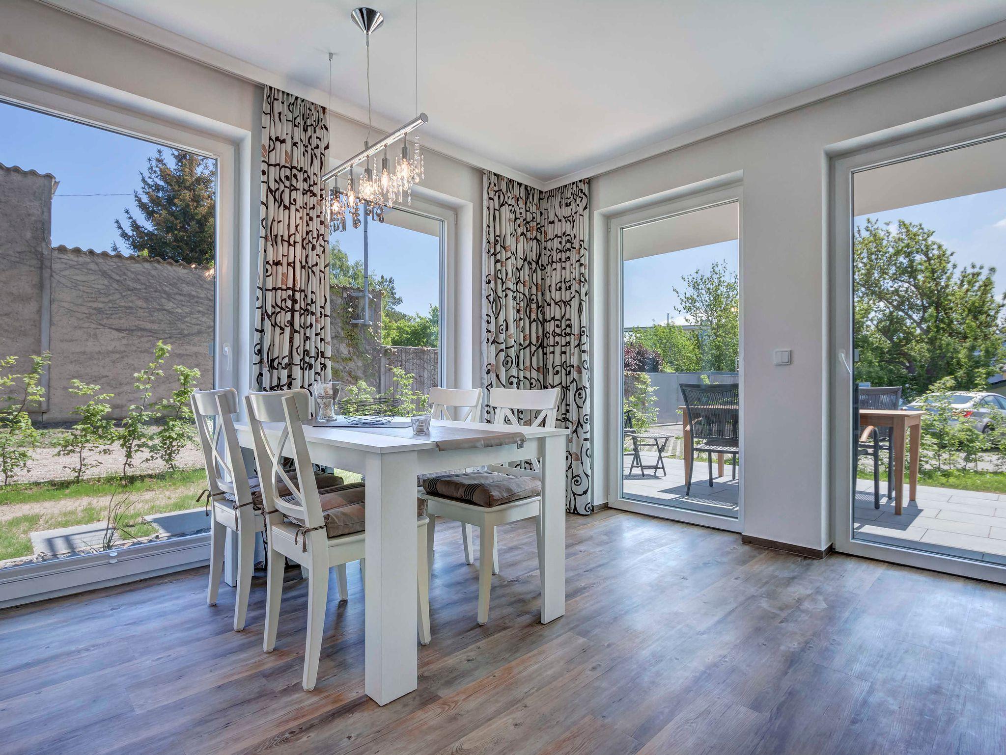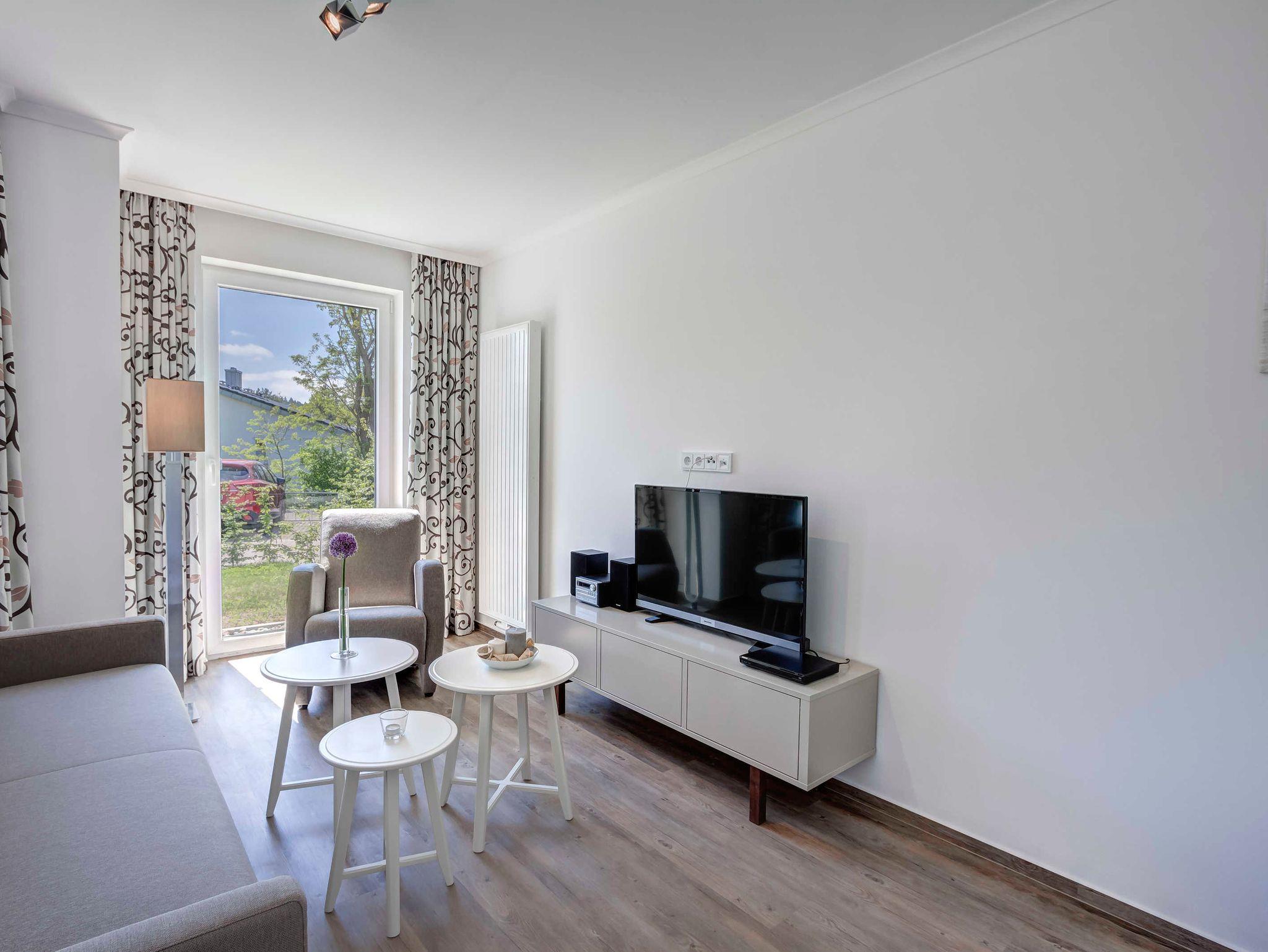 Neu! Baujahr 2017! Moderne 3-Zimmer-Erdgeschoßwohnung mit SÜDTERRASSE! Komfortabel eingerichtet mit sehr guter Ausstattung! 2 separate Schlafzimmer, 2 Bäder (1 Wannenbad, 1 Duschbad), großzügiger Wohnbereich mit moderner offener Küche und schickem Essplatz, möblierte Terrasse. Die Wohnung verfügt über einen Pkw-Stellplatz auf dem Grundstück. Die Strandpromenade ist ca. 300m entfernt. Zum Ortszentrum und der bekannten Ahlbecker Seebrücke sind es ca. 8-10 Minuten zu Fuß.Die Zufahrt mit dem Auto erfolgt über die Ferdinand-Egelinski-Straße.