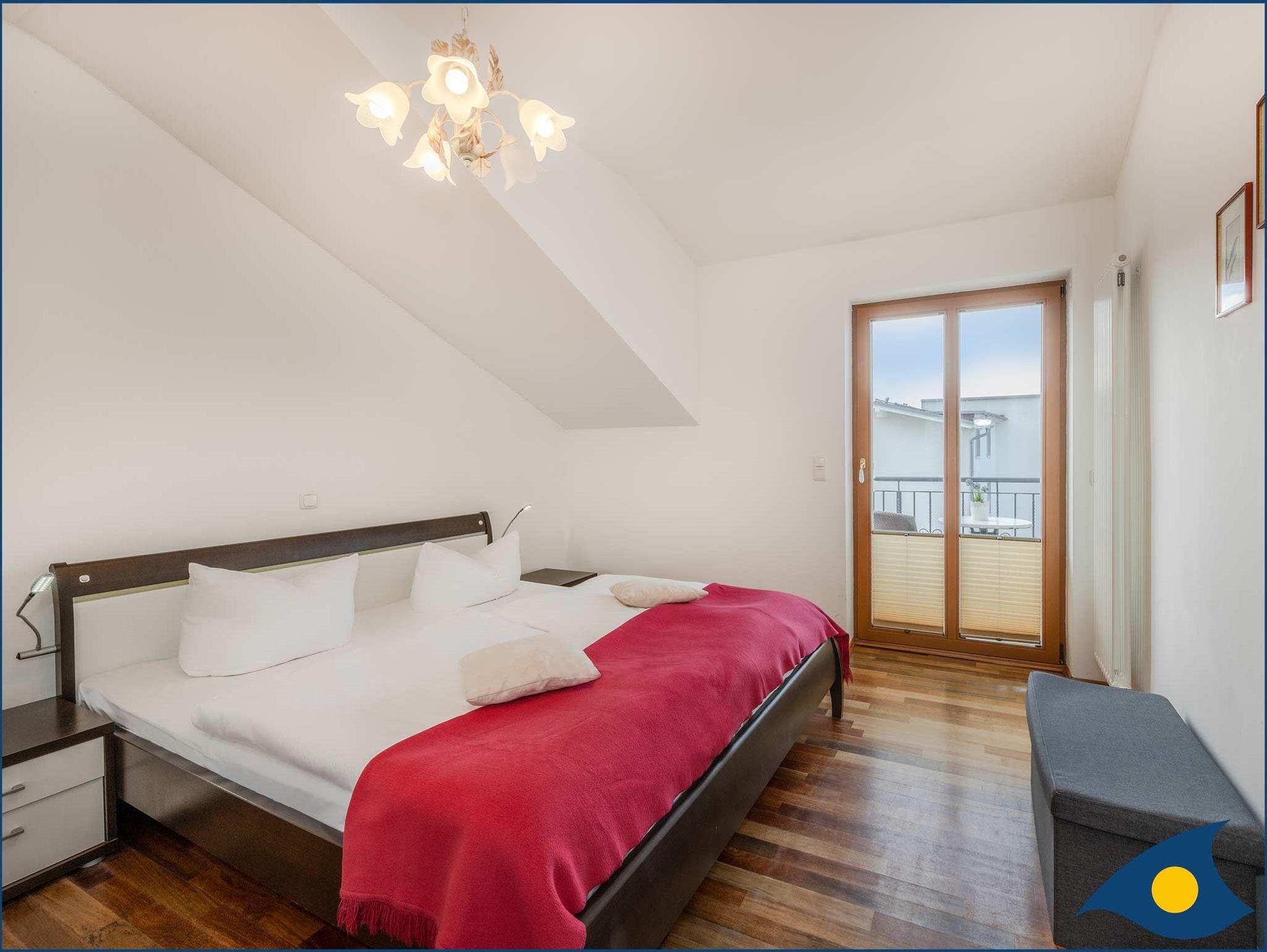 Erholsame Nächte können Sie im separaten Schlafzimmer mit Doppelbett und Südbalkon genießen.