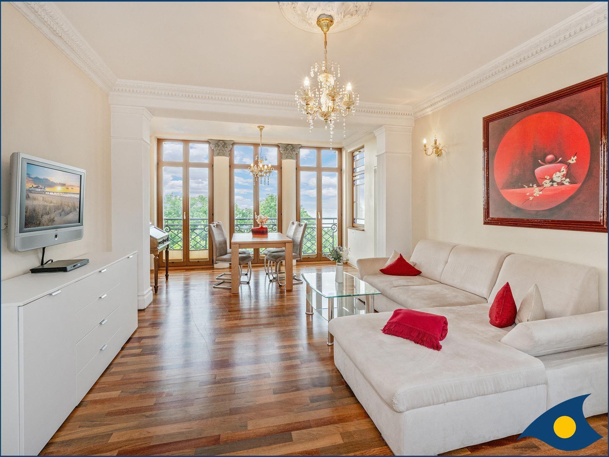 Diese großzügige Ferienwohnung im 2. Obergeschoss der Villa bietet Ihnen einen wundervollen Blick auf die Ostsee.