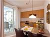 Das mit Liebe zum Detail eingerichtete Appartement ermöglicht bis zu drei Personen auf 42 m² einen erholsamen und erlebnisreichen Urlaub. Im Wohnzimmer mit Ledergarnitur, Flat TV und Mini-Bibliothek muss man sich einfach wohlfühlen. Die integrierte Küchenzeile mit Ceranfeld (4 Platten), Mikrowelle, Toaster, Kaffeemaschine, Kühlschrank mit Gefrierfach, Geschirrspüler und Wasserkocher fügt sich harmonisch ein. Der angrenzende Balkon ist zur Südseite ausgerichtet und verspricht bei Sonnenschein Wärme pur. Im Schlafzimmer wartet ein komfortables Doppelbett (180x200 cm / mit zwei ausgewählten getrennten Matratzen) und ein Flat TV auf Sie.