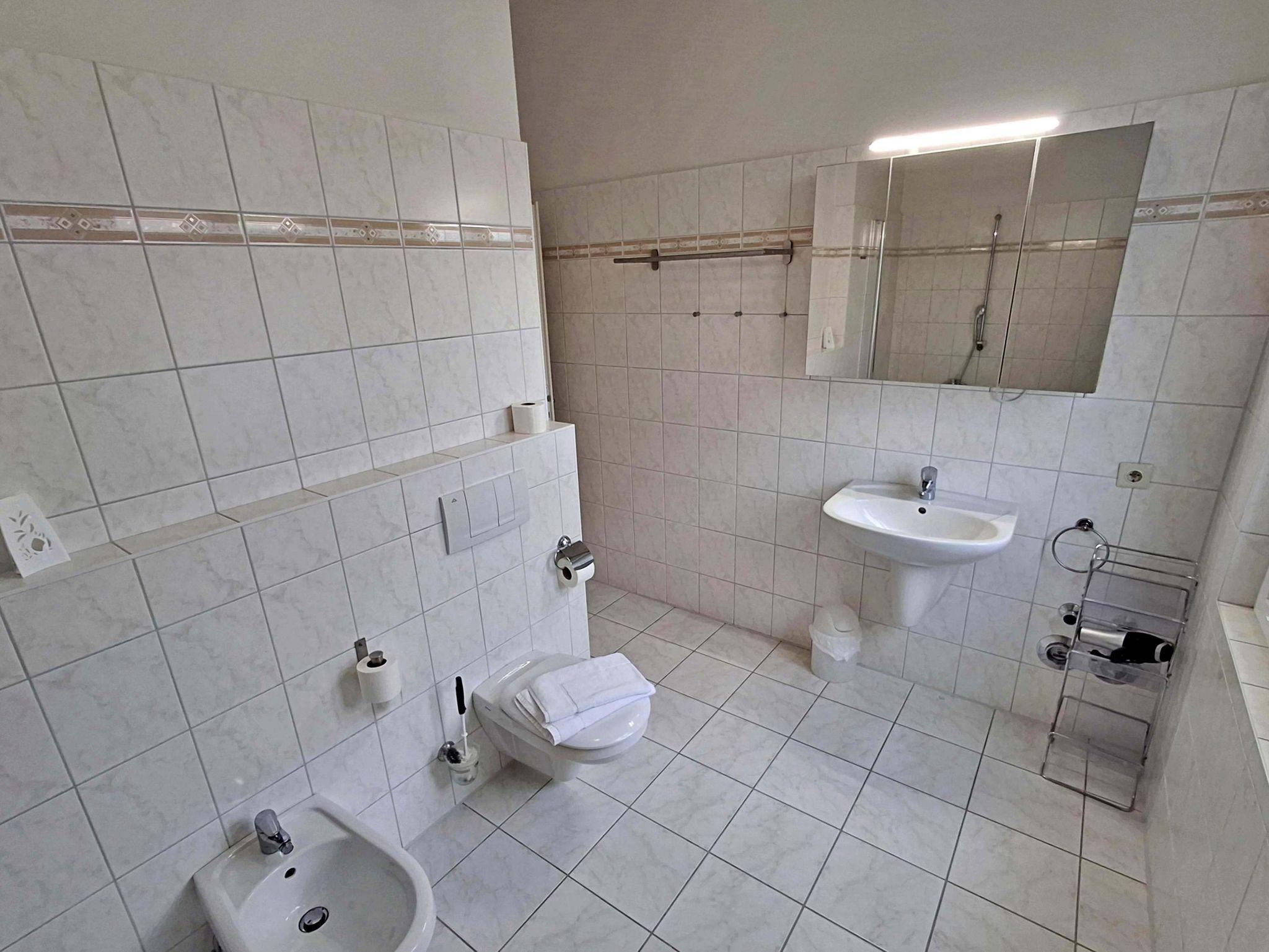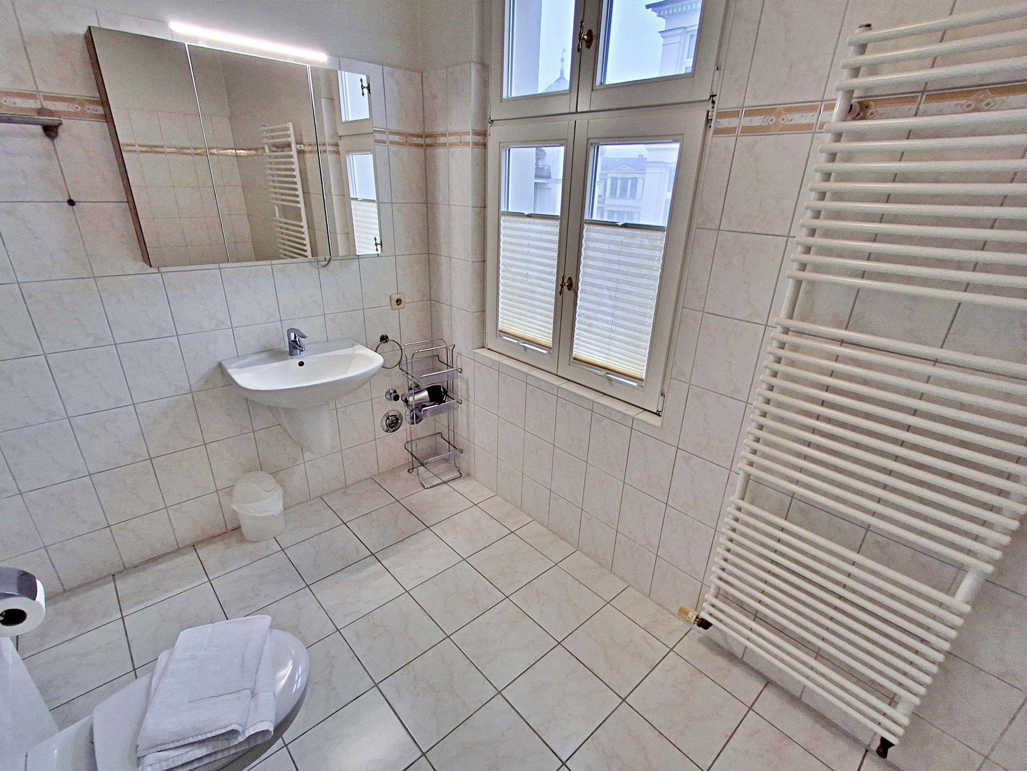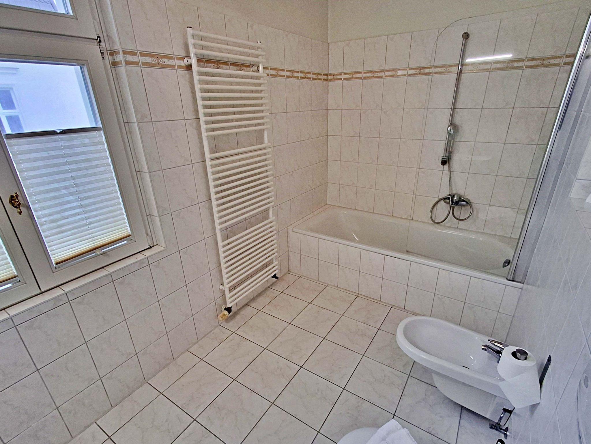 • Großes Badezimmer mit Badewanne, WC und Fenster plus zusätzliches Gäste-WC