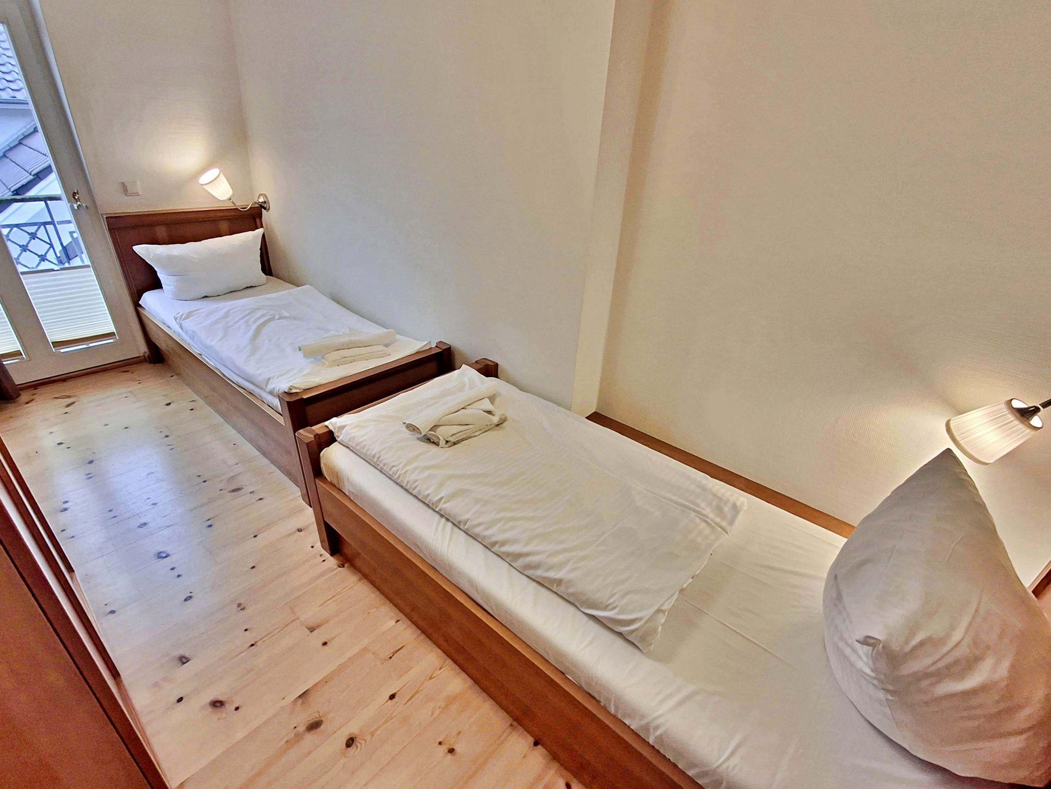 • Zwei Schlafzimmer: eines mit komfortablem Doppelbett, das andere mit zwei Einzelbetten