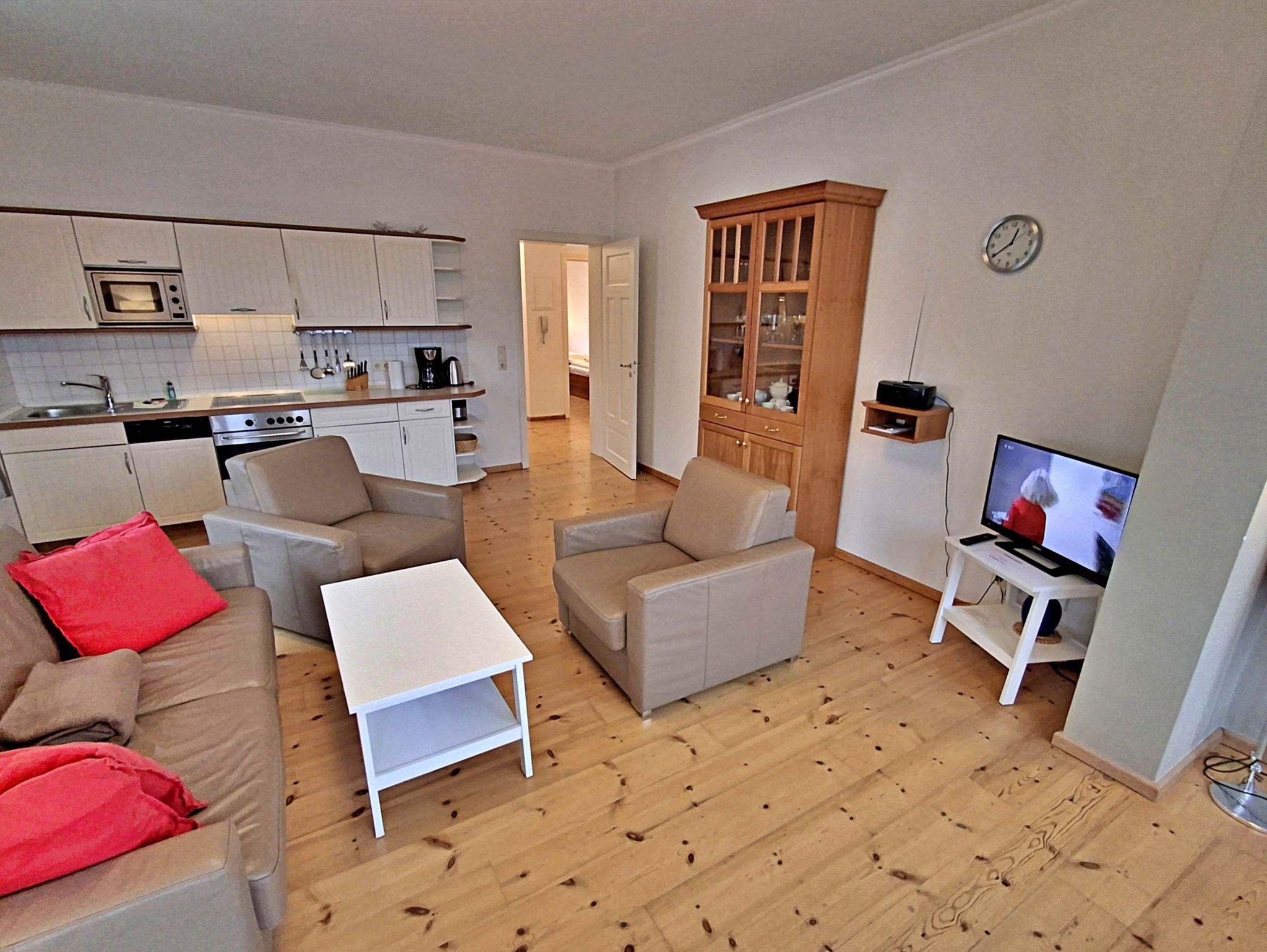 Nur wenige Schritte trennen Sie vom feinsandigen Ostseestrand und der beliebten Promenade. Vom gemütlichen Wohnbereich mit Couch, Sessel und Esstisch genießen Sie dank eines Seitenfensters sogar einen kleinen Blick auf die Ostsee.