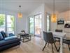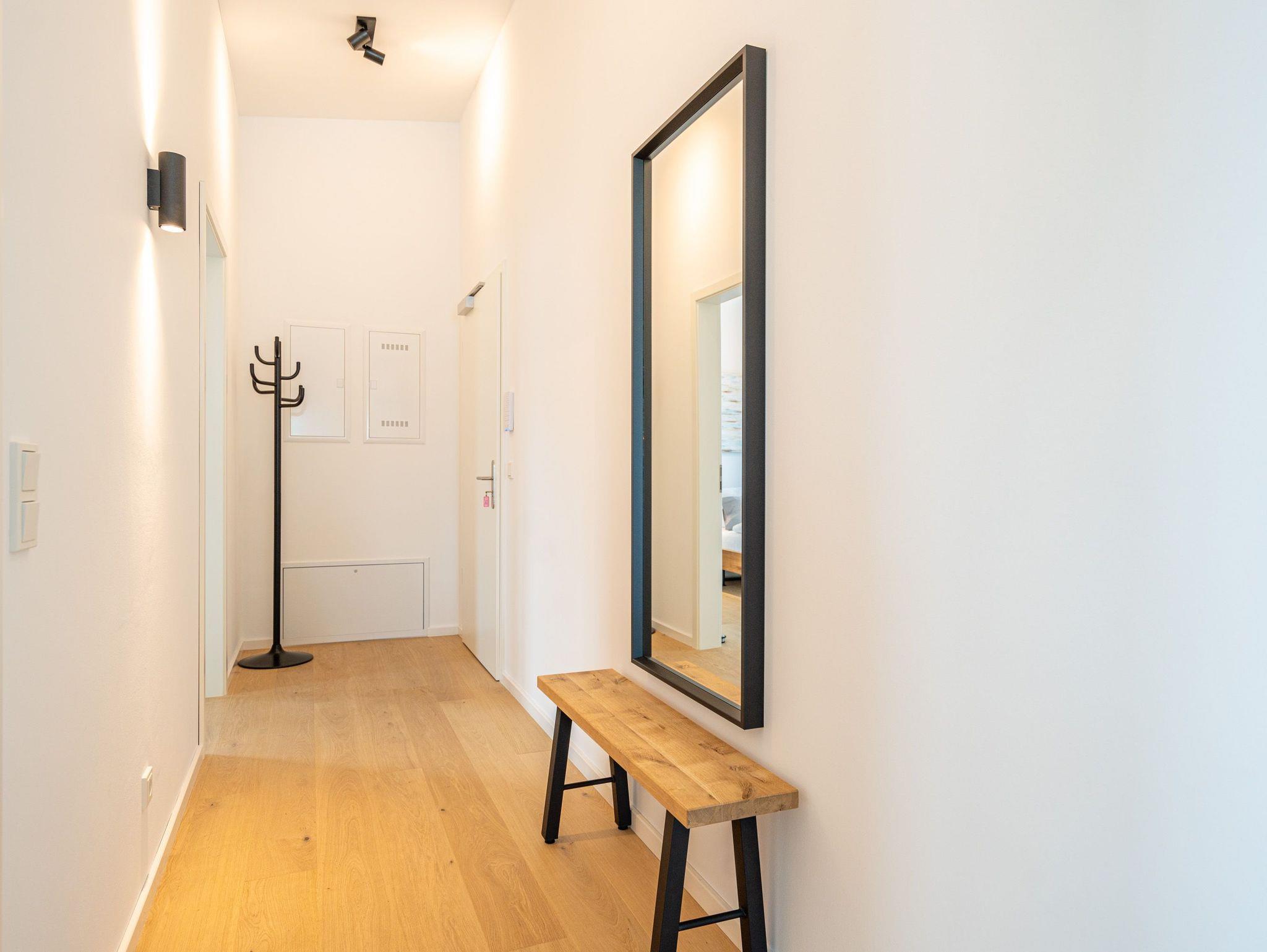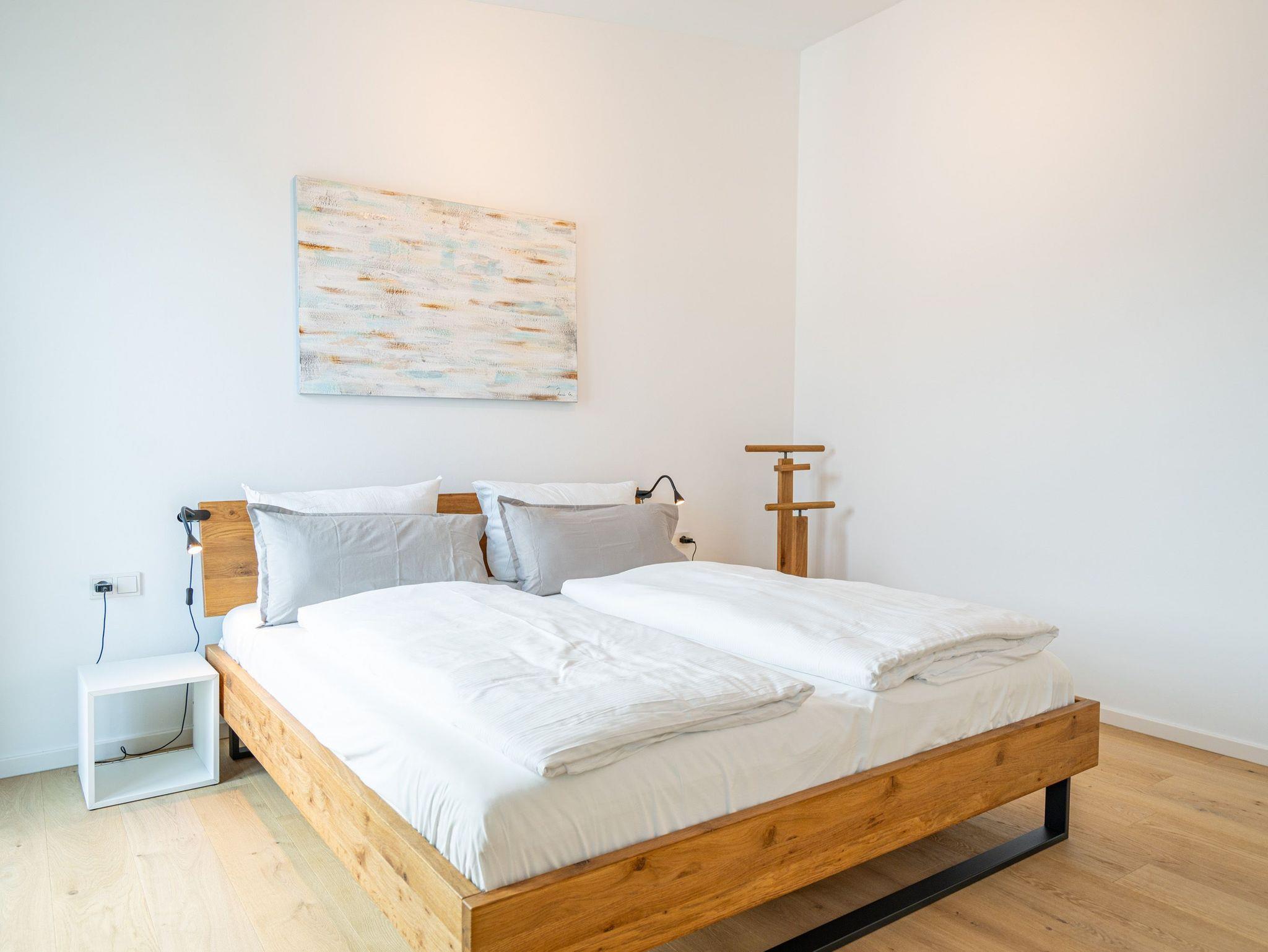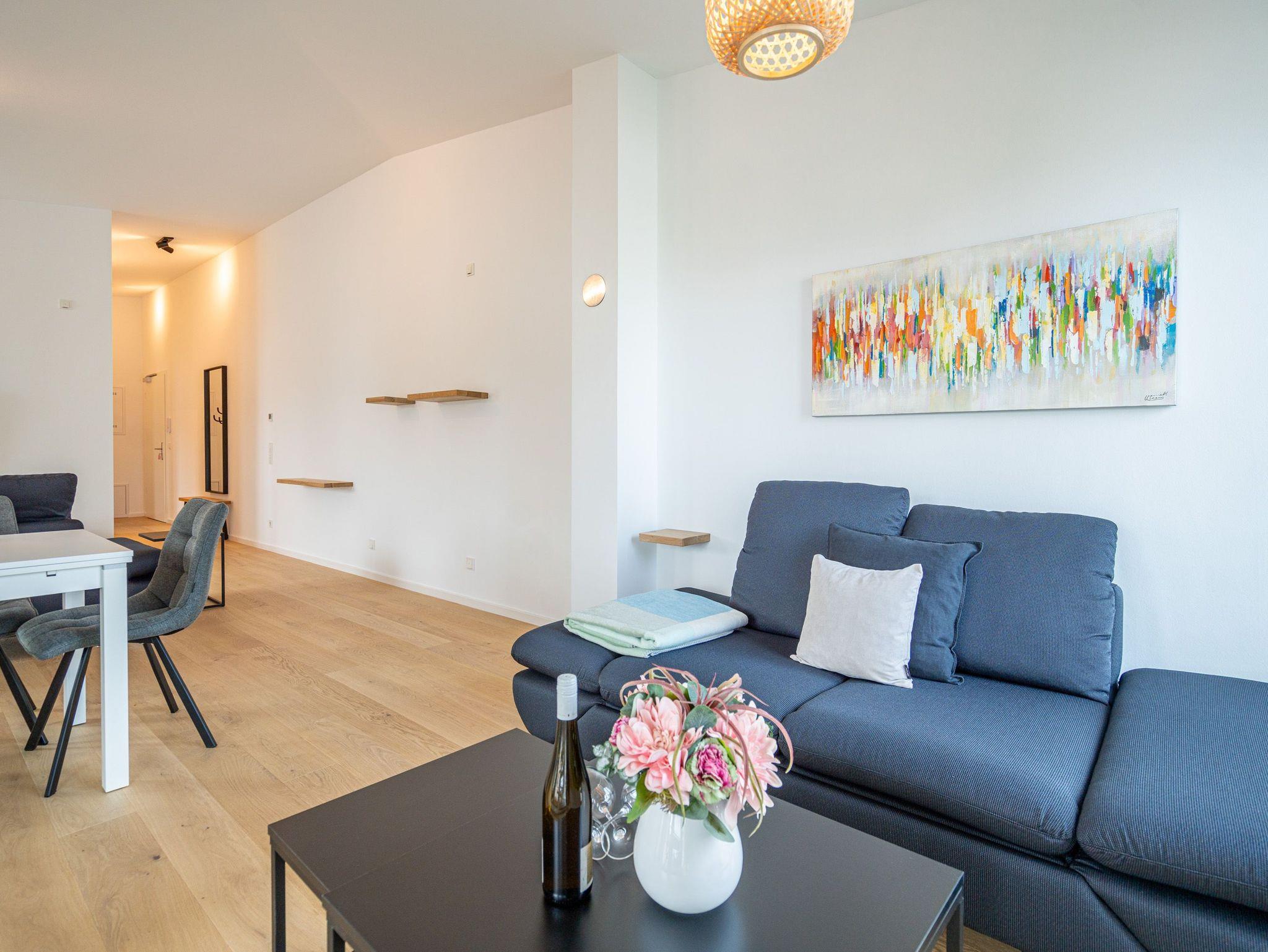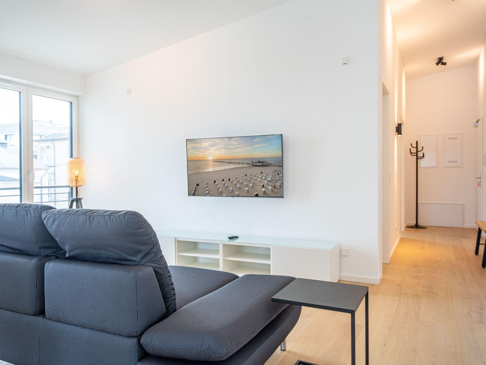 Herzlich willkommen im 2-Raum-Appartement Nr. 10 im Quartier 6, gelegen im 2. Obergeschoss. Dieses stilvolle Ferienapartment bietet Ihnen einen offenen, lichtdurchfluteten Wohnbereich, der mit einer voll ausgestatteten Küchenzeile inklusive Backofen mit Mikrowellenfunktion und Induktionskochfeld aufwartet. Hier können Sie Ihre Lieblingsgerichte zubereiten und diese am Essplatz genießen. Der Wohnbereich lädt mit einer komfortablen Sitzgruppe und einem 55 Zoll Smart-TV zu entspannten Abenden ein. Von hier aus gelangen Sie auf die Dachterrasse, die mit hochwertiger Teakholz-Bestuhlung ausgestattet ist und Ihnen einen herrlichen Blick Richtung Ostsee bietet. Im separaten Schlafzimmer erwartet Sie ein komfortables Doppelbett (1,80m x 2,00m) sowie ein geräumiger Kleiderschrank. Für zusätzliche Unterhaltung sorgt ein weiterer Smart-TV mit einer Bildschirmdiagonale von 43 Zoll. Der Wohn- und Schlafbereich ist mit edlem Echtholzfußboden ausgestattet, der für eine warme und einladende Atmosphäre sorgt. Das moderne Bad verfügt über eine ebenerdige Dusche, ein Waschbecken und ein WC, sodass Sie sich hier rundum wohlfühlen können. Selbstverständlich steht Ihnen während Ihres Aufenthalts kostenfreies WLAN zur Verfügung. Zu der Wohnung gehört ein eigener Stellplatz in der Tiefgarage sowie ein abschließbarer Fahrradkeller, der Ihnen zusätzlichen Komfort bietet. Diese Ferienwohnung ist der ideale Ort, um die Ostsee in vollen Zügen zu genießen und die Seele baumeln zu lassen.
