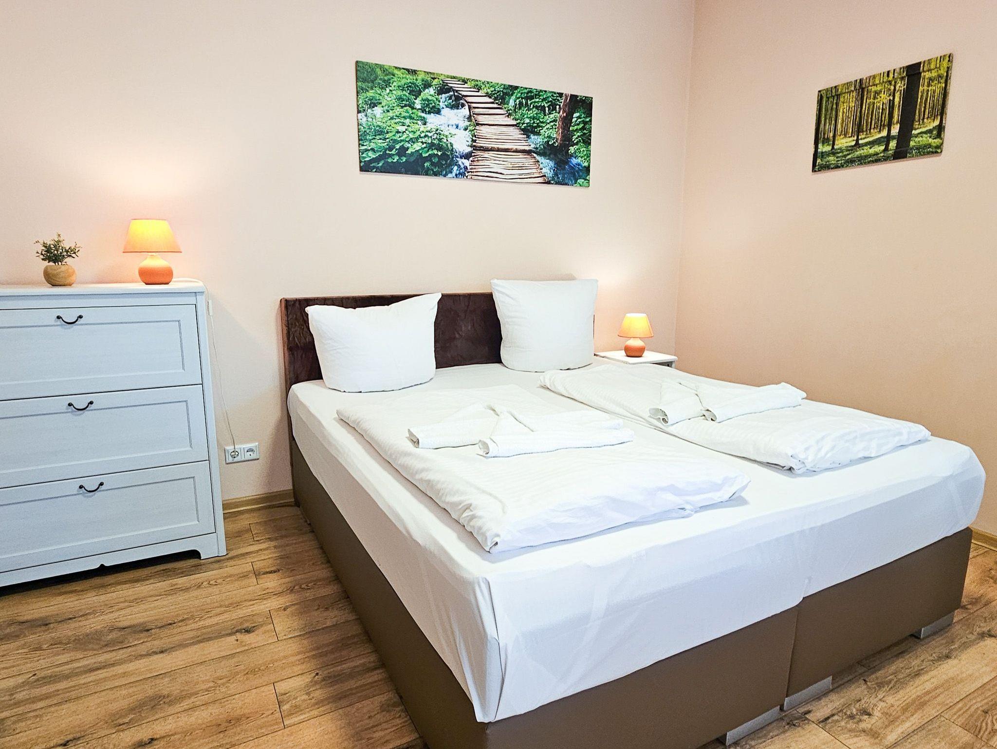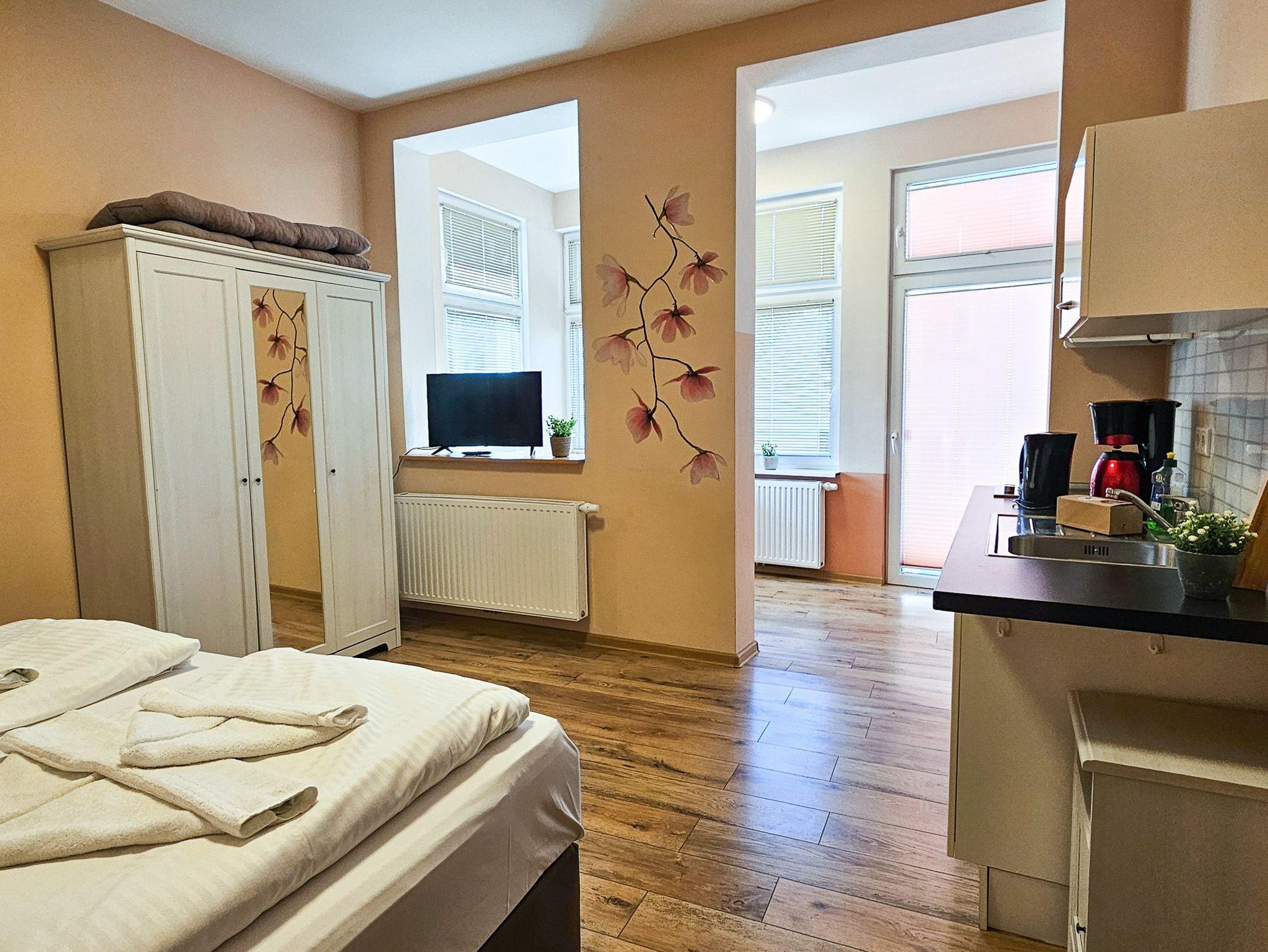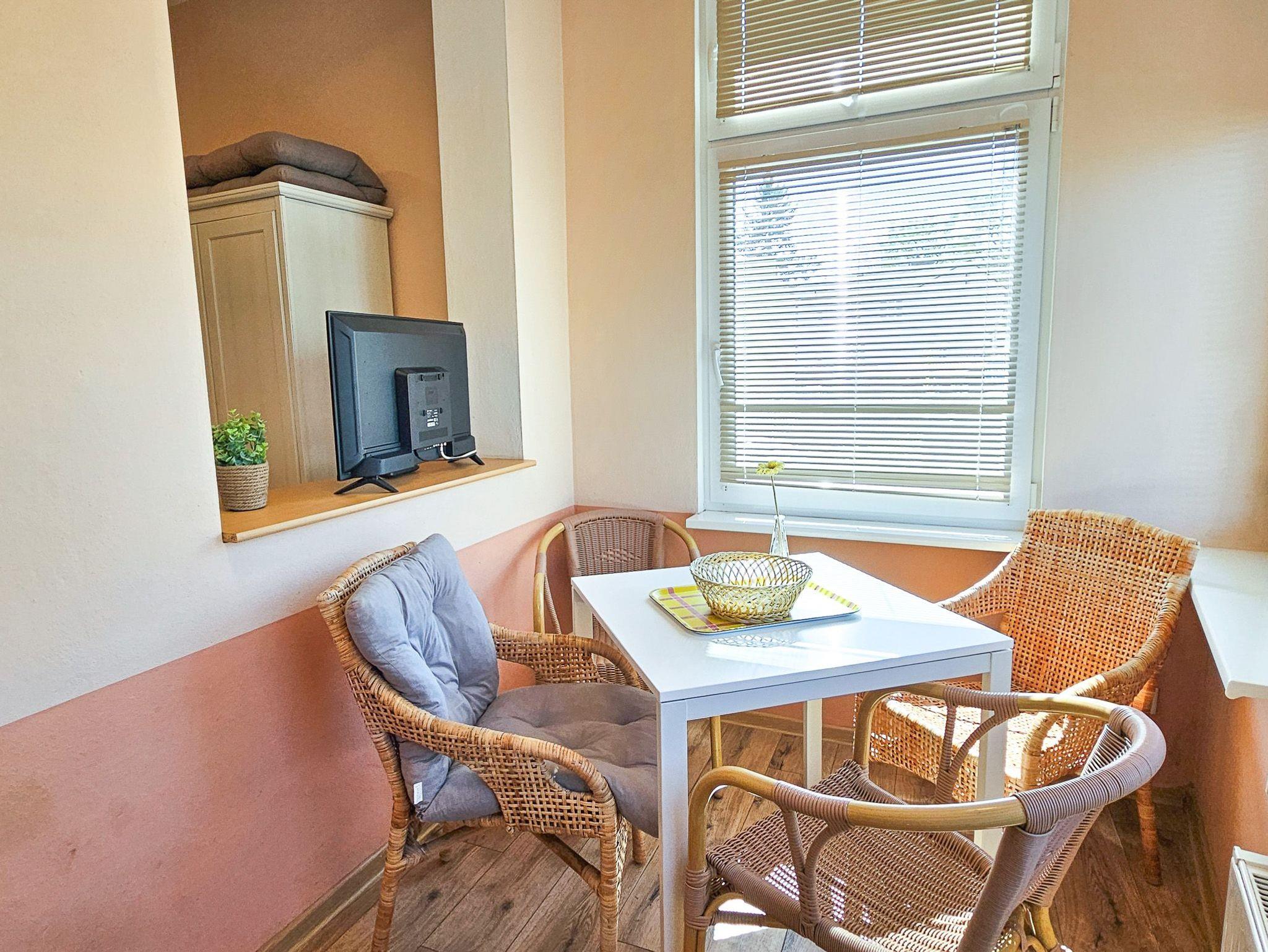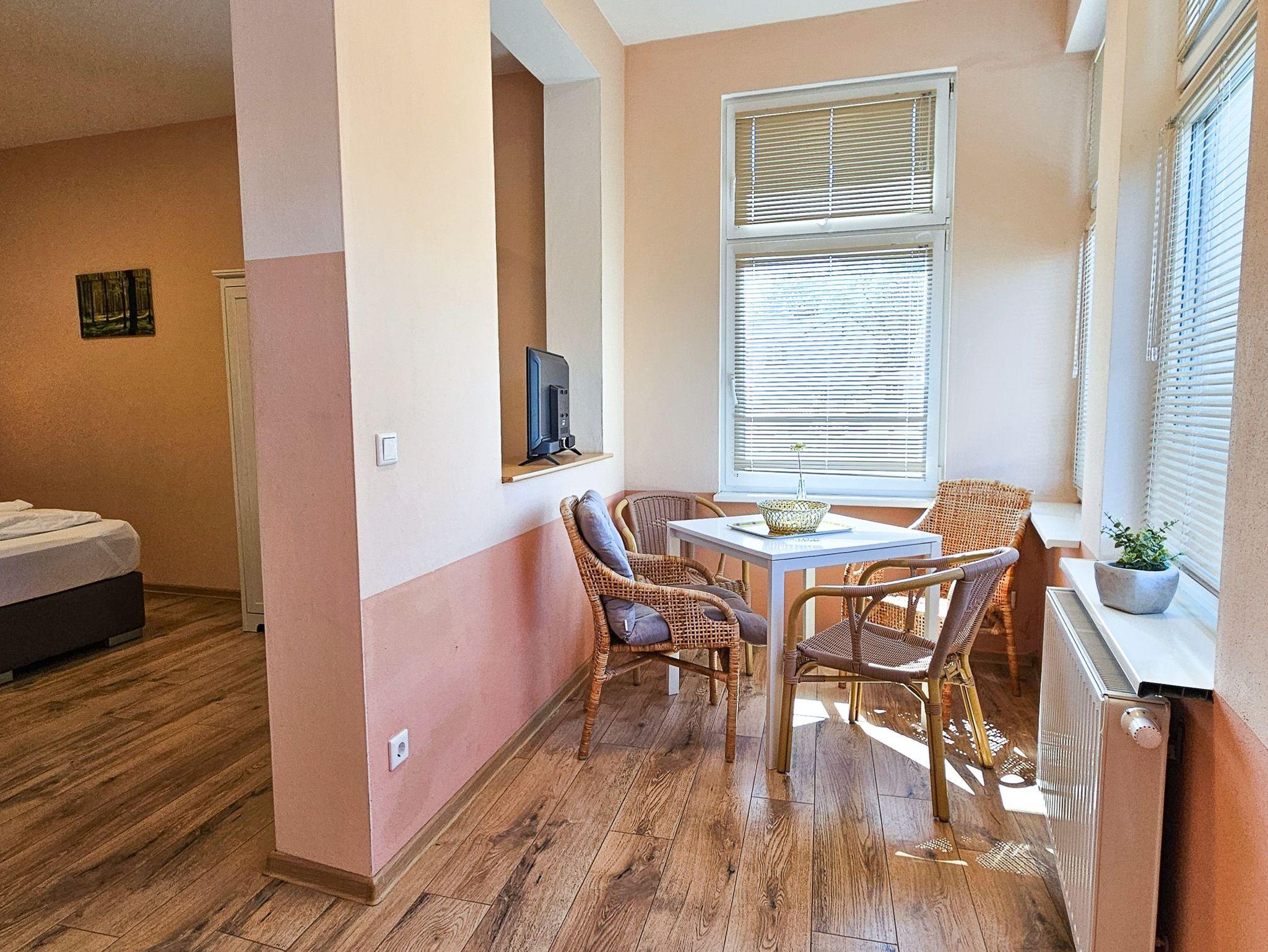 Die 28m² große Ferienwohnung befindet sich im Erdgeschoss der Villa Utpatel und bietet Platz für zwei Erwachsene.
